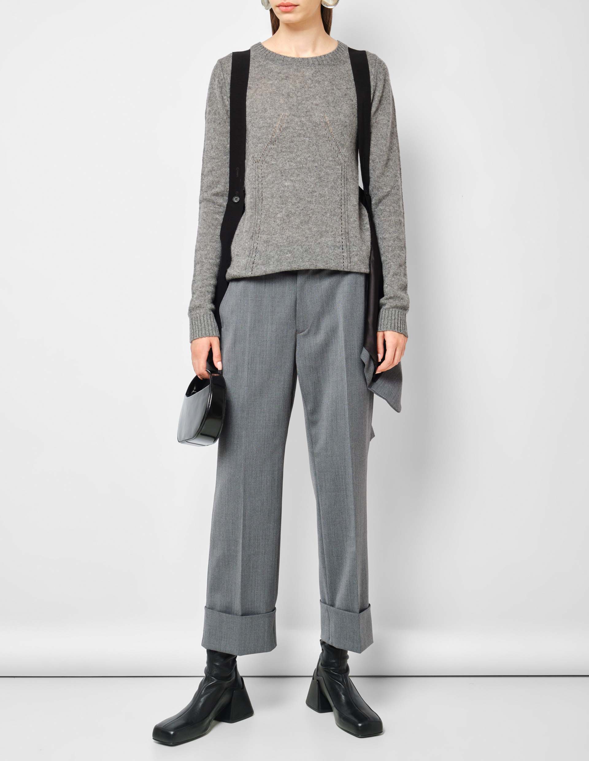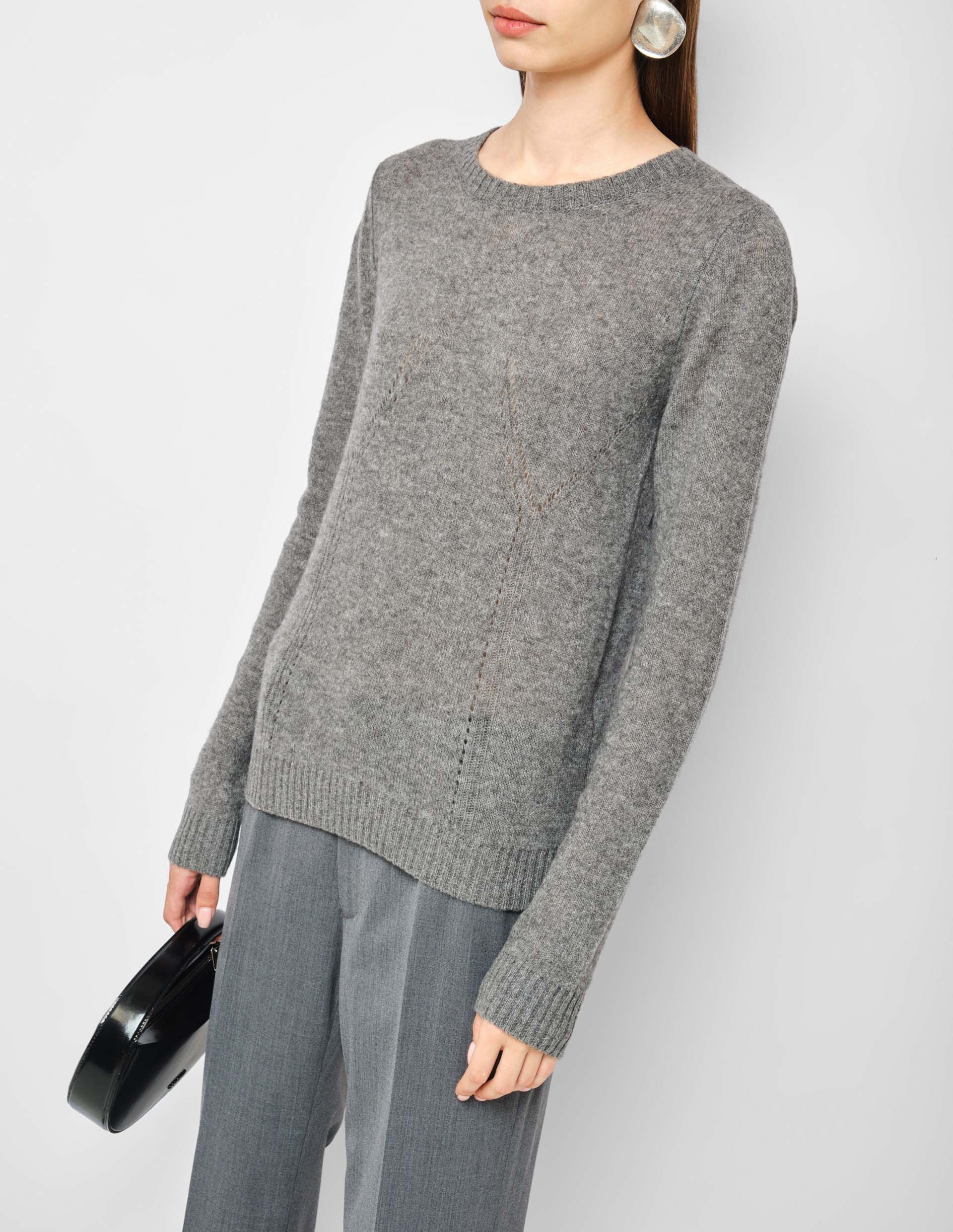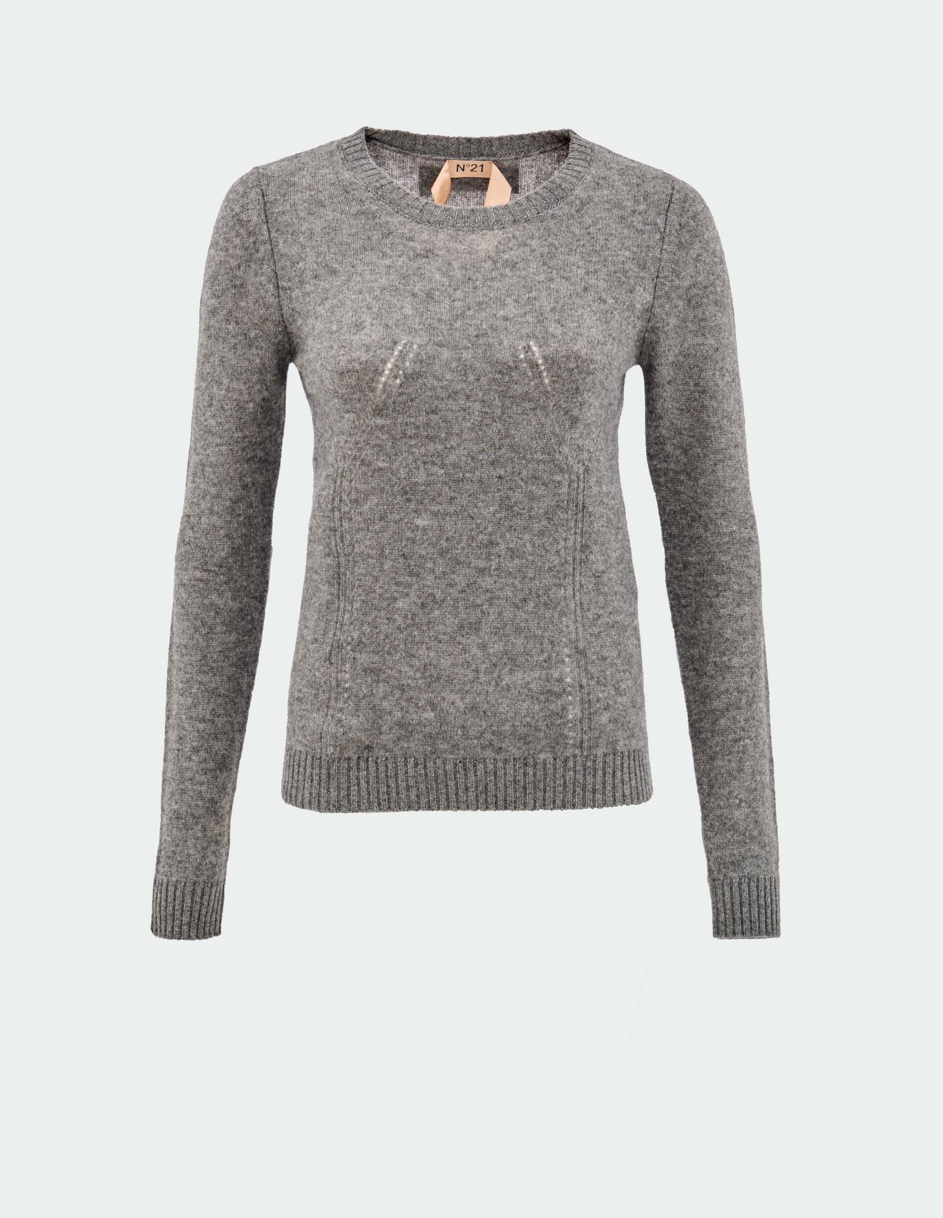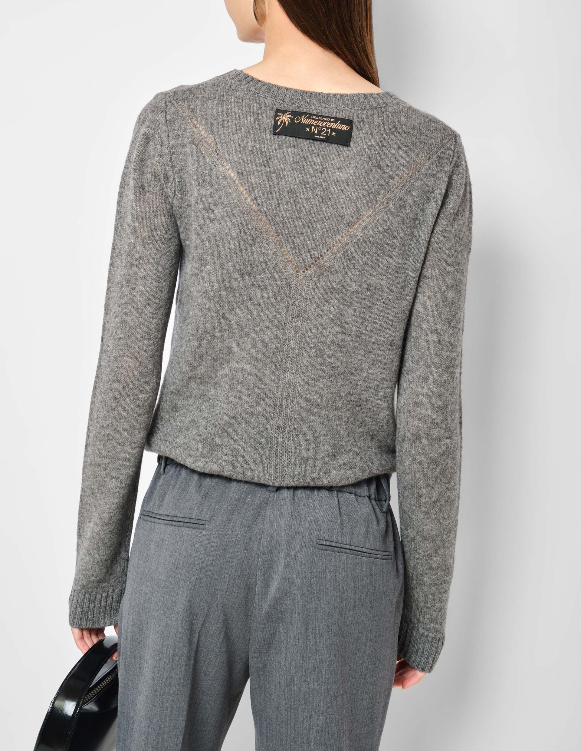 Серый джемпер из 100% шерсти с круглым вырезом и перфорацией