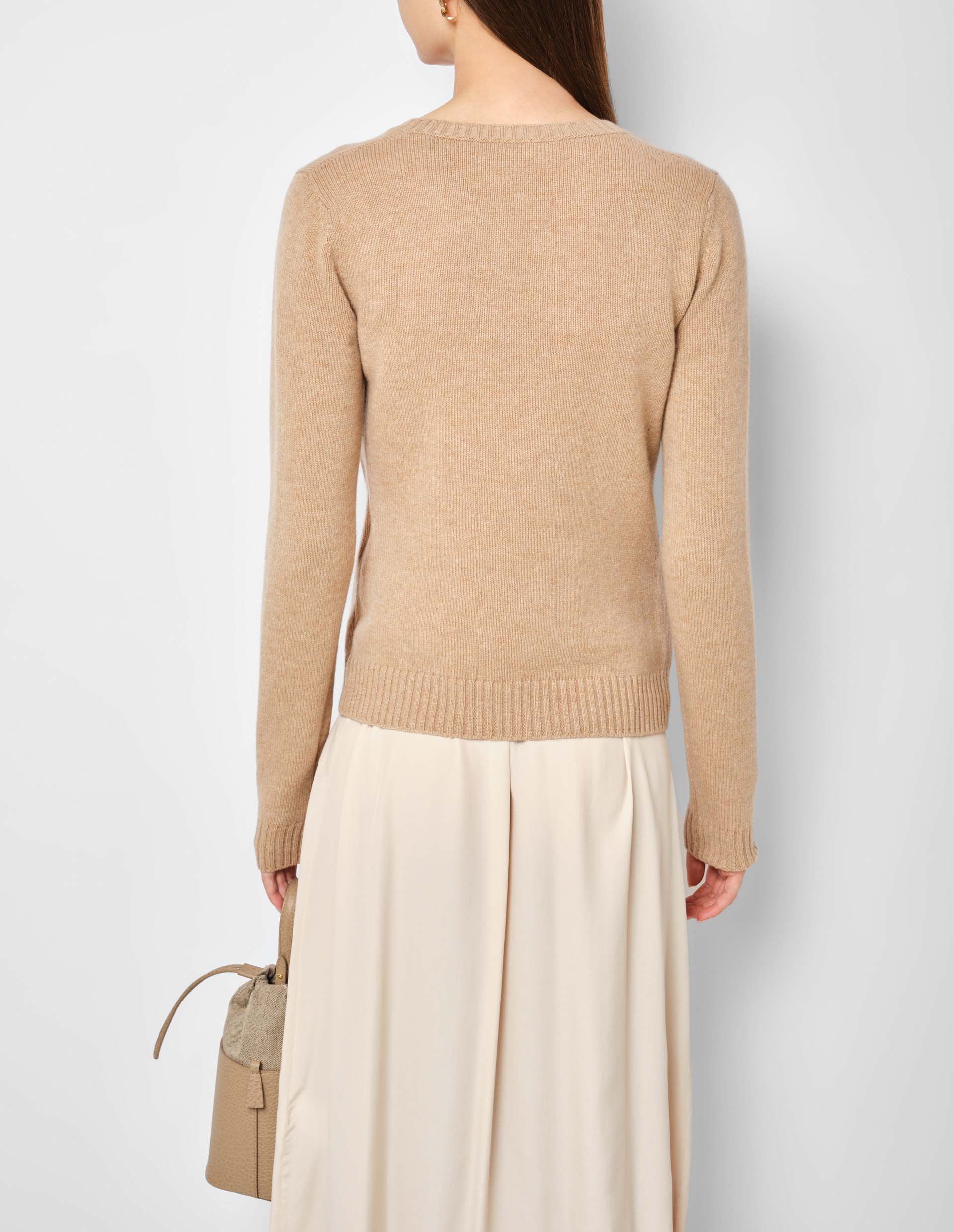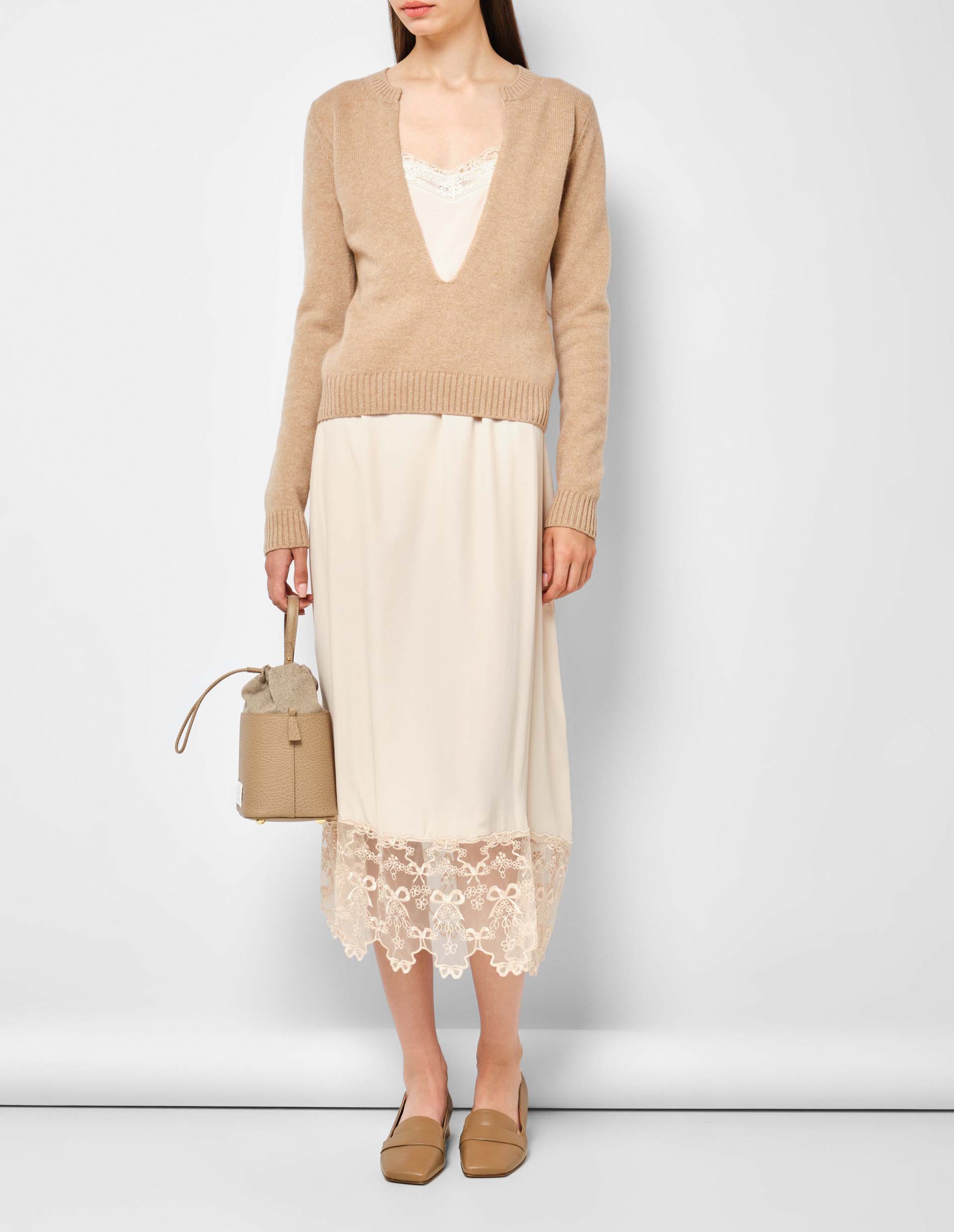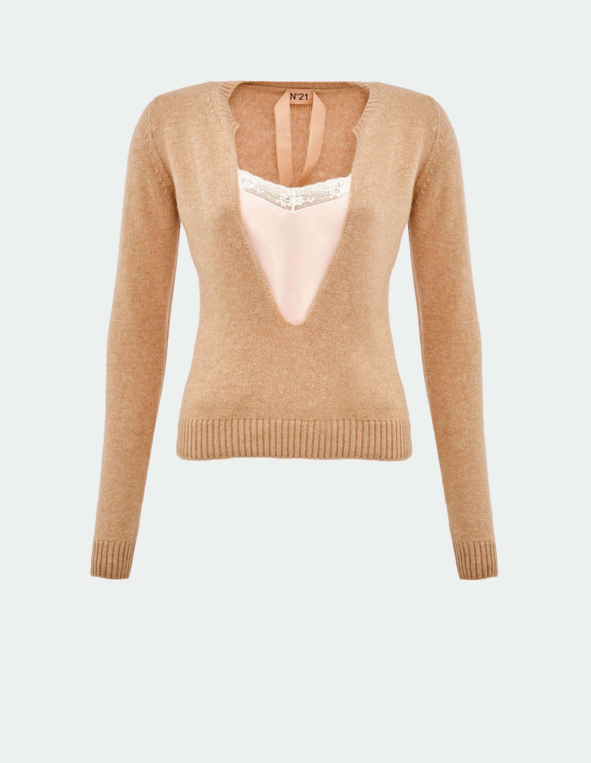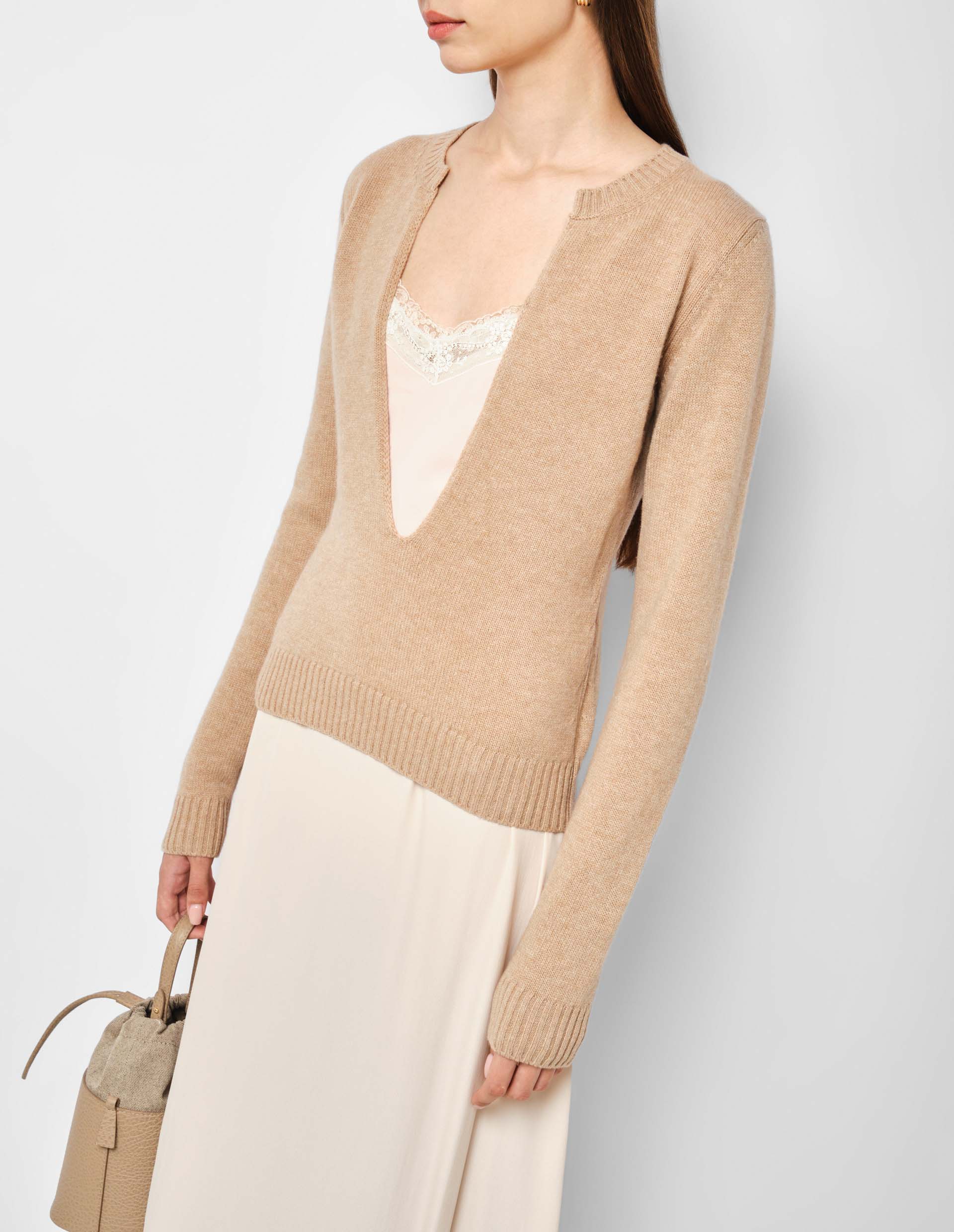 Бежевый джемпер с глубоким вырезом и вставкой-топом