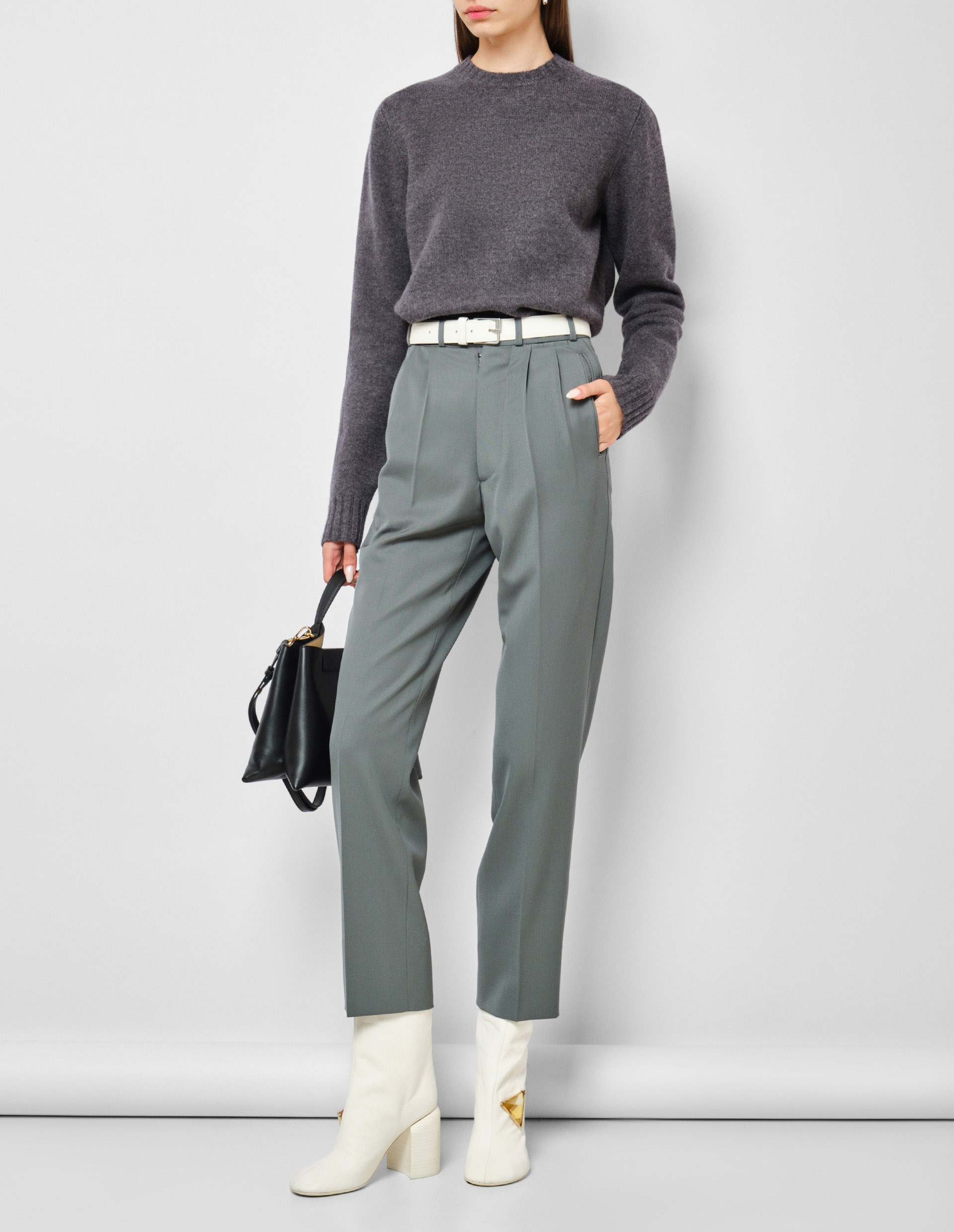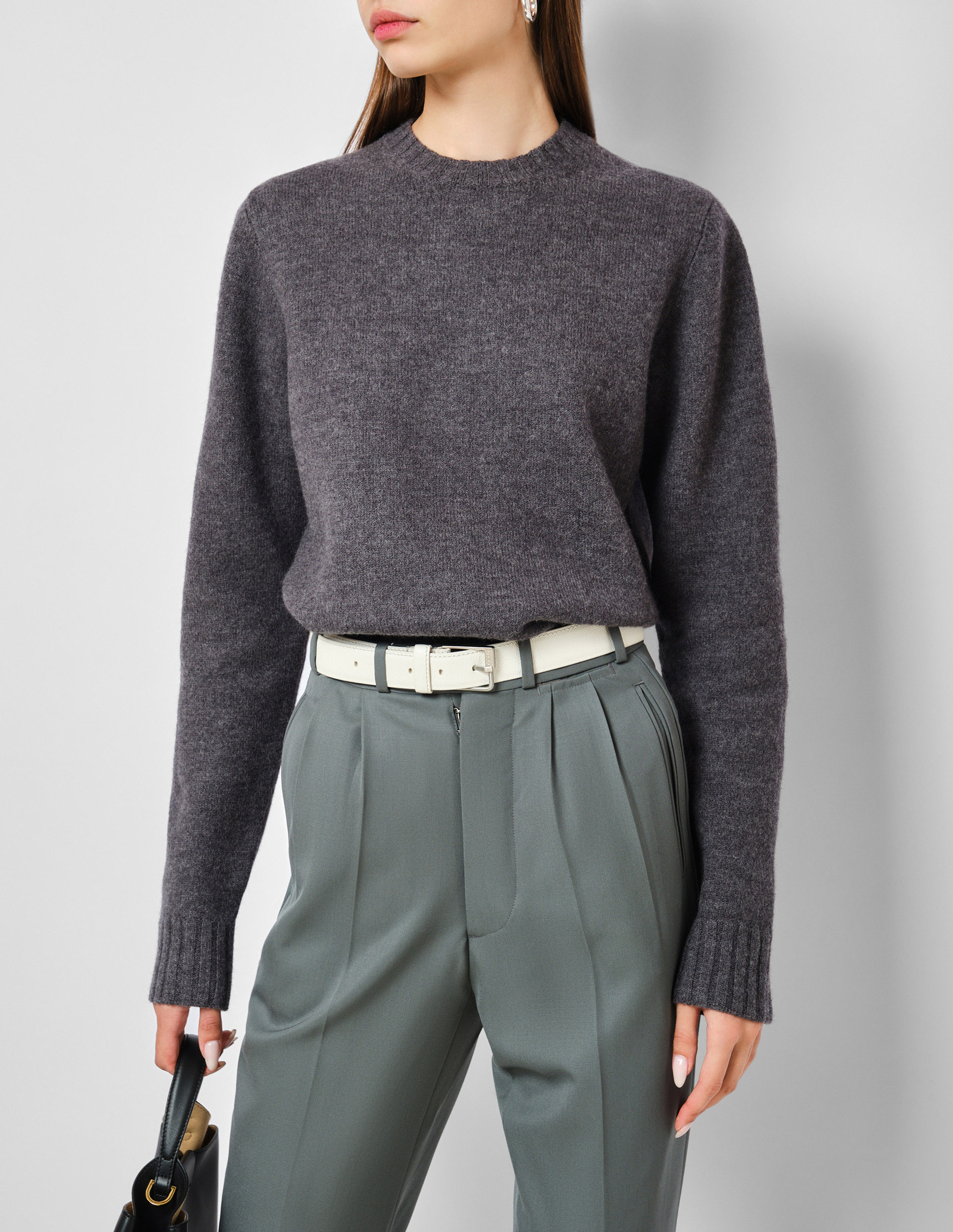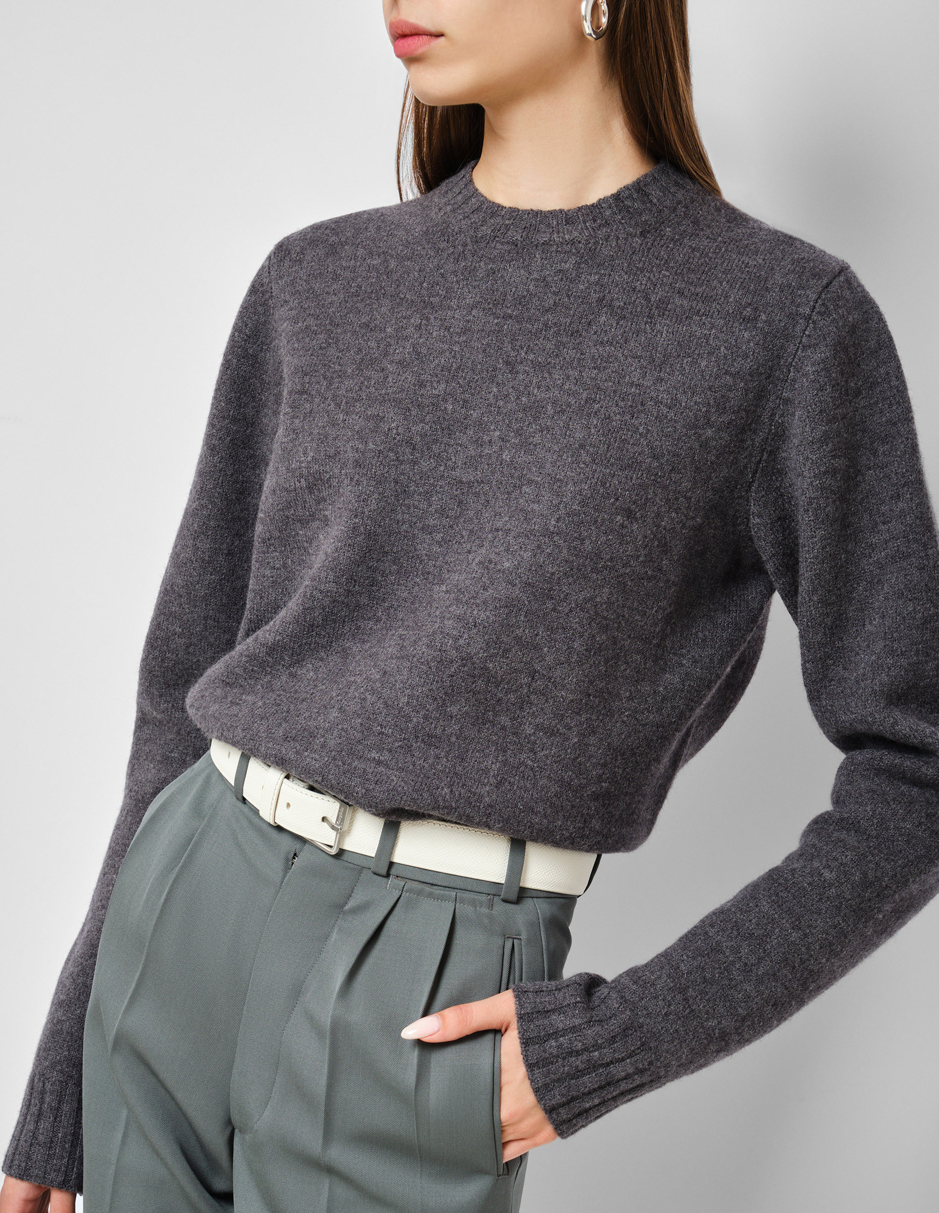 Серый пуловер с круглым вырезом и длинными рукавами от бренда Jil Sander полное олицетворение идеи создания функционального гардероба для поколения сильных, независимых и самостоятельных женщин. Однотонный и лаконичный серый пуловер станет идеальным дополнением для любого образа. Связан простым гладким узлом из тонкой мериносовой шерсти, изделие подчеркивает премиальность и роскошь. Оно невероятно мягкое и нежное, прекрасно сохраняет тепло, не перегревая при этом тело, сохраняя легкость и комфорт движений.