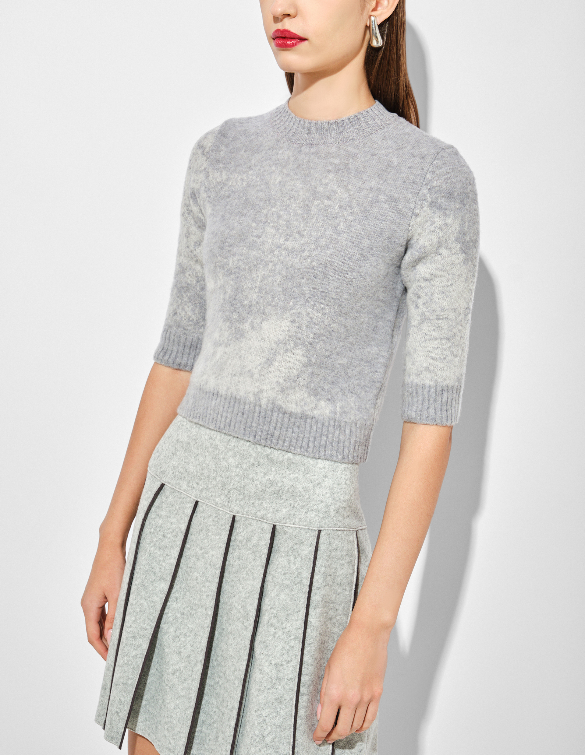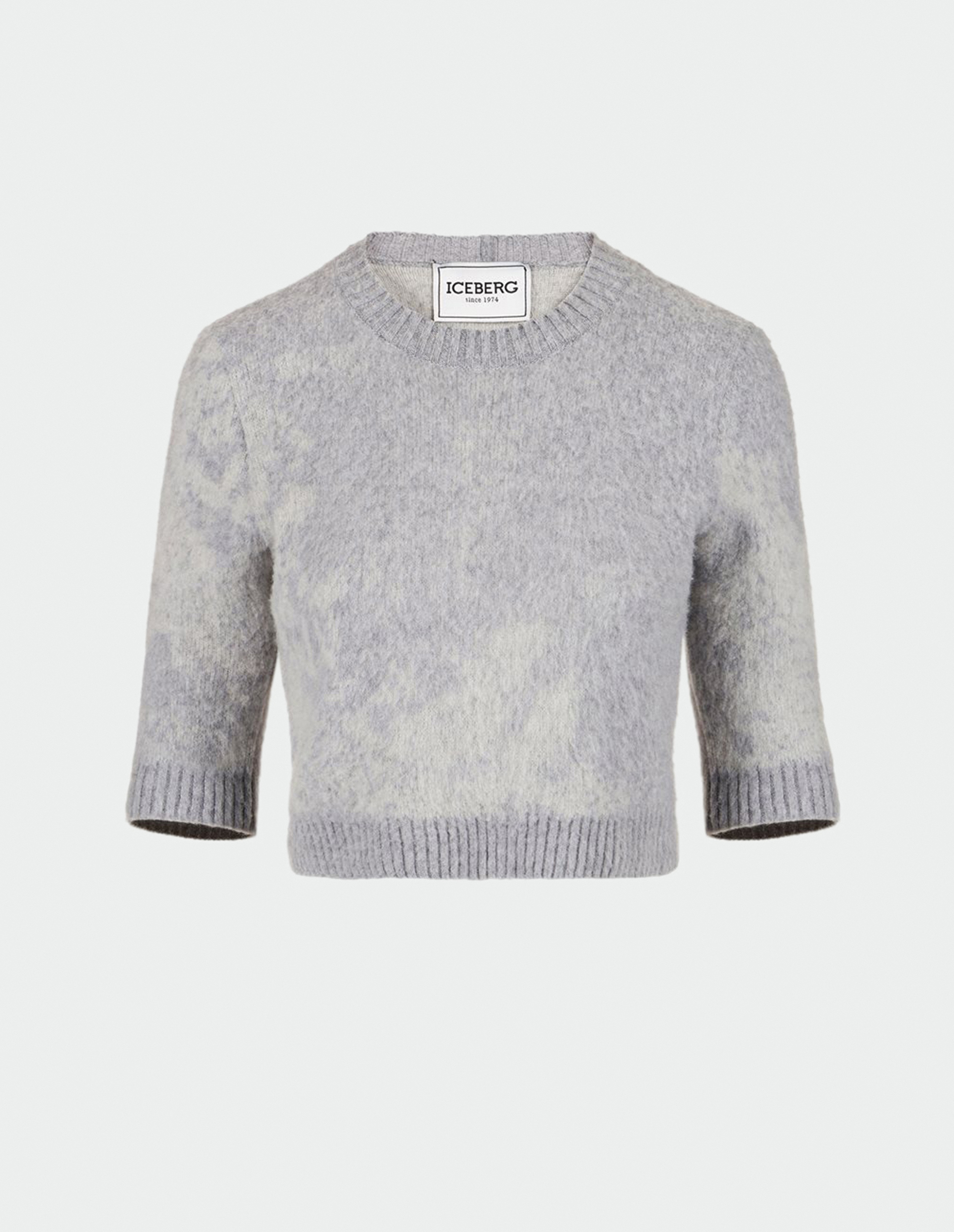 Укороченный джемпер с круглым вырезом, изготовленный из эластичной шерсти и нейлона, станет универсальным предметом вашего гардероба, сочетающим богатые текстуры и инновационные детали, определяющие новую эру ICEBERG. Для модели характерен сплошной принт, выполненный в технике жаккарда и нанесенный на ультрамягкую поверхность. Такое свойство достигнуто благодаря кардочесанию, при котором волокна разделяются игольчатыми (кардными) поверхностями на отдельные нити, а оставшиеся примеси, спутанности удаляются.