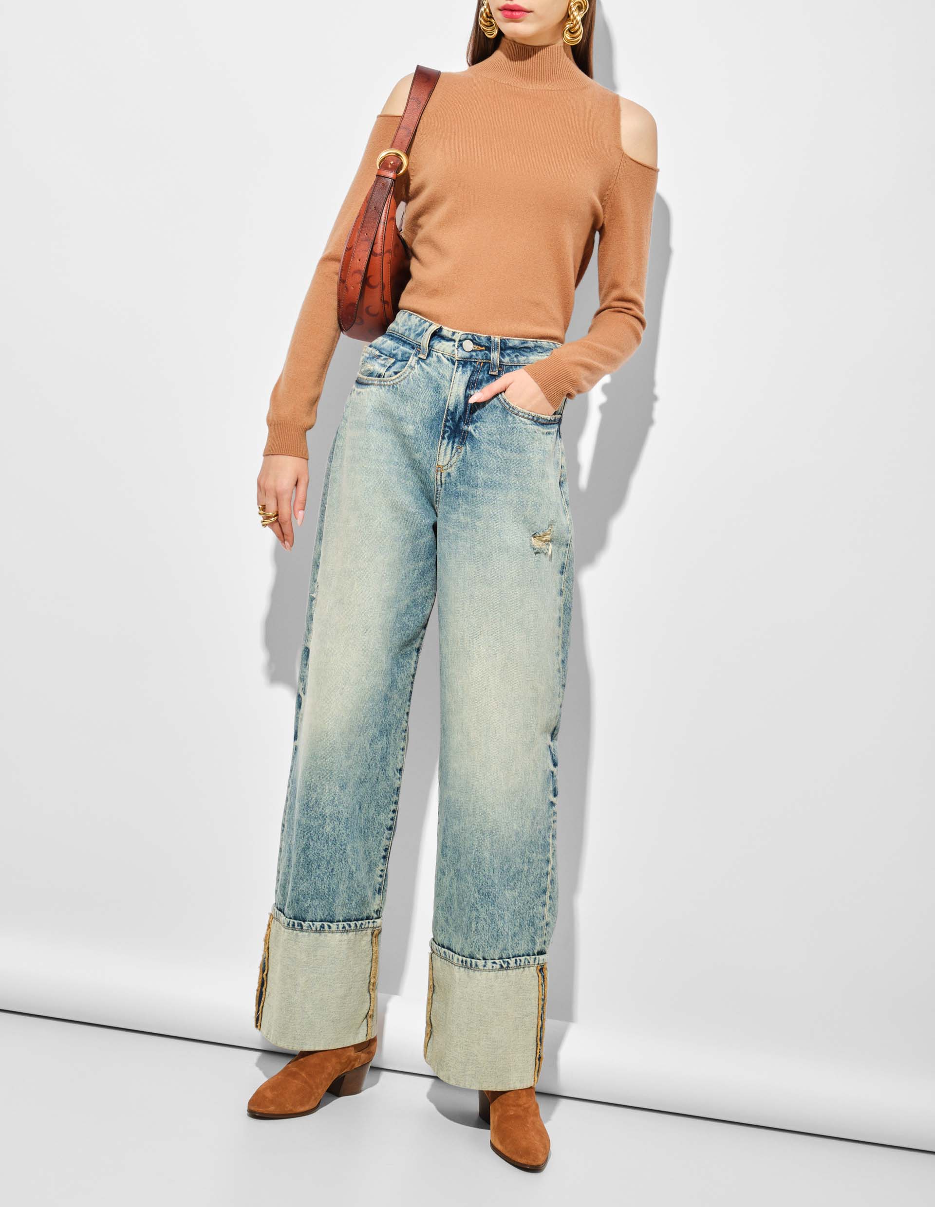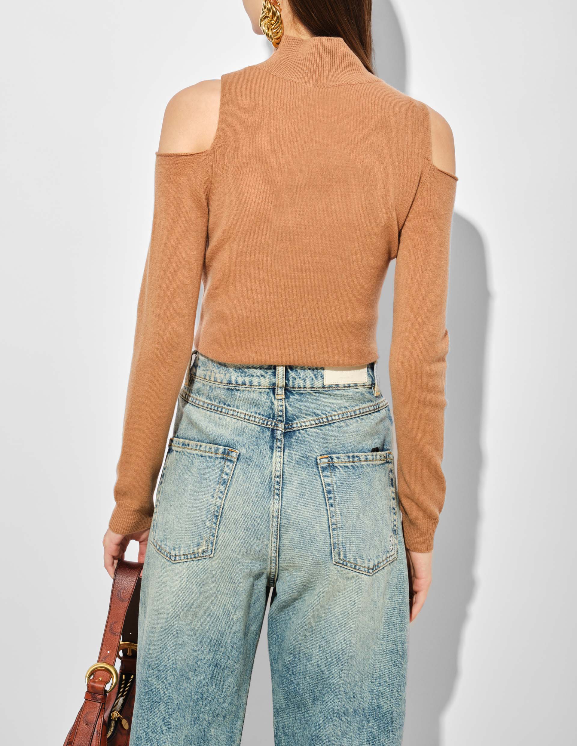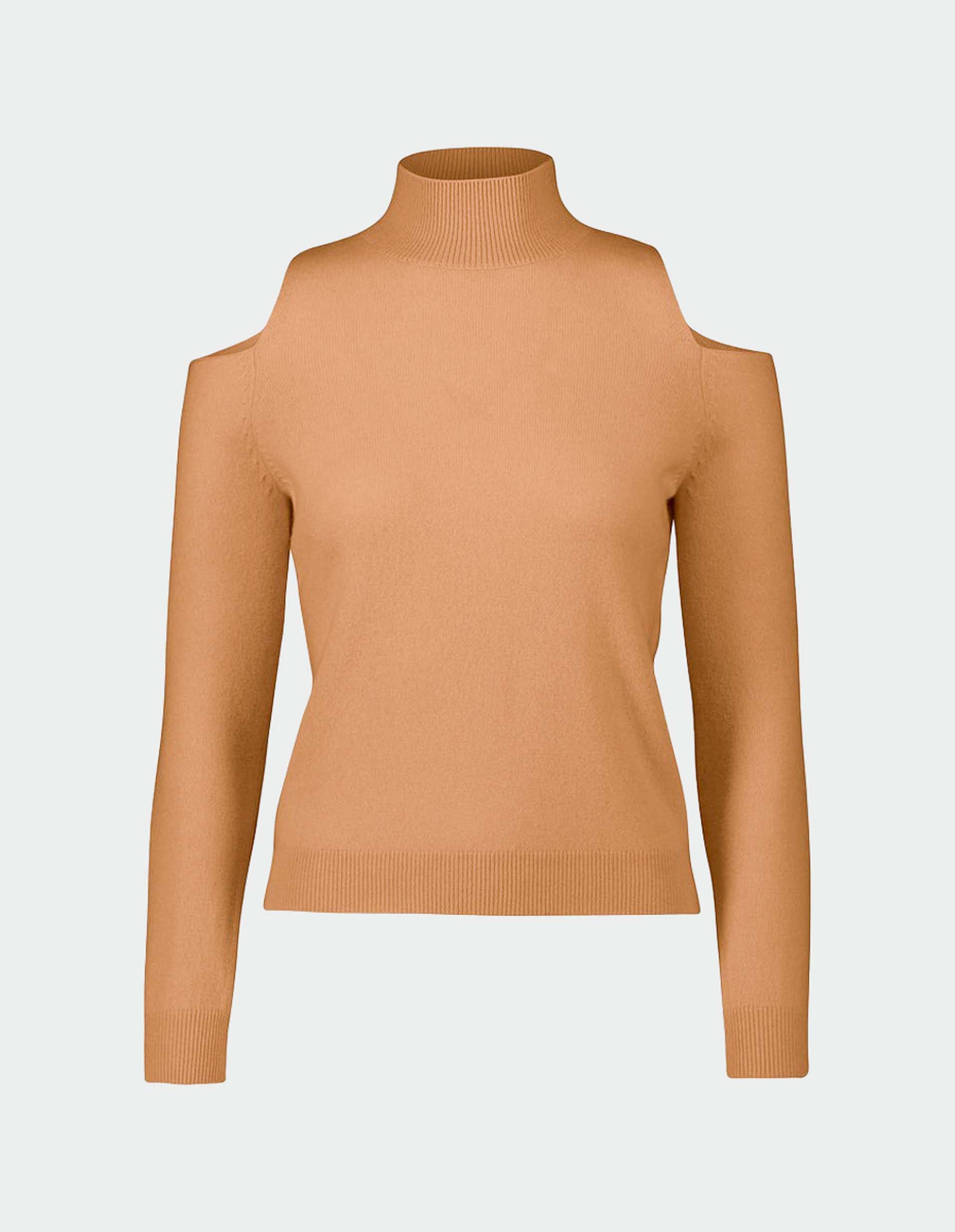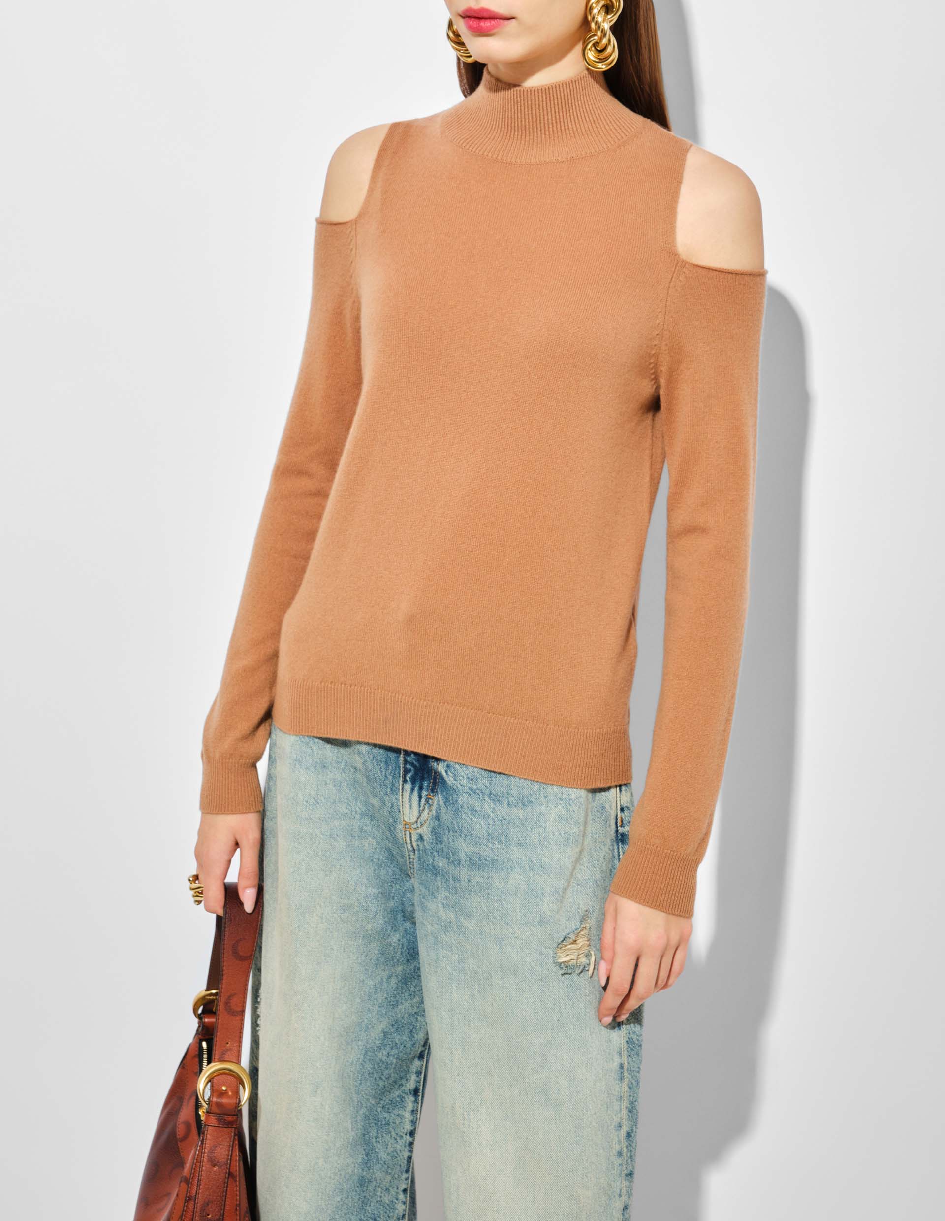 Коричневый гольф из смесового кашемира с вырезами на плечах