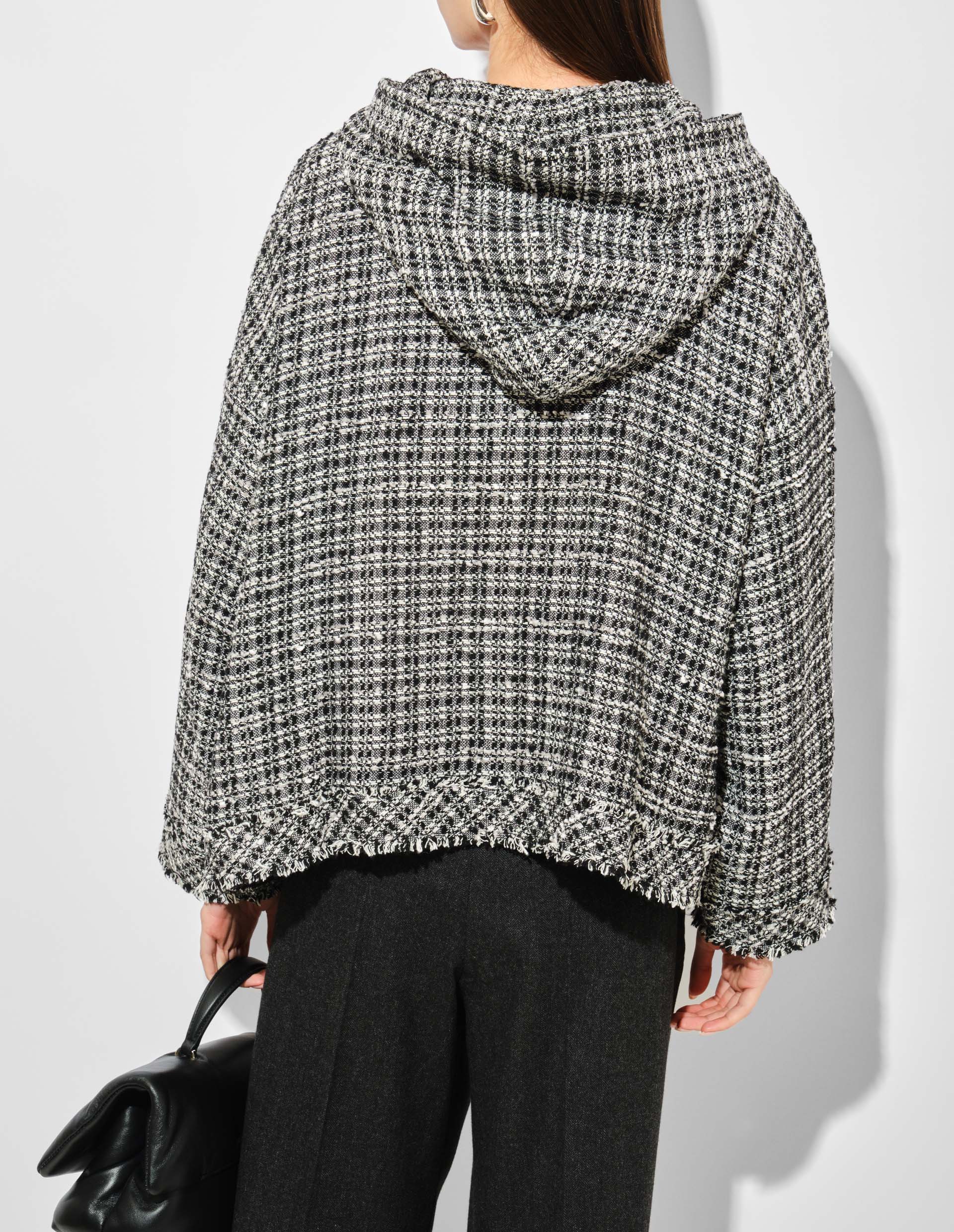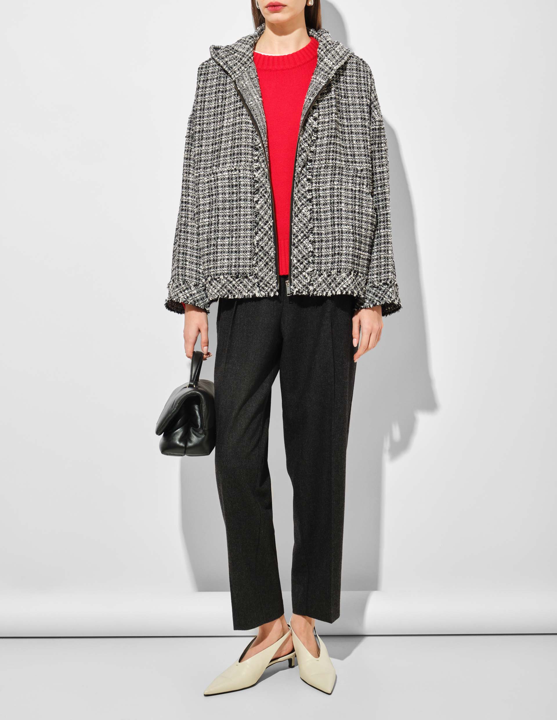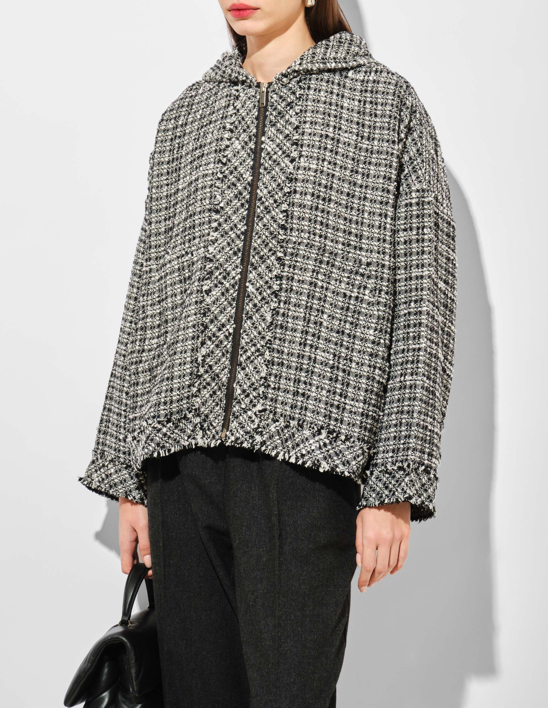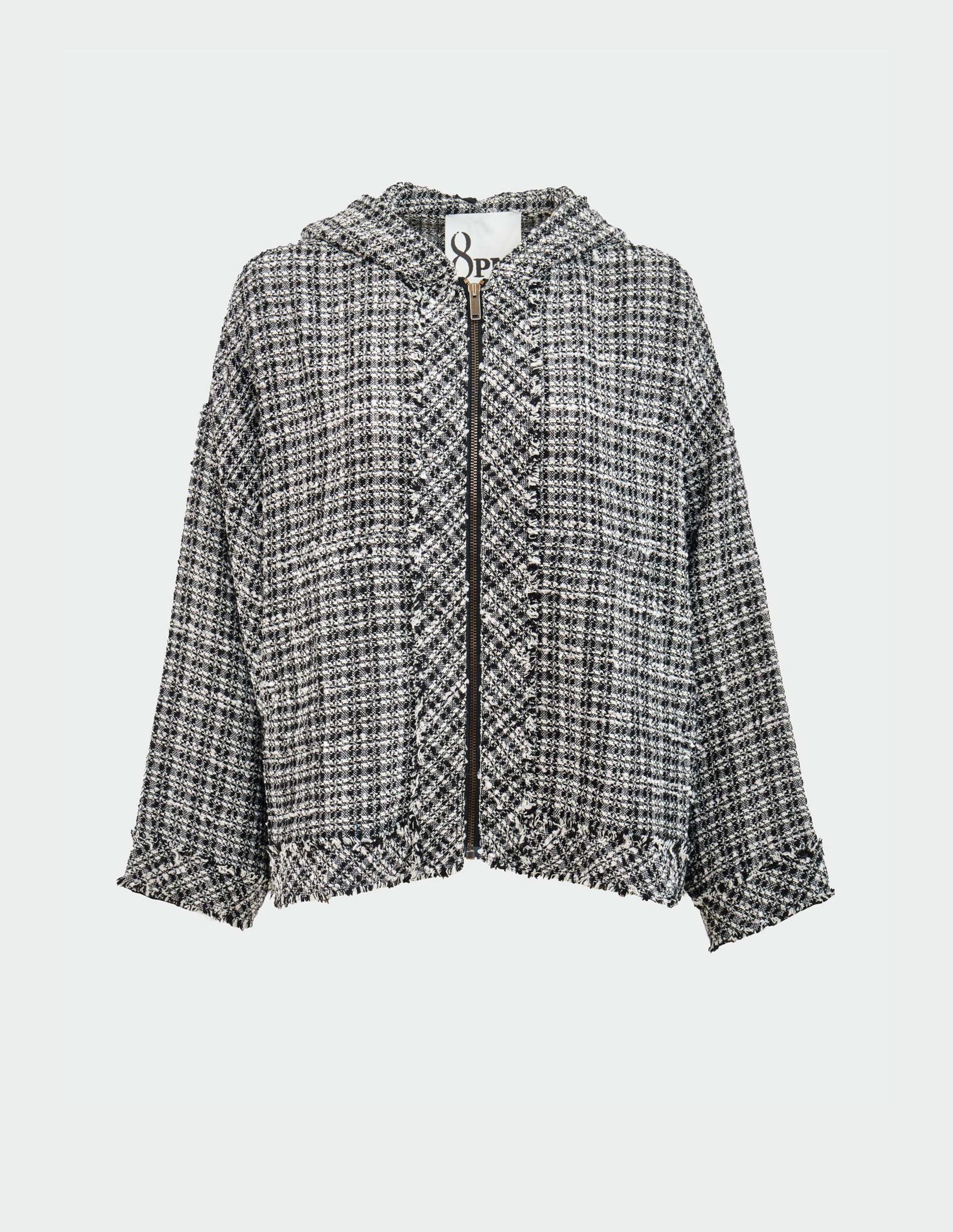 Жакет Arcadia объединил в себе преданность высокой моде, любовь к драгоценным материалам и искусству пошива, которые так ценятся итальянским брендом 8 pm. Модель выполнена из роскошного твида, в основе которого лежит премиальный полушерстяной материал, сделающий ношение комфортным, а срок службы максимально долгим. Дизайн стал воплощением девиза компании: "Изысканность, но без усилий", что подтверждает прямой силуэт с практичной молнией и капюшоном. Принт в мелкую черно-белую клетку позволит создавать выразительные, но удобные образы, которые можно носить 24 часа в сутки, легко переходя от официальных событий к приятным моментам отдыха.
