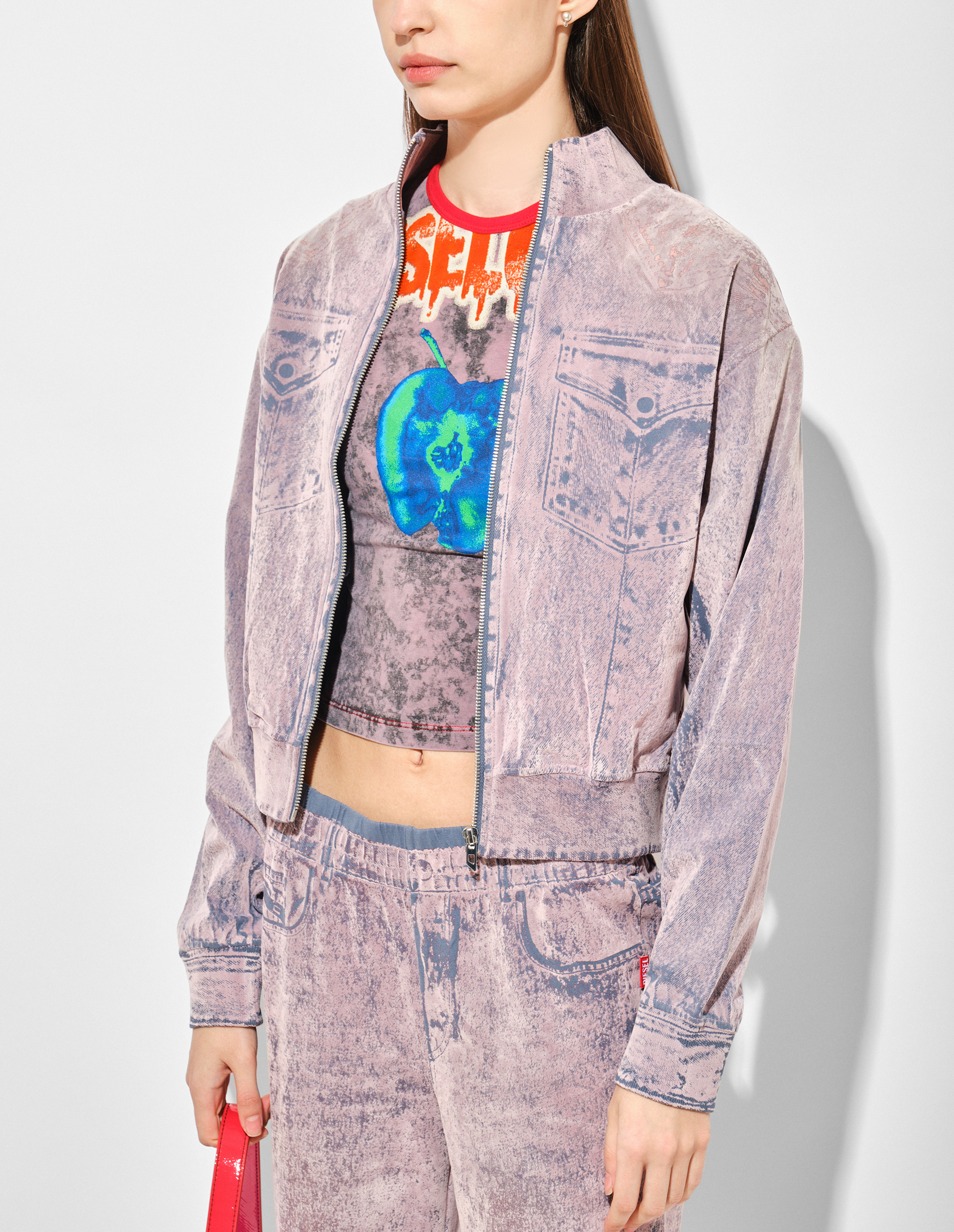 Эта толстовка от Diesel представляет дерзкий микс уличного шика и арт-провокации. Она выполнена из мягкого хлопкового трикотажа с петлевой изнанкой, обеспечивающей комфорт, мягкое прилегание к коже. Модель украшена гиперреалистичным принтом trompe l'oeil, имитирующим перекрашенную джинсовую куртку, а флокированное бархатистое покрытие в смешанных оттенках Blue/Violet создает богатые визуальные и тактильные ощущения.