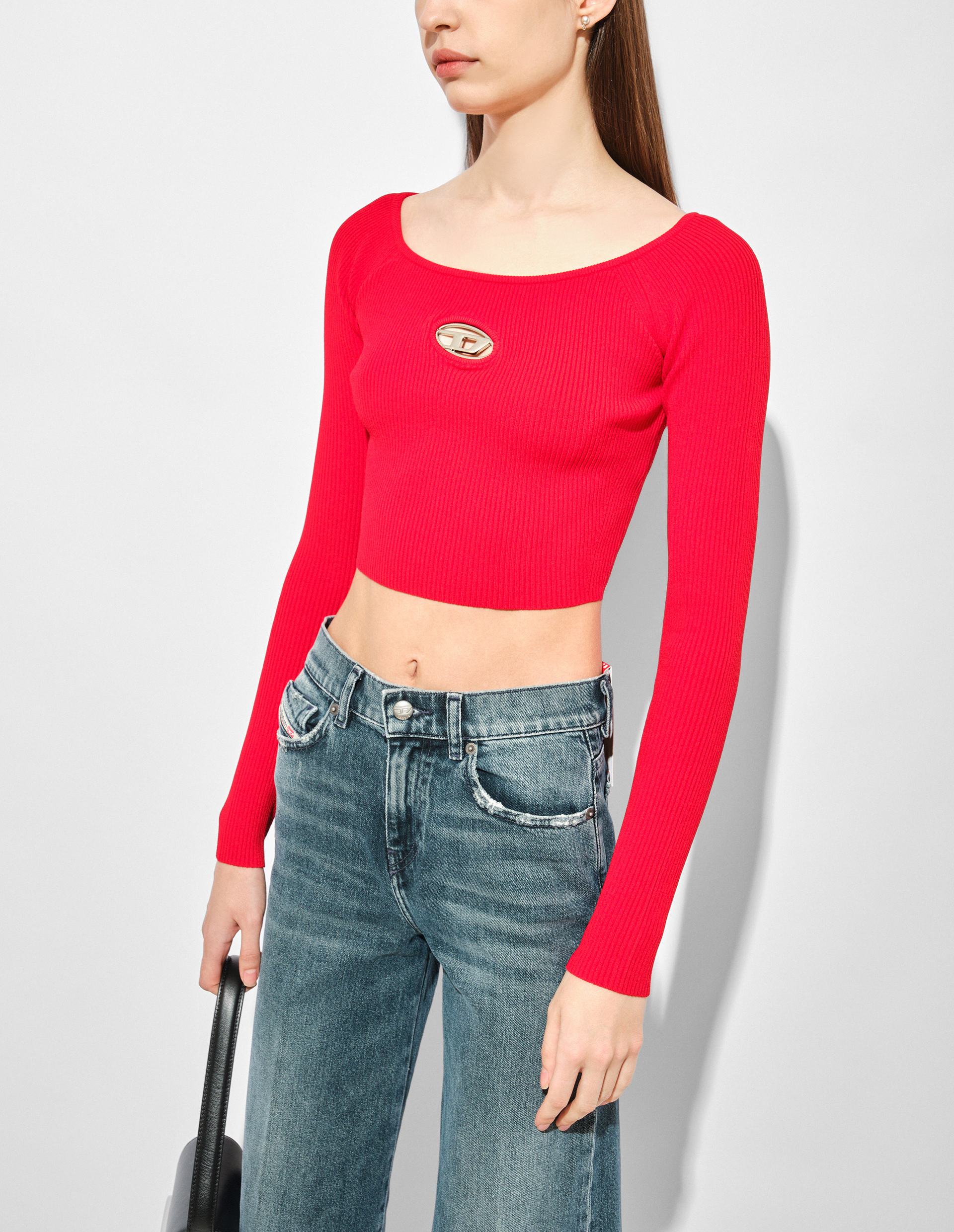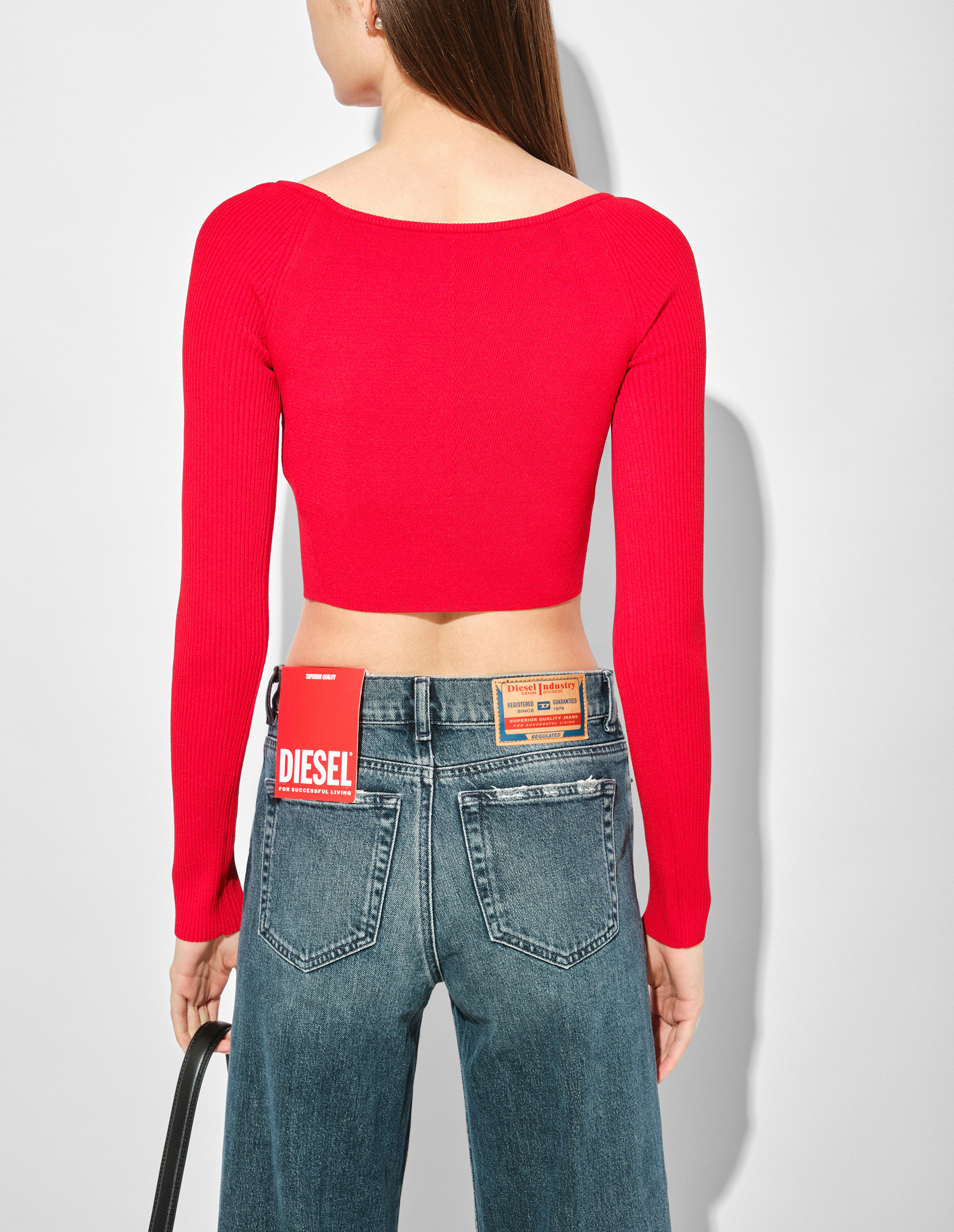 Топ M-VERA-LS с длинными рукавами выполнен из мягкого трикотажа с добавлением экологичной вискозы, полученной из древесины ответственно выращенных лесов. Модель отличается чувственным кроем с открытыми плечами и глубоким вырезом, в который вмонтирована фирменная металлическая пластина Oval D. Эластичная ткань плотно облегает силуэт, подчеркивая фигуру, а ребристая фактура добавляет текстуру и динамику образу. Экоматериалы сочетаются с фирменной бунтарской эстетикой Diesel, делая этот топ идеальным выбором для смелых городских аутфитов.