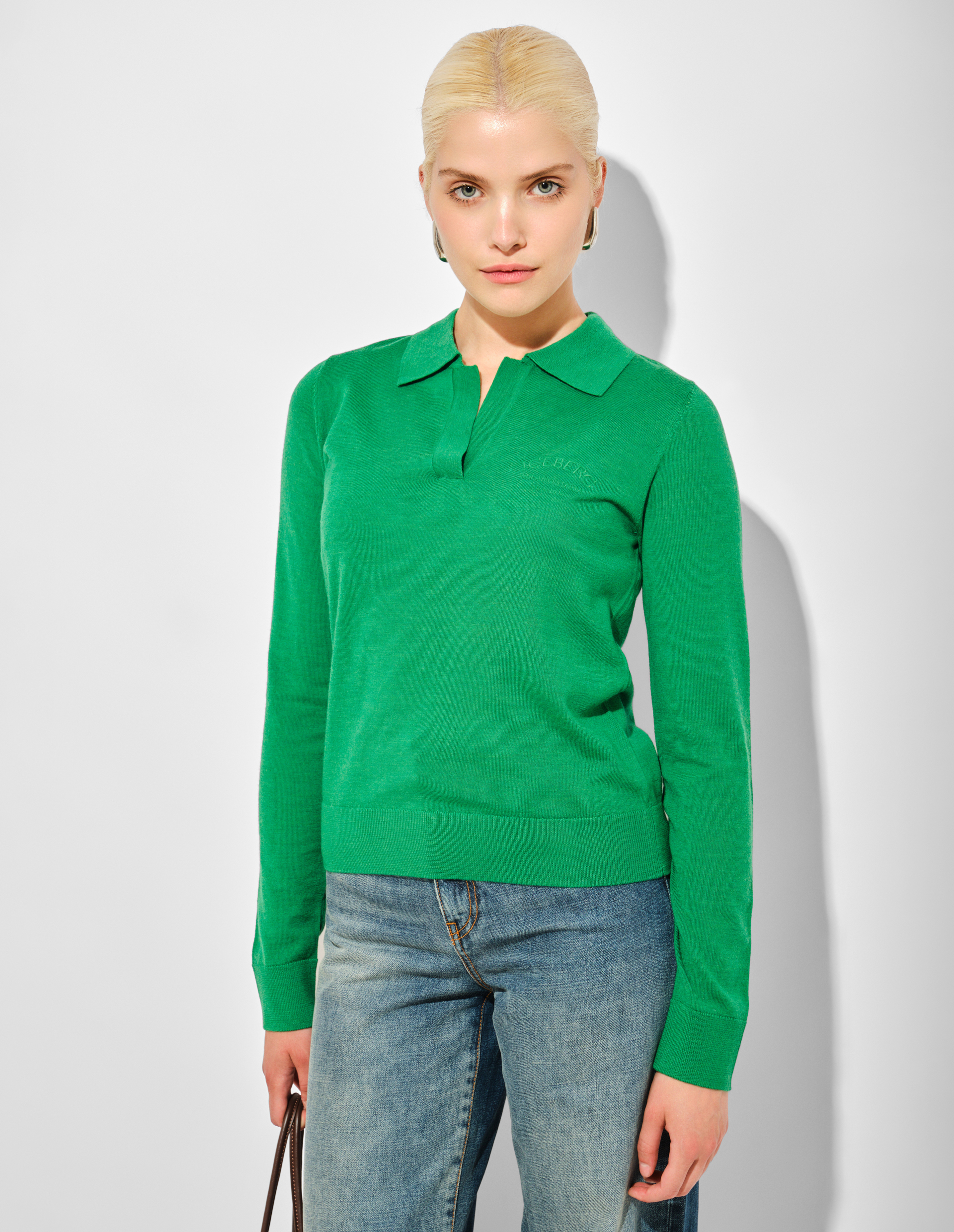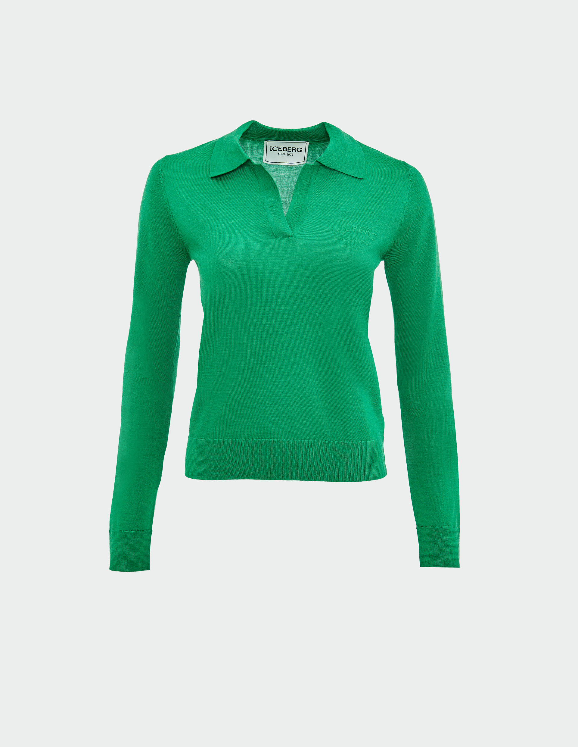 Этот изумрудно-зеленый джемпер демонстрирует искусство итальянского трикотажа в его самой утонченной форме. Убавленная вязка (специальная техника, создающая мягкую пластичную фактуру) придает модели особую легкость и эластичность, идеально облегая силуэт. Сверхтонкая мериносовая пряжа extra-fine обеспечивает невесомый комфорт и терморегуляцию, сохраняя тепло. Лаконичный воротник-поло с элегантной планкой без застежек подчеркивает чистоту линий, а тонкая вышивка логотипа Iceberg Milano в тон, расположенная у сердца, добавляет брендовый акцент.