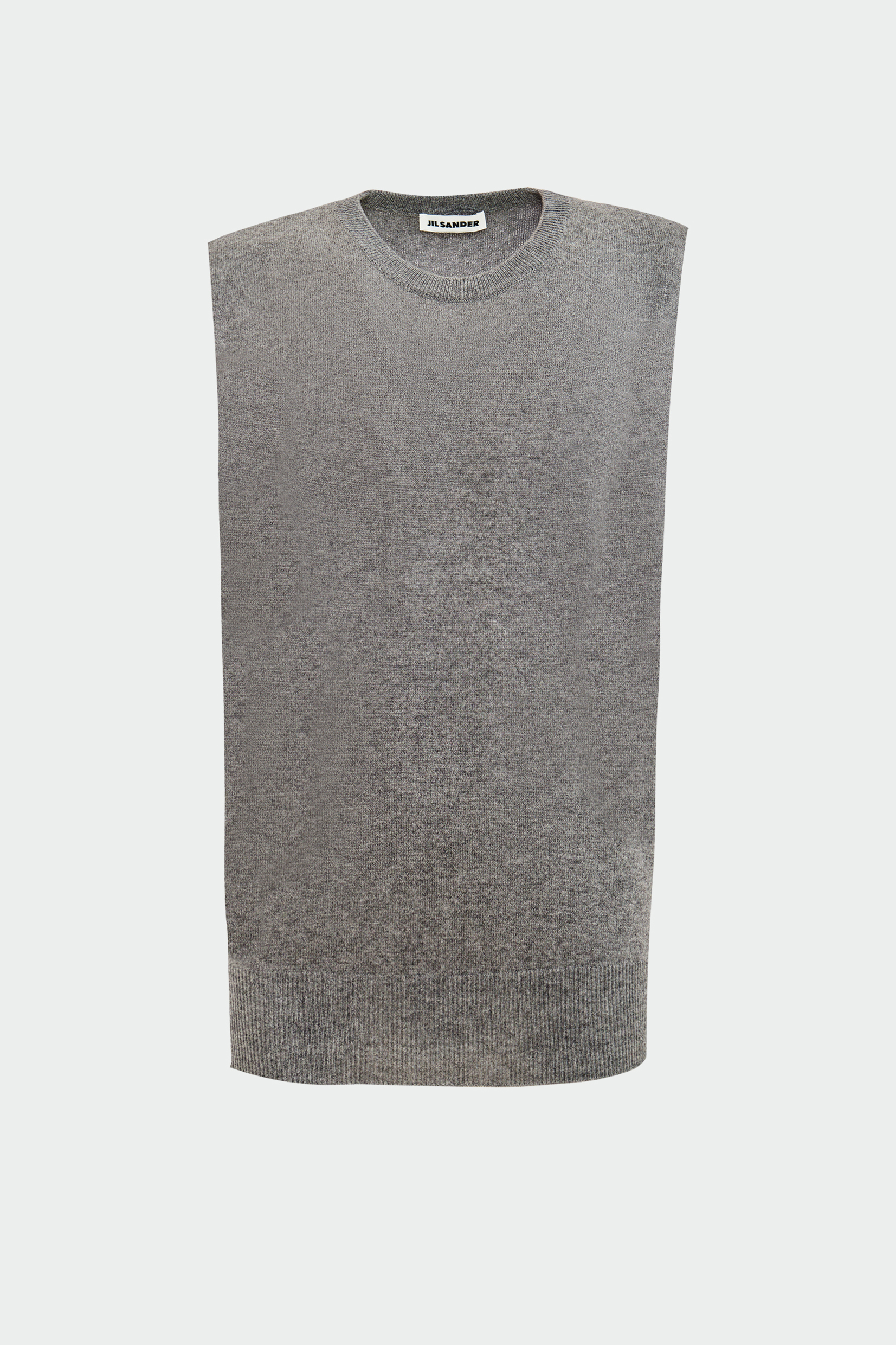 Этот джемпер без рукавов из 100% кашемира серо-меланжевого оттенка — воплощение вневременной элегантности Jil Sander. Исключительные свойства такого трикотажа: невесомая легкость, способность сохранять тепло и невероятная мягкость, превращают его в идеальную инвестицию в гардероб. Круглый вырез и широкая ребристая резинка создают скульптурный, но комфортный силуэт, позволяя тонкому полотну податливо драпироваться. Нейтральный цвет и лаконичный дизайн отражают суть ДНК бренда: безупречное качество материалов, чистота линий и сдержанная роскошь, которая не подвластна времени.