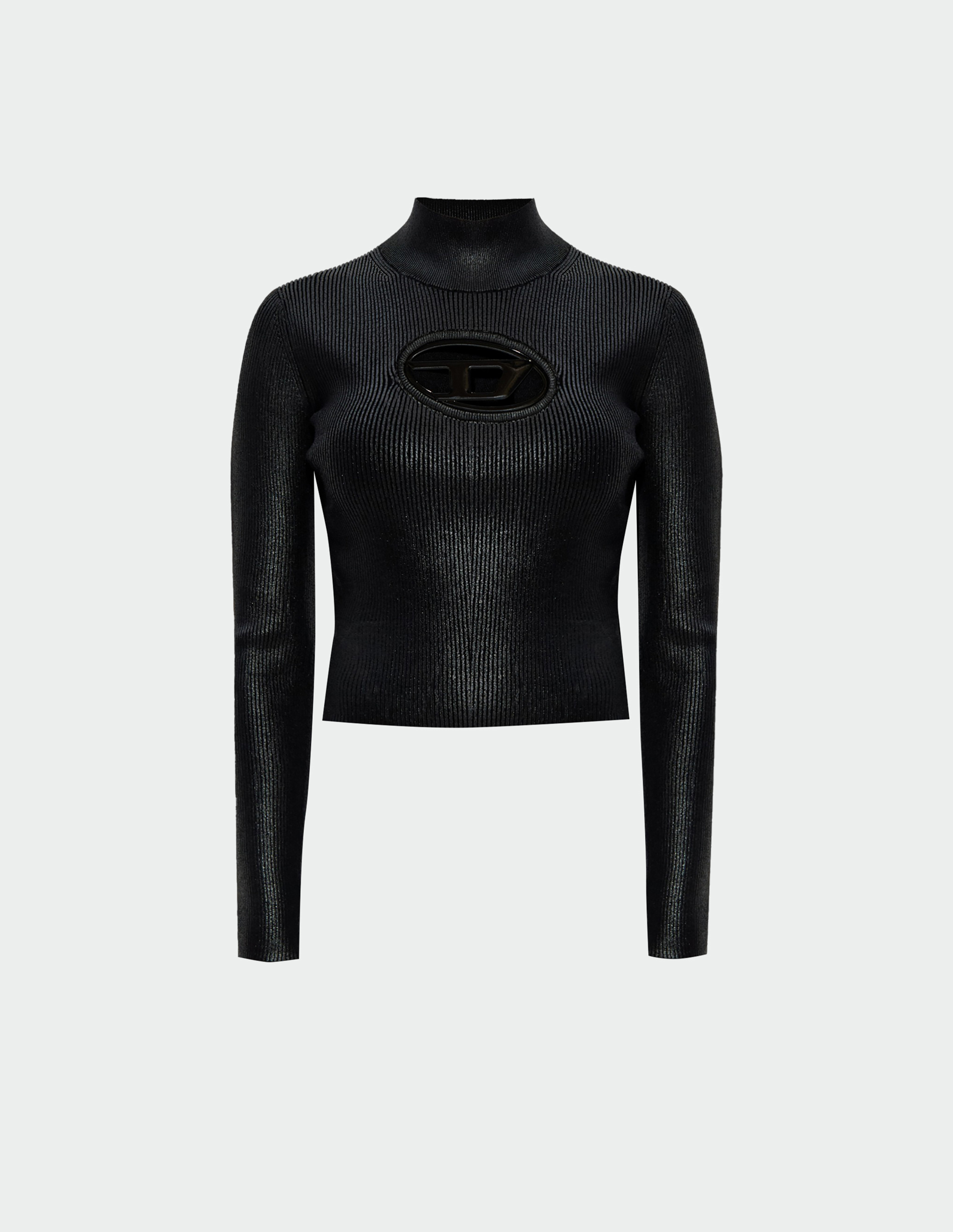 Укороченная водолазка от Diesel с рубчатой структурой бросает вызов повседневности через инновационные материалы. Мягкая вискозная ткань с инкрустацией из металлизированной майларовой пленки — технологичного материала, создающего эффект жидкого серебра, — переосмысливает традиционный трикотаж. Фурнитура Oval D архитектурно раскрывает область груди, превращая функциональный элемент в провокационный жест. Это сочетание чувственной текстуры и индустриального шика отражает credo бренда: мода как инструмент трансформации, где каждый предмет открывает новые границы самовыражения через дерзкие конструктивные решения.