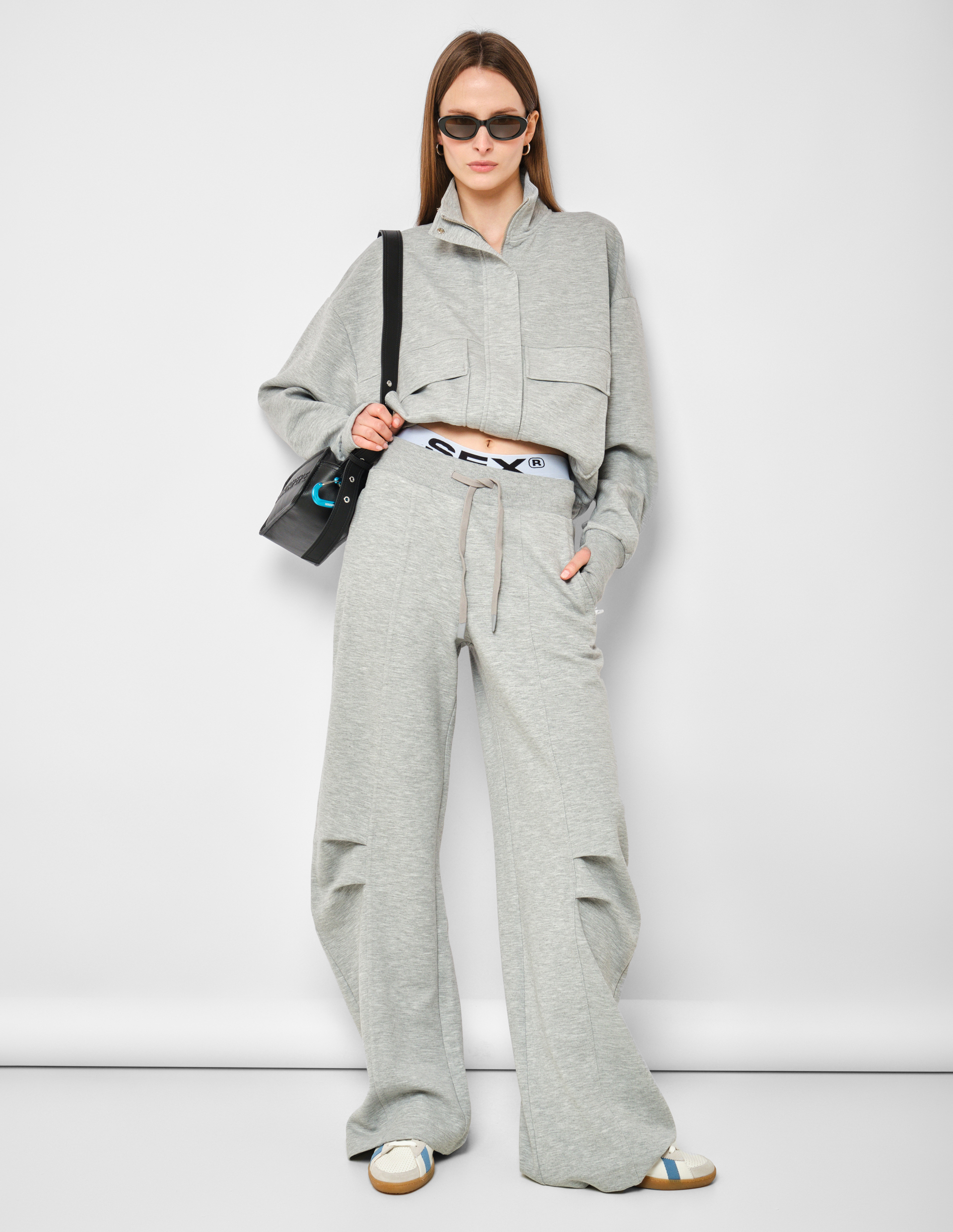 Укороченный крой, крупные накладные карманы и замок вместо привычных завязок — это худи пересматривает правила уличной классики. Серый меланжевый оттенок добавляет текстурной глубины, делая вещь одновременно базовой и выразительной. Карманы здесь не просто функциональный элемент, а полноценный декоративный приём, отсылающий к эстетике utility, которая прочно обосновалась в гардеробе тех, кто ценит моду с характером. Логотип на спине появляется не случайно — он работает как графический акцент, превращая обычное худи в носимое высказывание. Укороченная длина идеально балансирует на грани между спортивной небрежностью и продуманной геометрией, позволяя носить его как с завышенной талией брюк, так и поверх платья-комбинации, создавая многослойные образы на стыке комфорта и дерзости.
