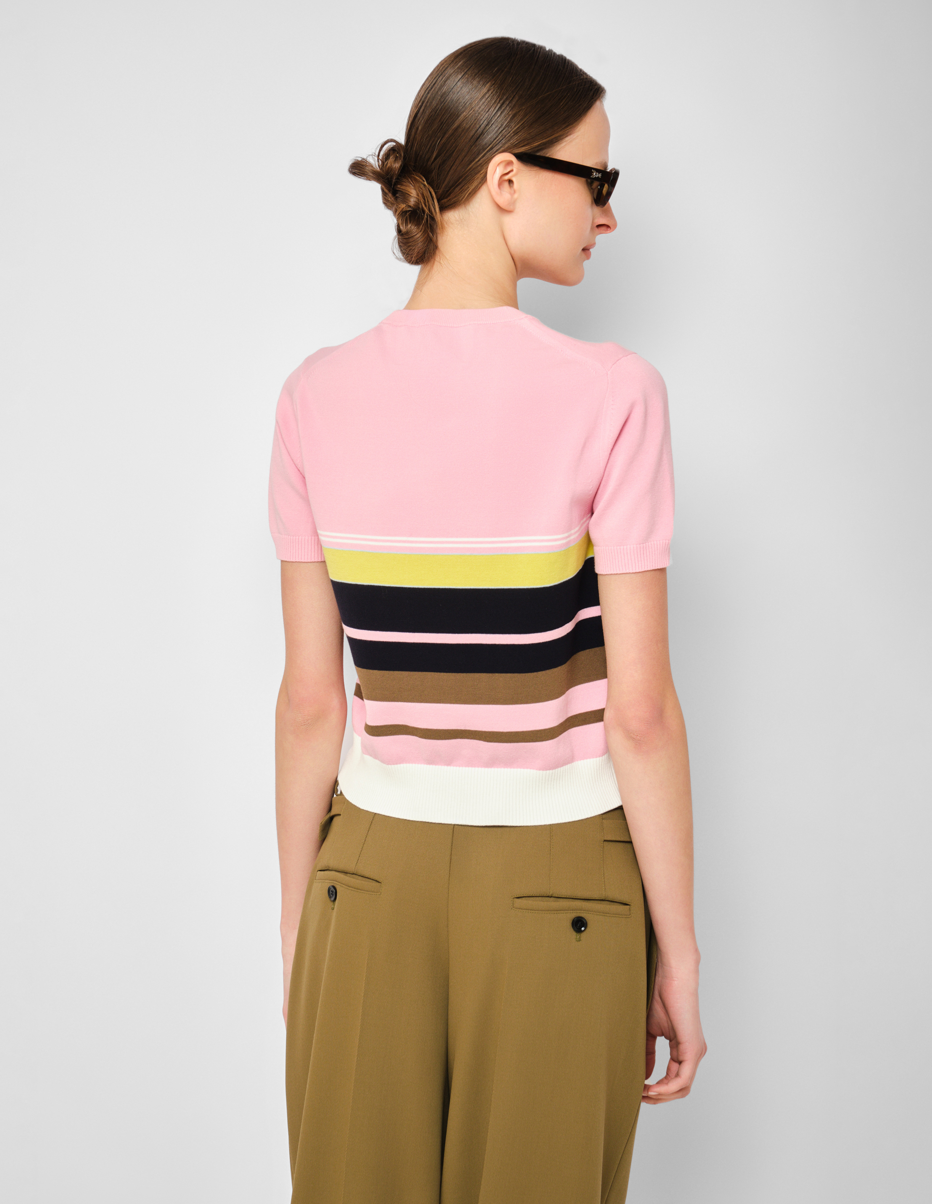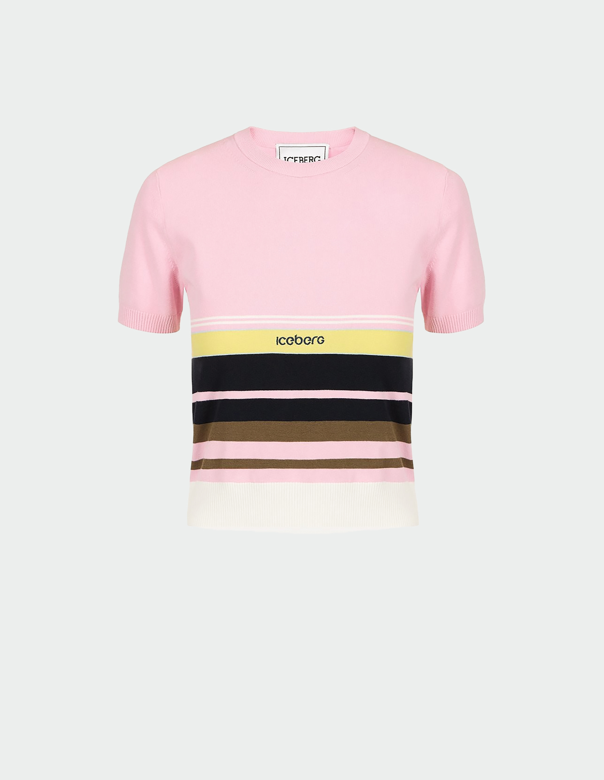 Розовый джемпер с коротким рукавом, цветными полосами и вышитым лого
