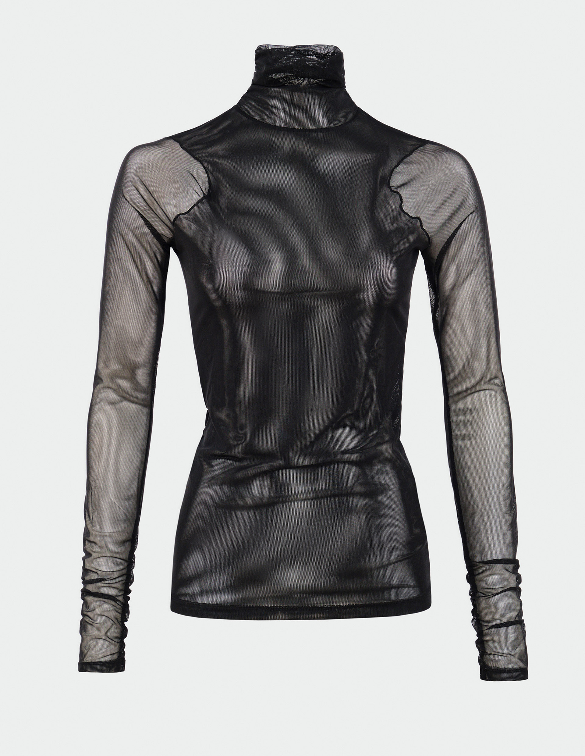 Черная водолазка в сетку от бренда LVIR способна подчеркнуть уверенность и сексуальной каждой девушки без намека на пошлость. Нежнейший материал из тончайшего нейлона и прочного полиуретана полупрозрачной черной сеточкой мягко облегает все тело и подчеркивает его достоинства. За счет нескольких слоев материала по талии и высокой горловины изделие выглядит актуально и стильно, не теряя в своей лаконичности и пристойности.