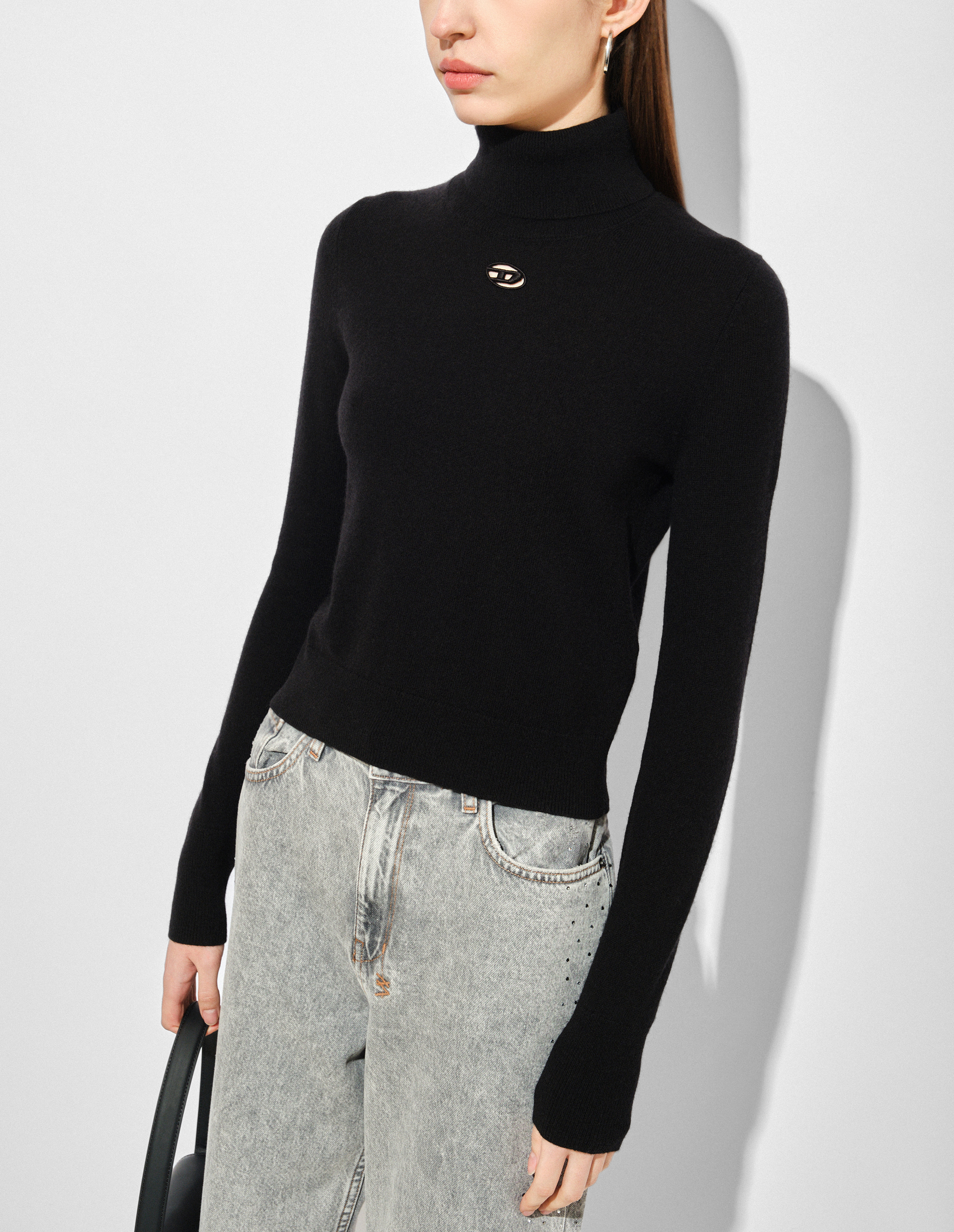 Джемпер M-Areesax-Tn с высоким воротом связан из роскошного трикотажа, полученного благодаря использованию сертифицированных, ответственно полученных шерсти и переработанного кашемира. Первая поступает с ферм, реализующих продуманные методы защиты животных и управление земельными ресурсами. Слегка укороченный прямой силуэт украшен логотипом Oval D с прорезными отверстиями для знаковой идентичности Diesel, а также деликатной демонстрации вашей кожи.