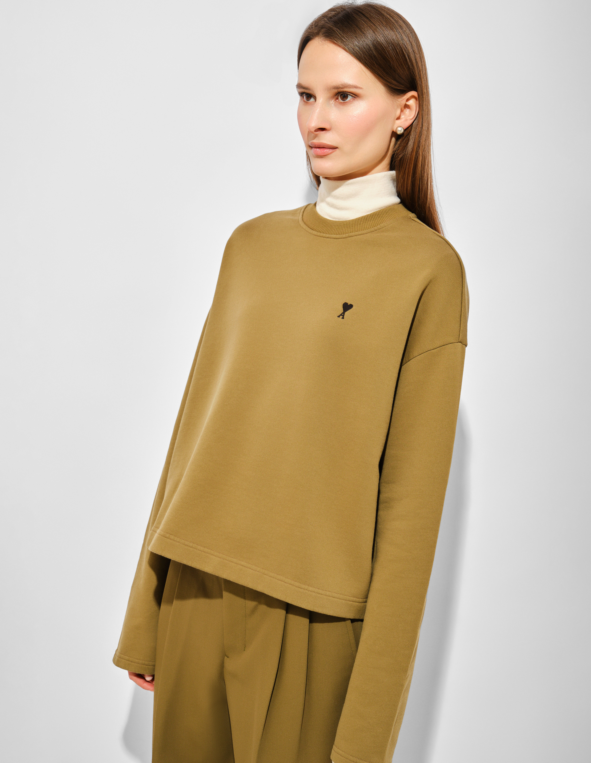 Свитшот в цвете хаки с черным сердцем Ami De Coeur
