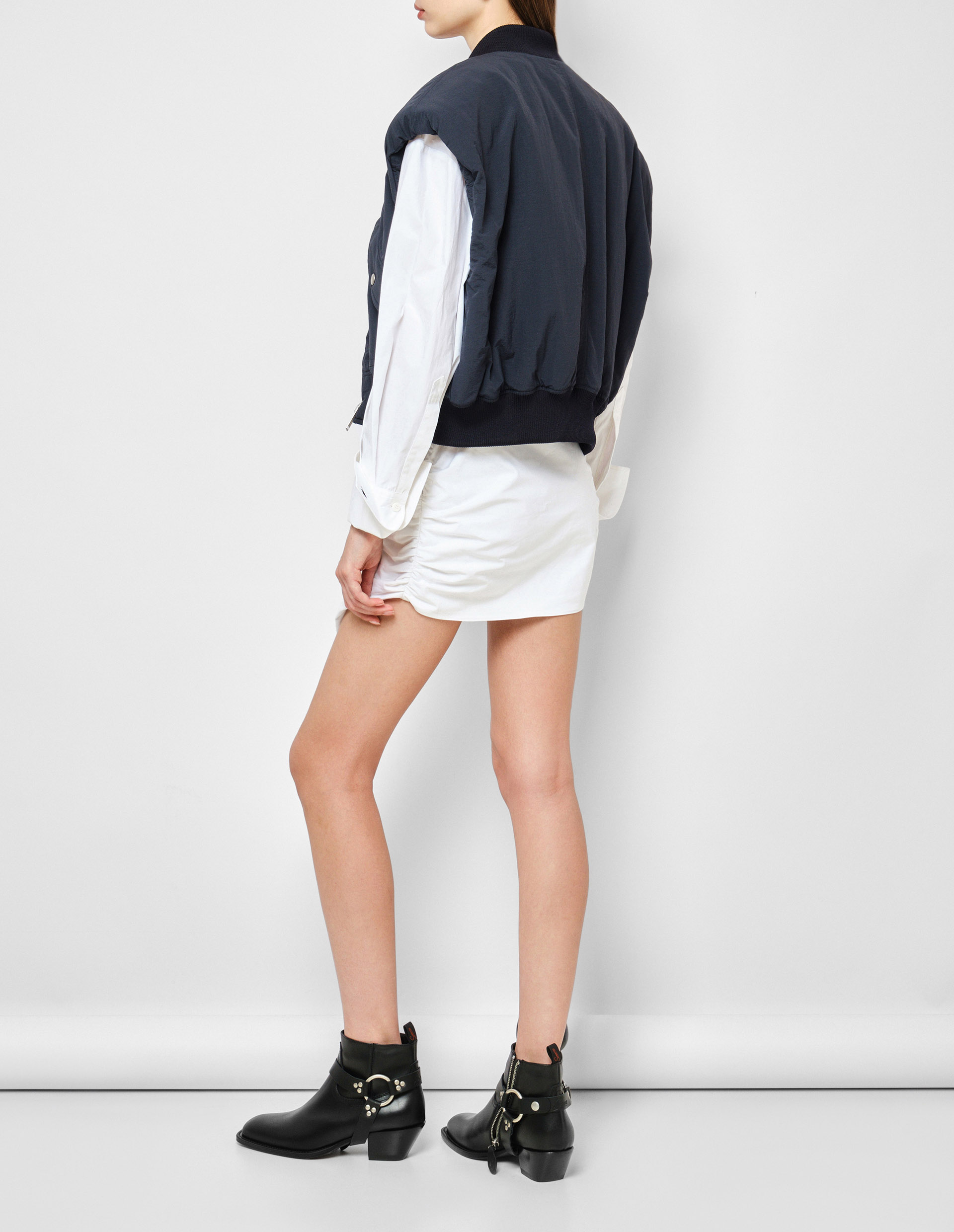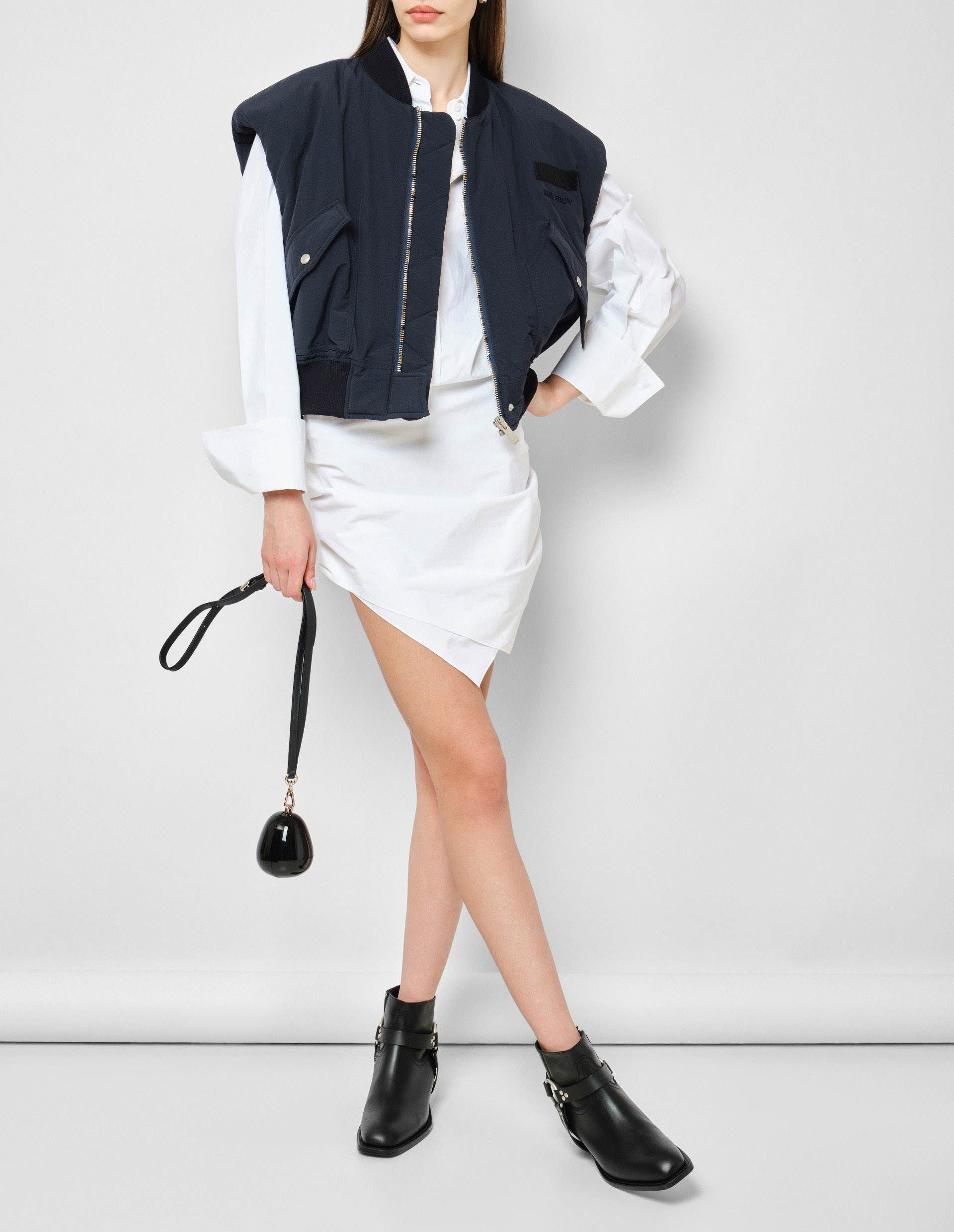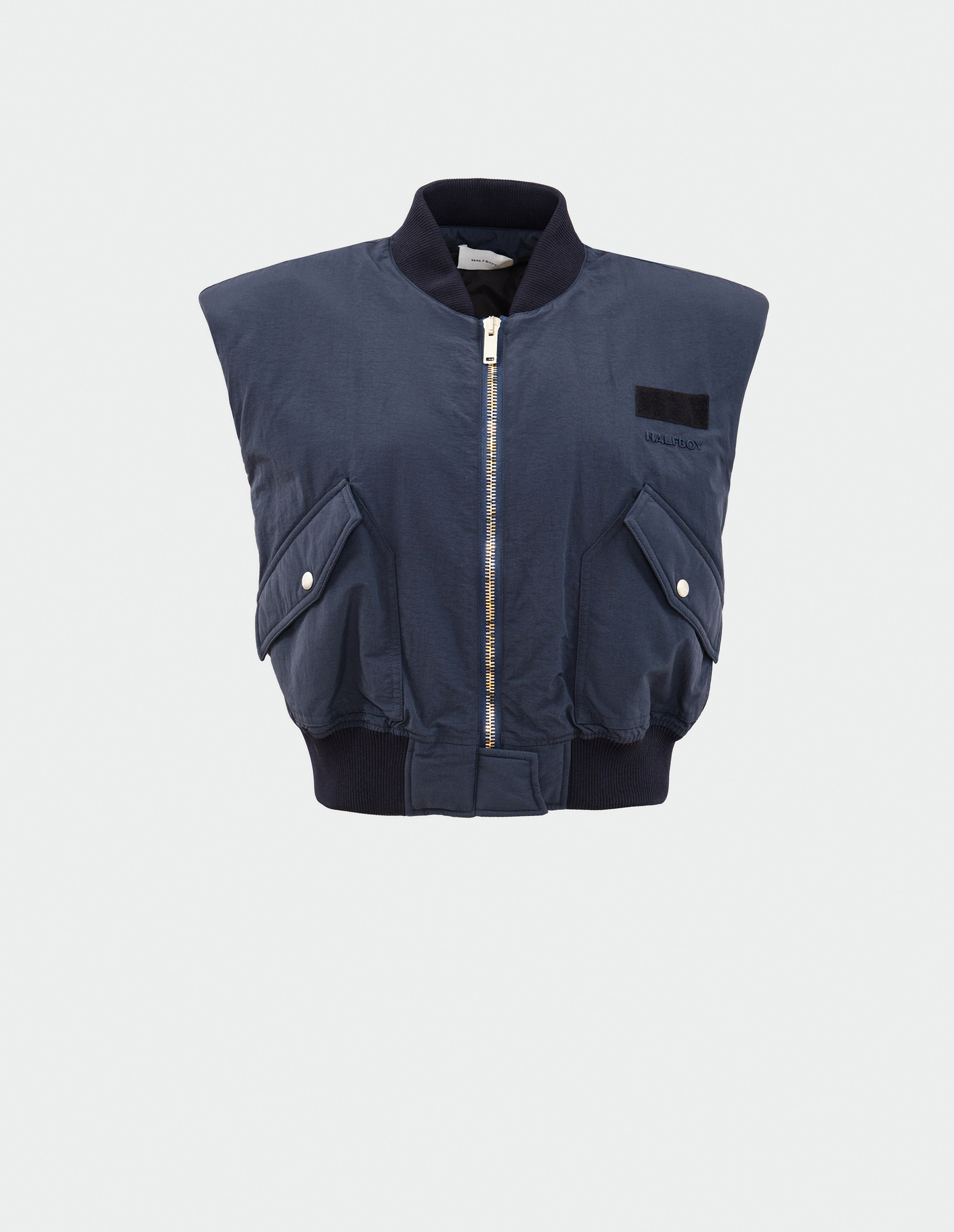 Жилет из технологичного полиамида символизирует современный, амбициозный дизайн в дуэте с итальянским мастерством. Согласно философии Halfboy, нарочито грубые, объемные подплечники сочетаются с женственным укороченным силуэтом и мягкими трикотажными деталями, а два больших кармана, легкий oversize напоминают об эстетике 90-х. Стильная, функциональная вещь, которую можно использовать круглый год.