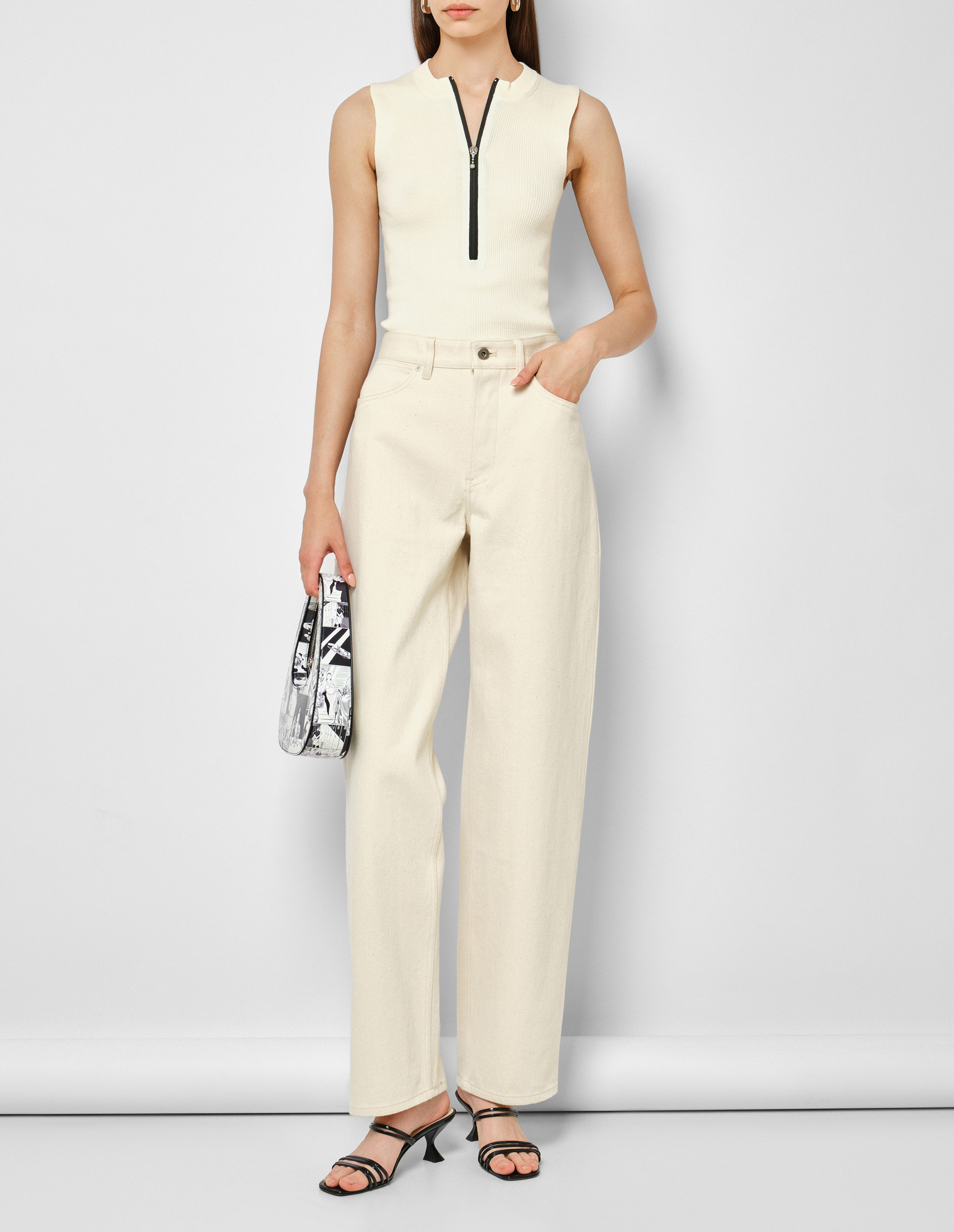 Прямые джинсы средней посадки в кремовом оттенке