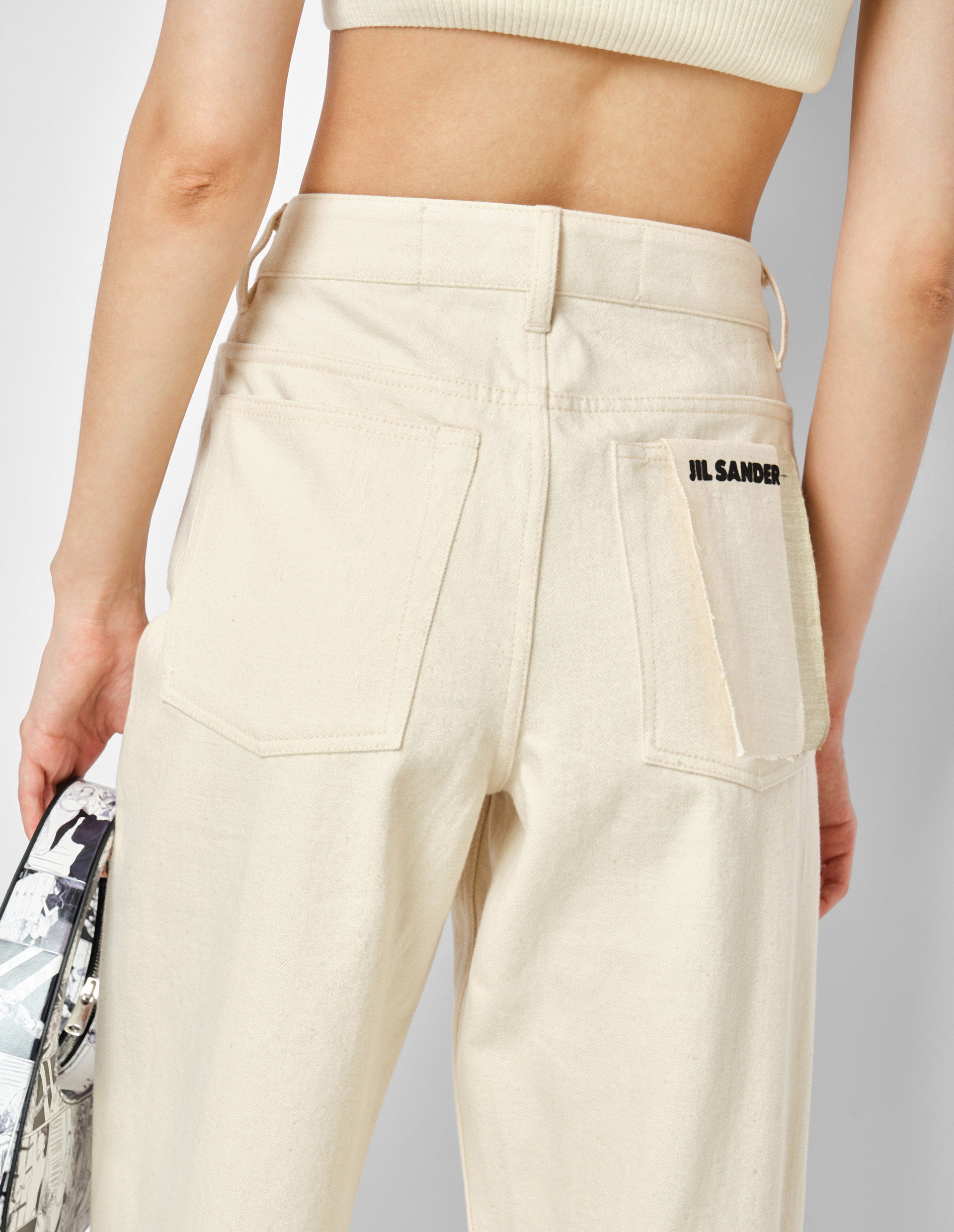 Светлые джинсы — это незаменимый элемент для стильных летних стилизаций. Но представленная модель прямой пары джинс от бренда Jil Sander сможет придать образам роскошности и статусности. Кремовый оттенок выглядит благородного и лаконично, а также легко сочетается с абсолютно любой цветовой палитрой. Материал из премиального органического хлопка обеспечивает идеальную посадку по фигуре и не препятствует активным движениям в течение всего дня.