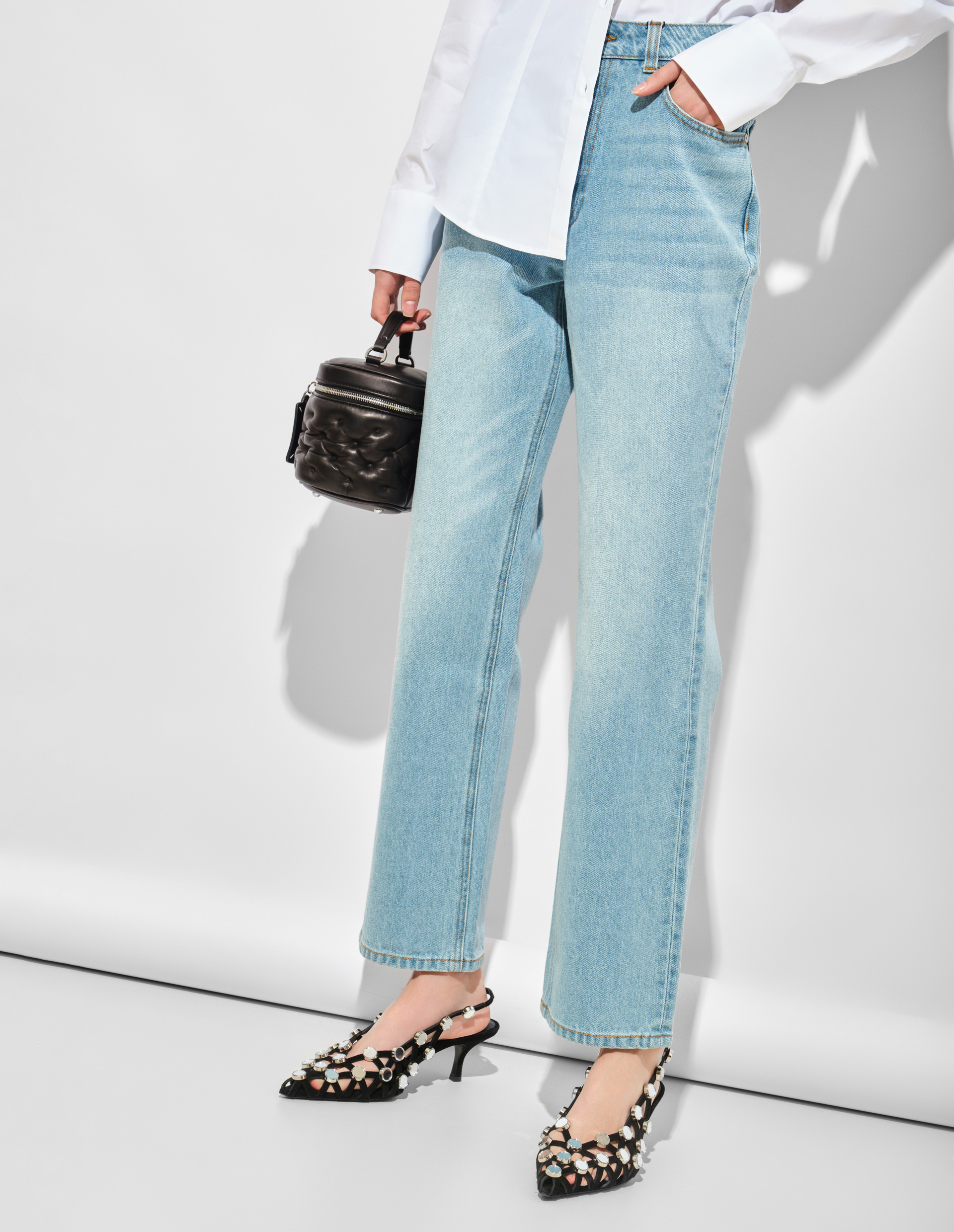 Прямые светло-голубые джинсы