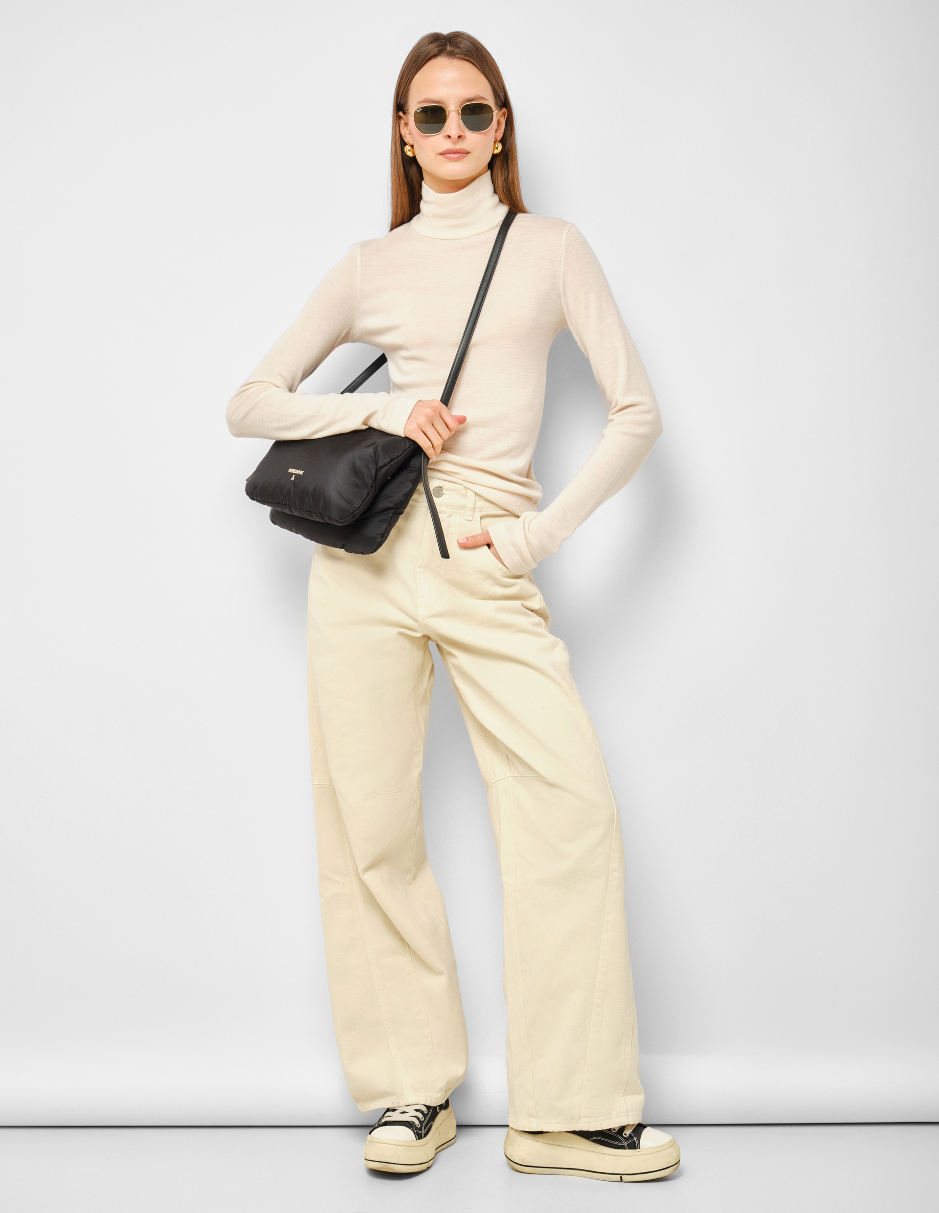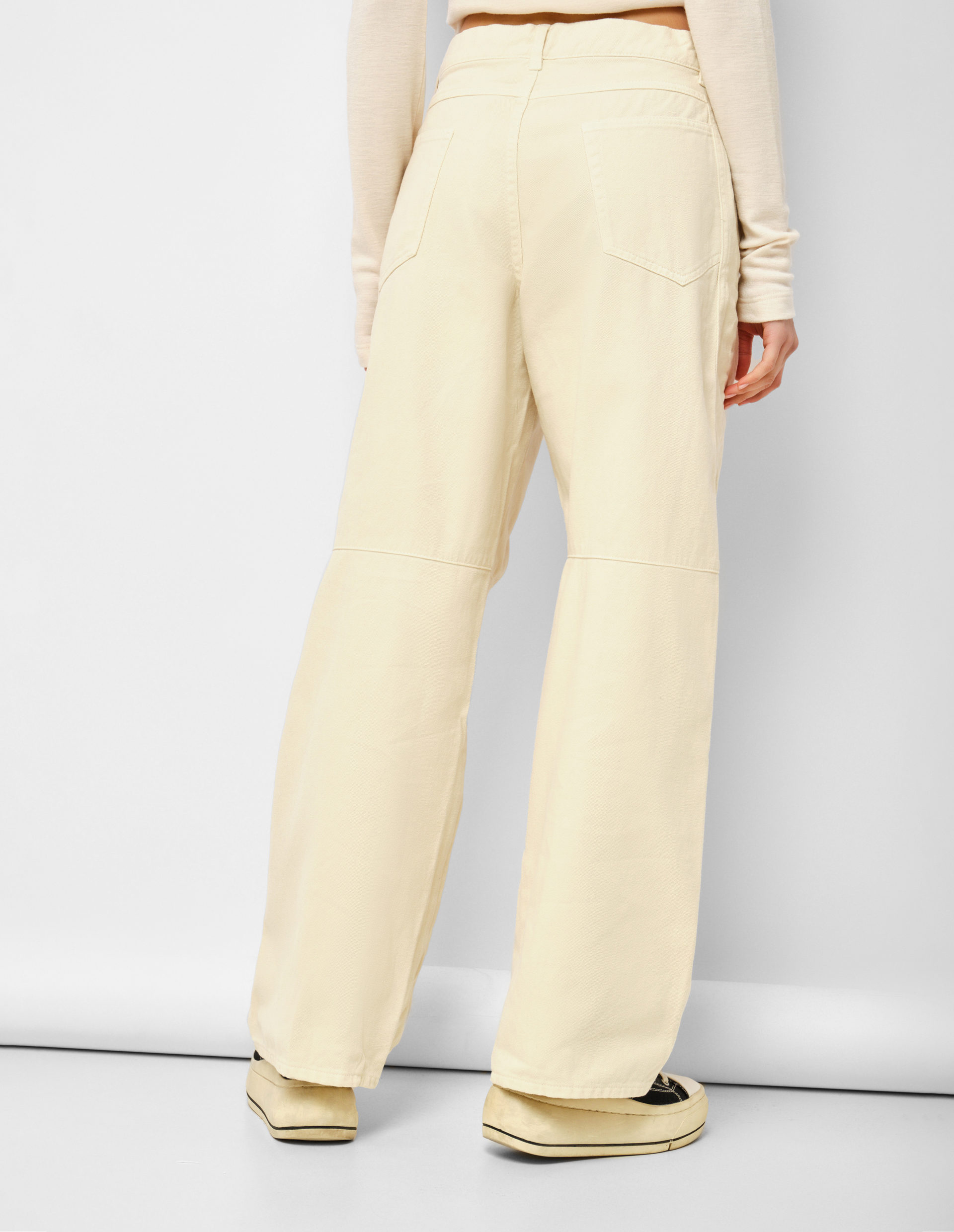 Переосмысливая классику. Эффектные джинсы-мом Andrea Ya’aqov — это баланс между расслабленным силуэтом и архитектурной чёткостью кроя. Модель построена на контрасте: утилитарная денимовая ткань обретает скульптурный объём, создавая мягкую, но уверенную форму. Свободная модель с профилированными коленями Небелёный бежевый оттенок добавляет образу интеллектуальной лёгкости и вневременной универсальности. Этот предмет — воплощение философии бренда, где комфорт и сложная конструкция сливаются в вещи для повседневной жизни с характером. Andrea Ya'aqov — это диалог между утилитарностью и искусством. Основанный в Милане юристом и журналистом, бренд начинался с 17 переосмысленных худи. Сегодня это сложные по конструкции, но носибельные вещи из лучших итальянских тканей, где строгая геометрия встречается с внезапными срезами. Andrea Ya'aqov — это вещи, которые цепляют визуально, но созданы для реальной жизни.