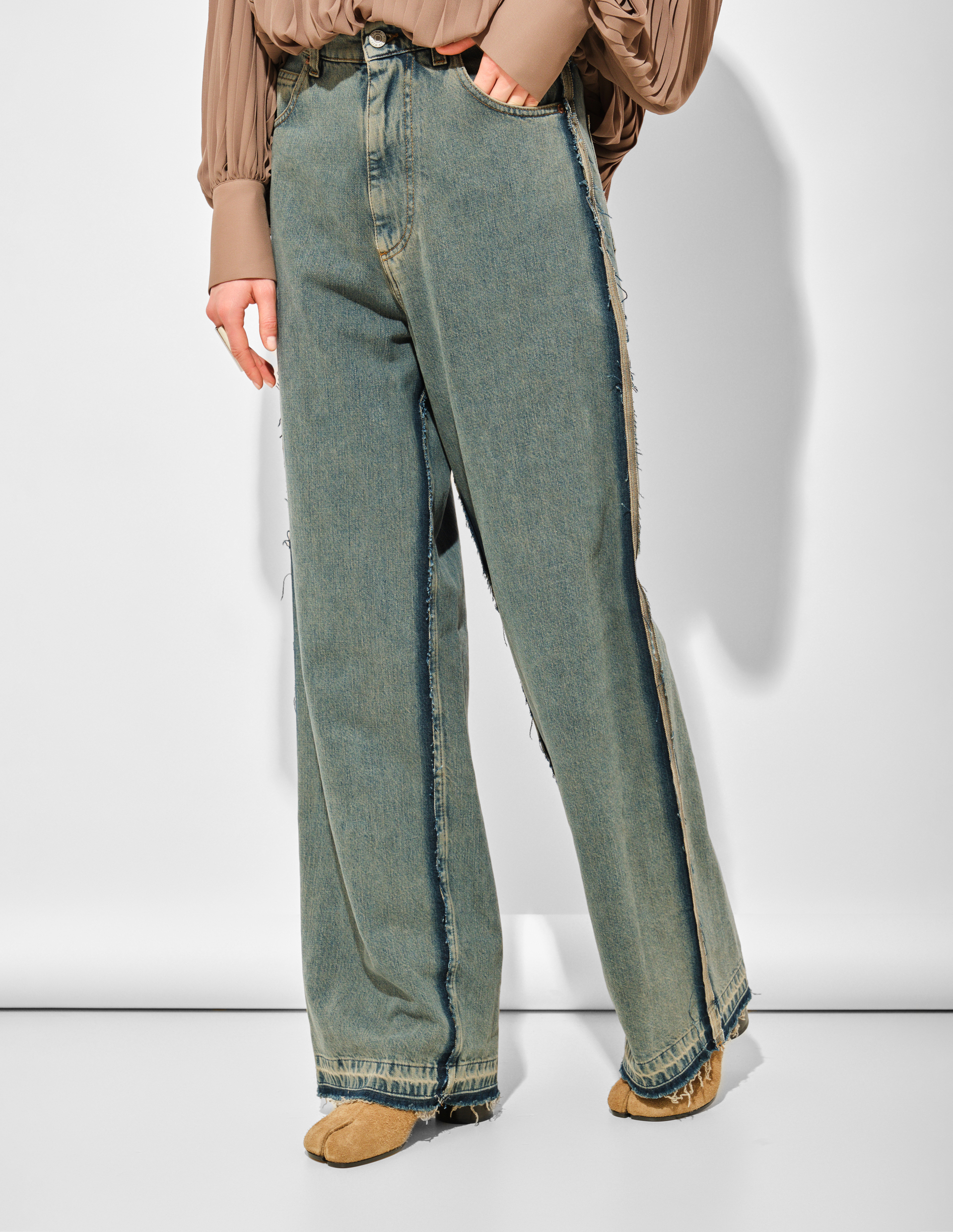 Широкие джинсы с эффектом деконструкции
