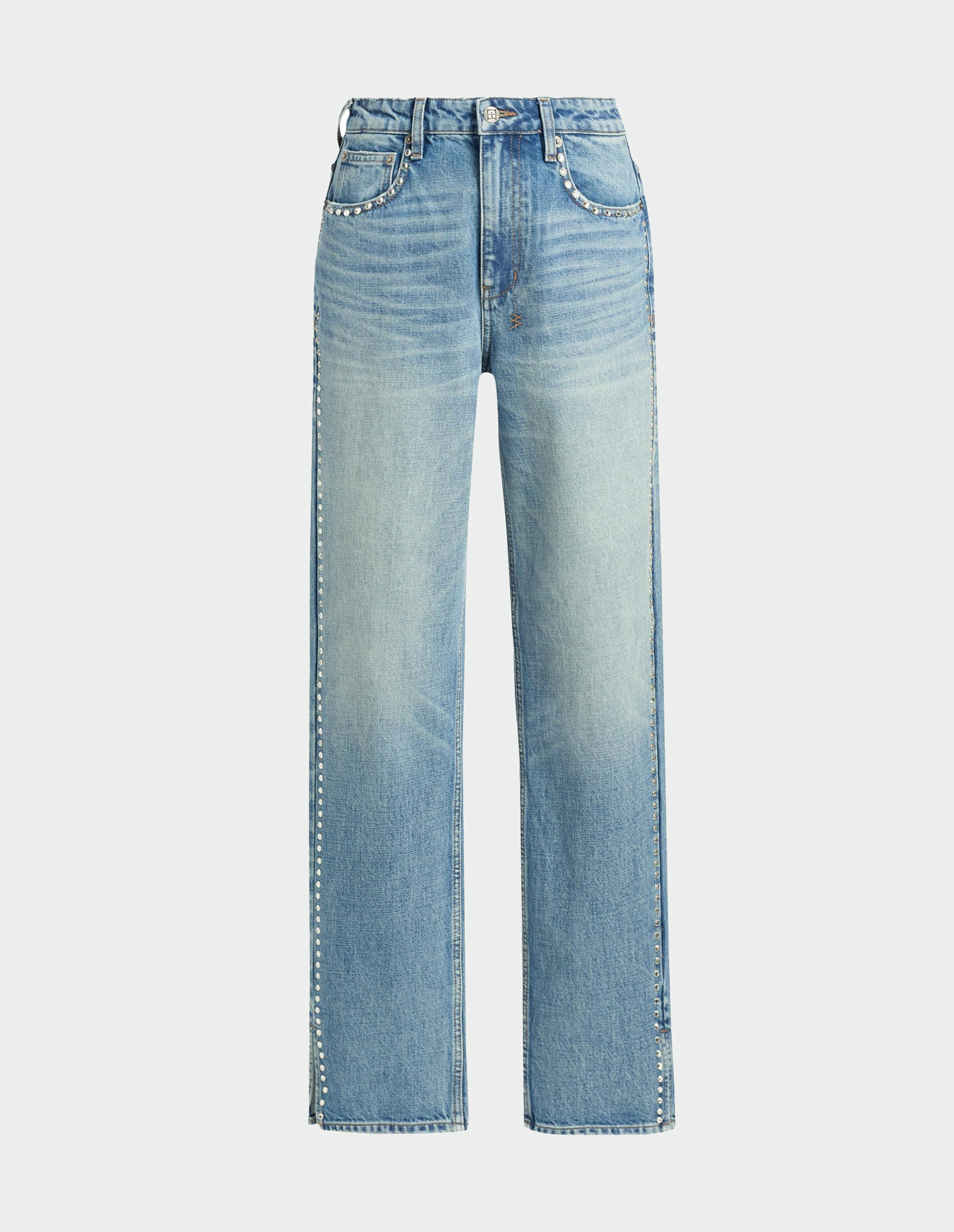 Прямые голубые джинсы с высокой посадкой и отделкой стразами Playback 2.0