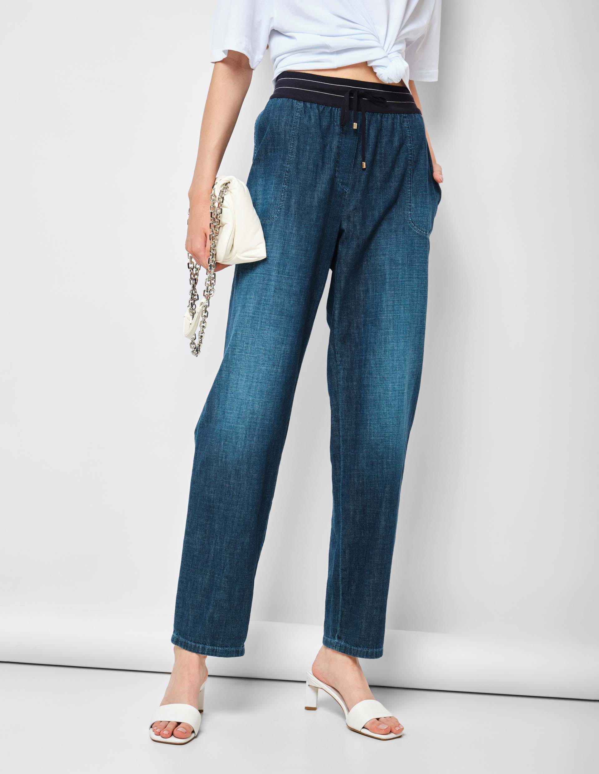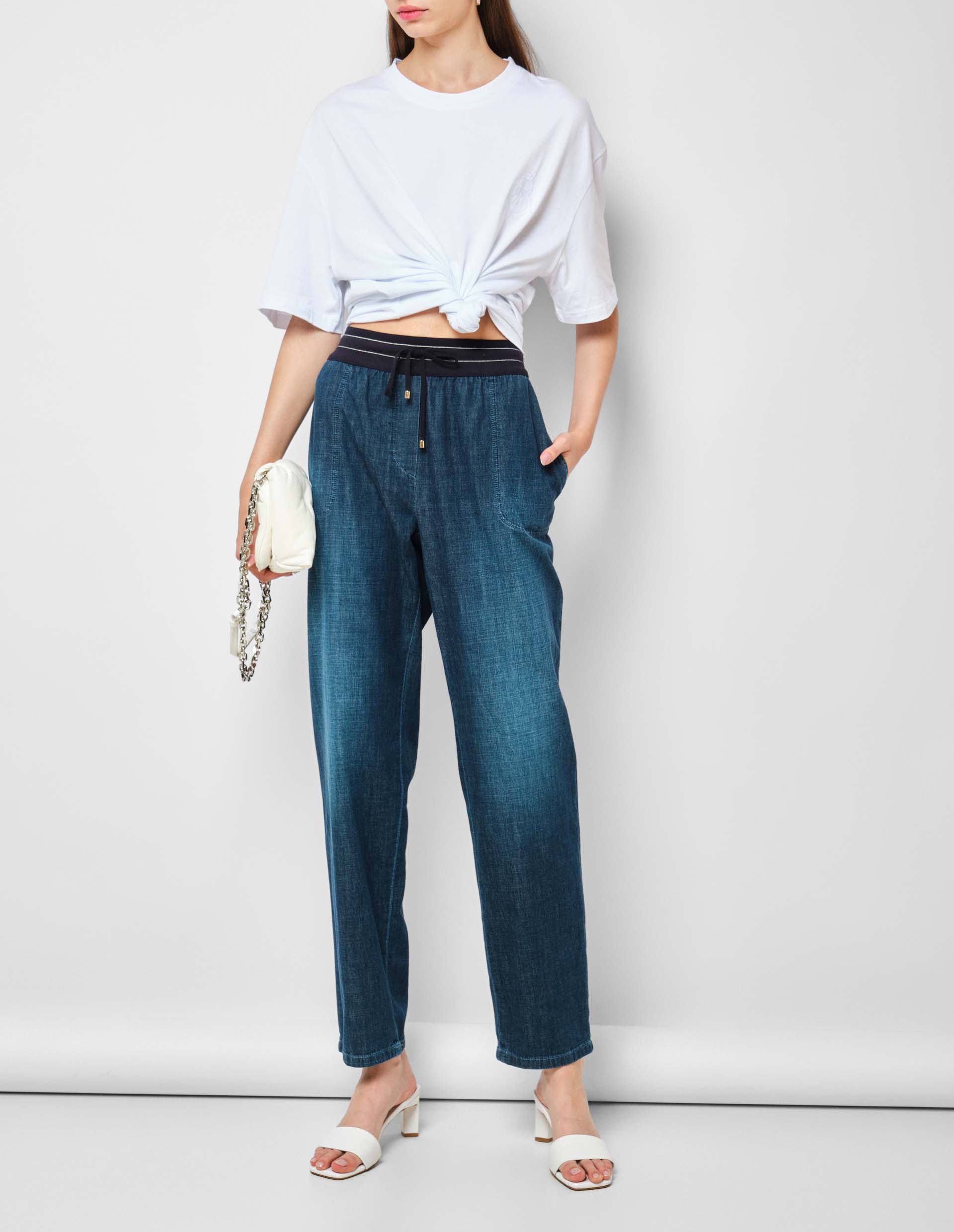 Синие джинсы с эластичным трикотажным поясом