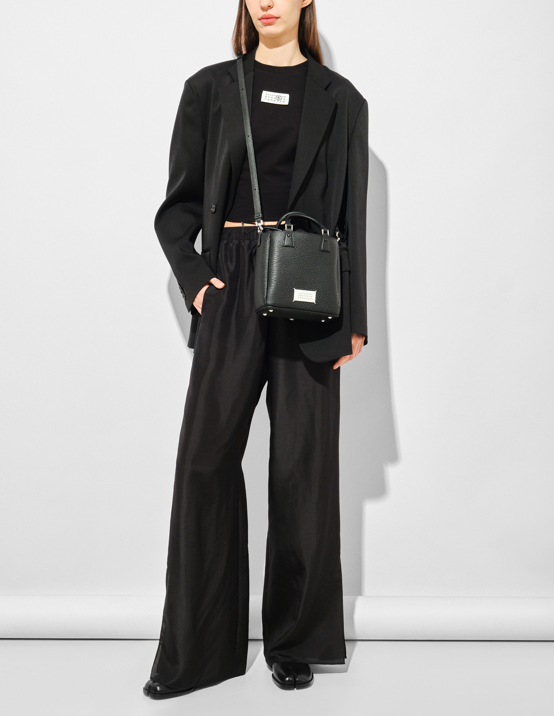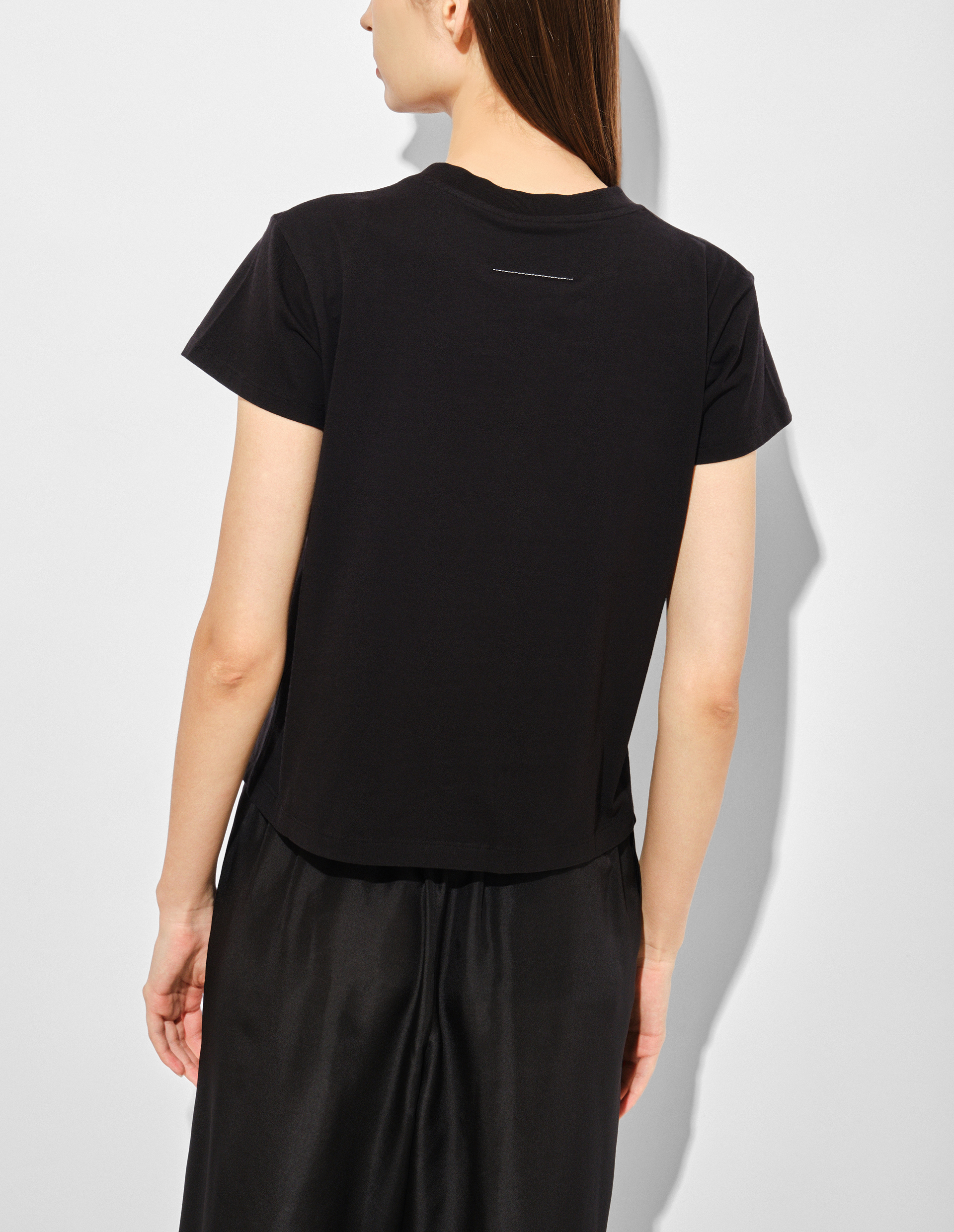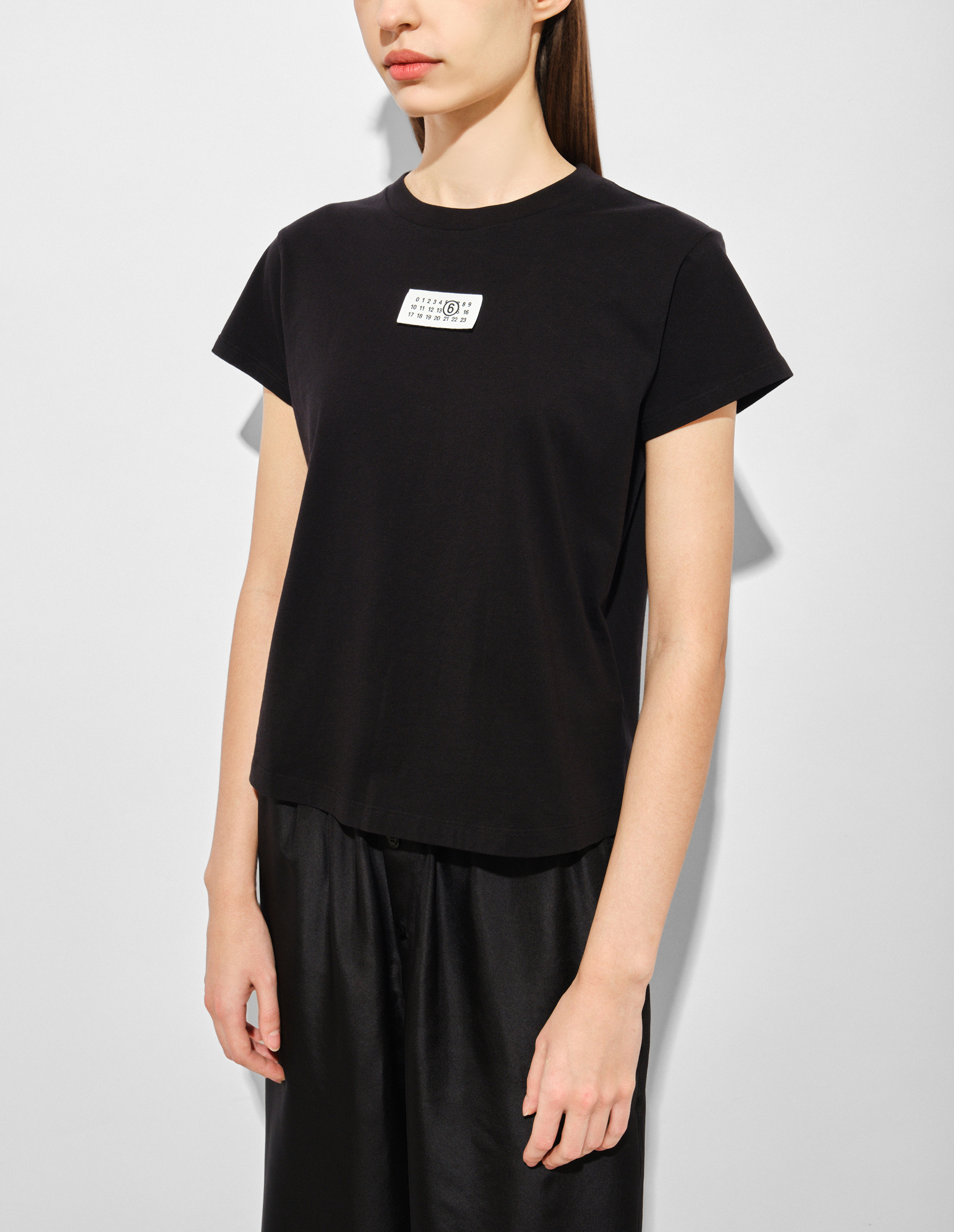 Соответствуя идее, где практичная повседневность соприкасается с высокой модой, MM6 входит в новый сезон с "прямолинейными" изделиями. Такими, как эта футболка, изготовленная из джерси на основе высококачественного органического хлопка. Ее свободный силуэт слегка укорочен, дополнен круглым вырезом и украшен фирменным патчем с культовым принтом Numbers. Сдержанный, но четкий знак: горизонтальная белая строчка — это знакомая всему миру подпись MM6 Maison Margiela.