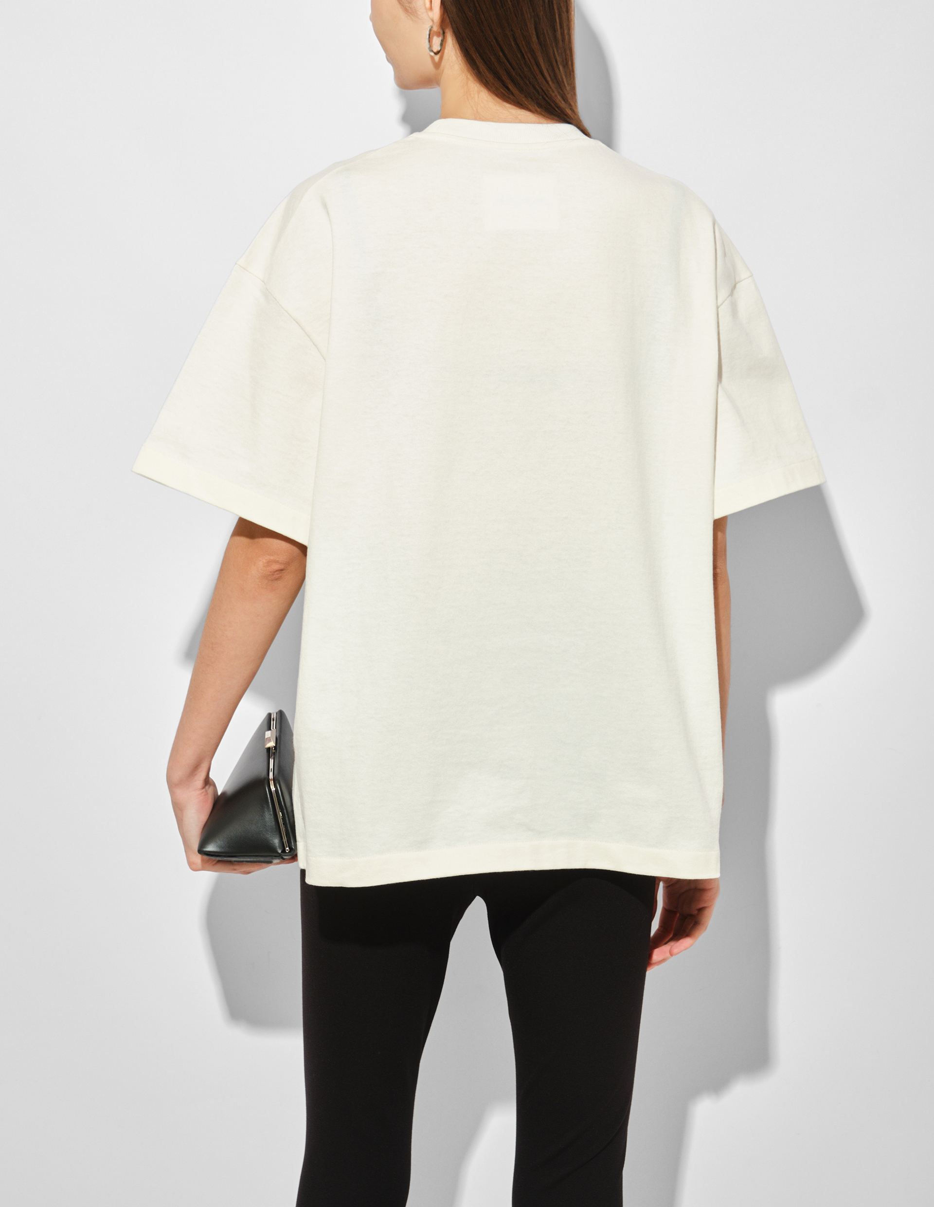 Футболка Jil Sander — образец итальянского качества и осознанного дизайна. Рожденная в мастерских Ломбардии, эта модель воплощает фирменную эстетику бренда: безупречный минимализм, функциональность и внимание к деталям. Свободный крой с продуманными линиями подчеркивает скульптурность силуэта, а плотная текстура органического хлопка придает вещи благородный объем, сближая ее с толстовкой по восприятию. Особую ценность добавляет ответственный подход к производству — хлопок выращивается с соблюдением экологических стандартов, что гарантирует не только мягкость, но и долговечность носки. Завершающий акцент — контрастный логотип на груди, ставший узнаваемым символом чистоты и утонченности.