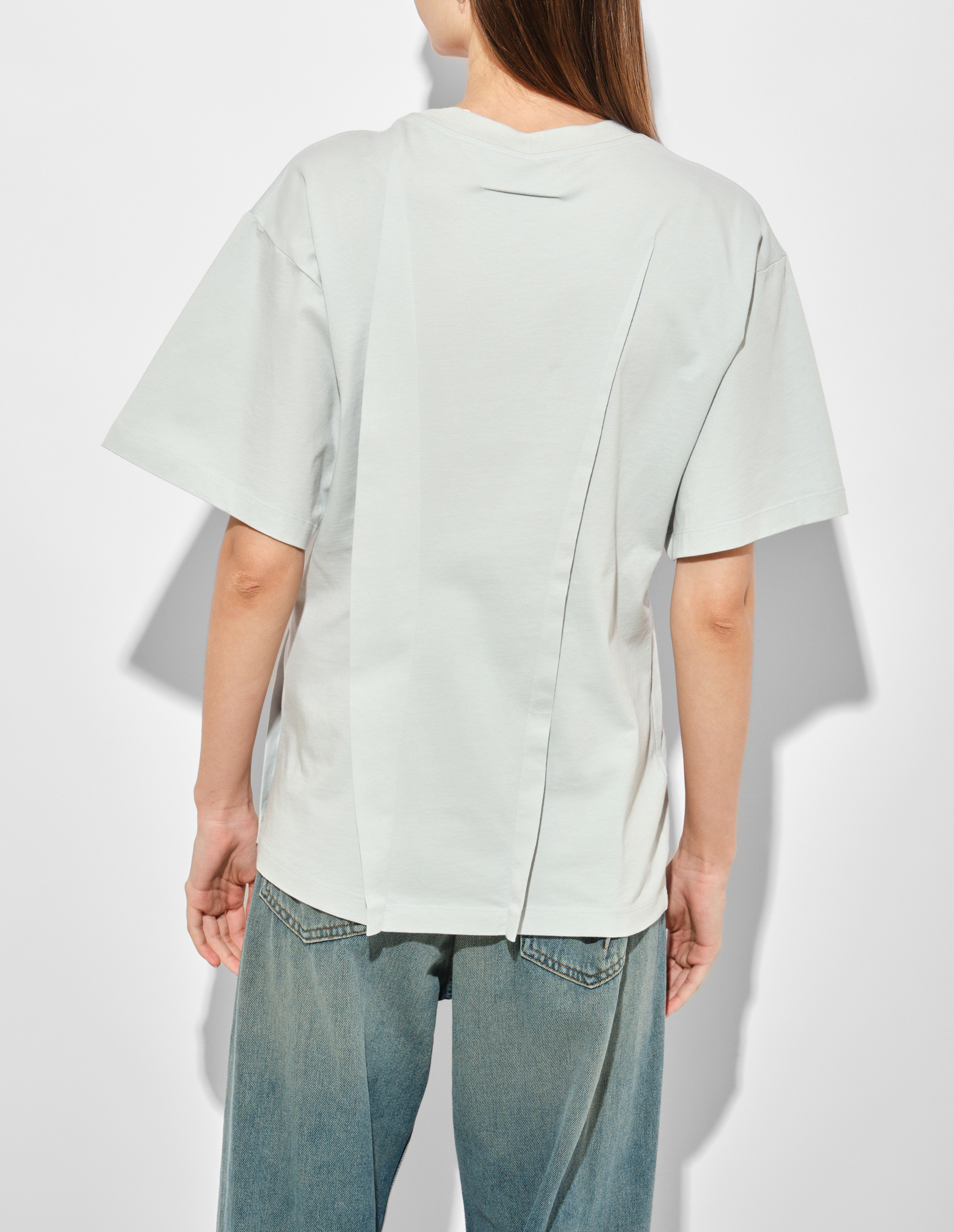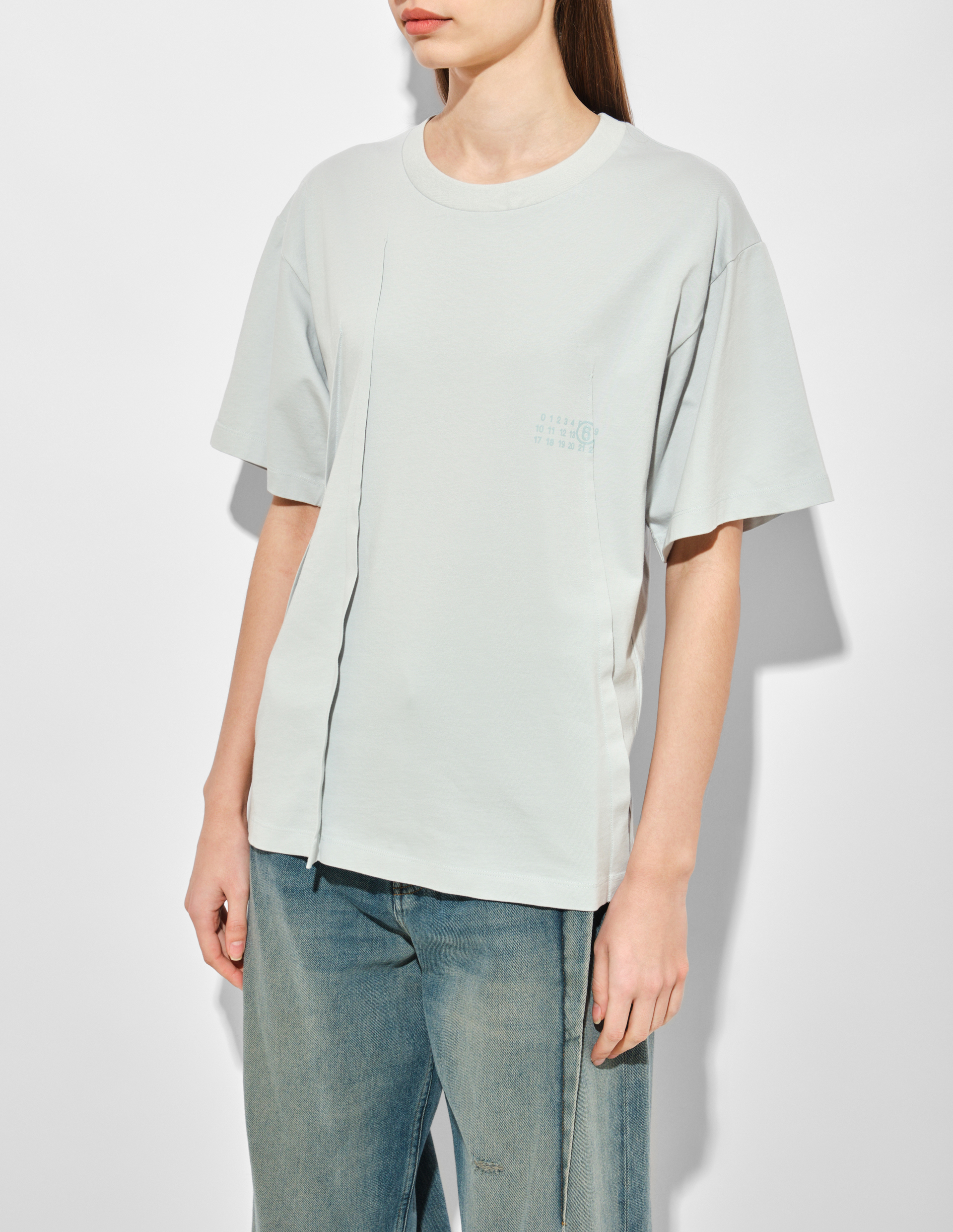 Футболка от MM6 — это пример того, как бренд переосмысливает базовые вещи, добавляя им неожиданный характер, а знакомые коды искажаются и перестраиваются, чтобы подчеркнуть индивидуальность. Классический пошив изделия с круглым вырезом получает инновационный поворот благодаря декоративным защипам спереди и сзади, которые создают объём и динамику. Эти детали не только добавляют визуальный интерес, но и раскрывают уникальный подход MM6 к созданию силуэтов. Модель становится не просто элементом гардероба, а объектом искусства, где минималистичная эстетика и сдержанная цветовая палитра встречаются с экспериментом. Тональный цифровой принт и фирменная строчка на спине завершают образ, отсылая к ДНК Maison.