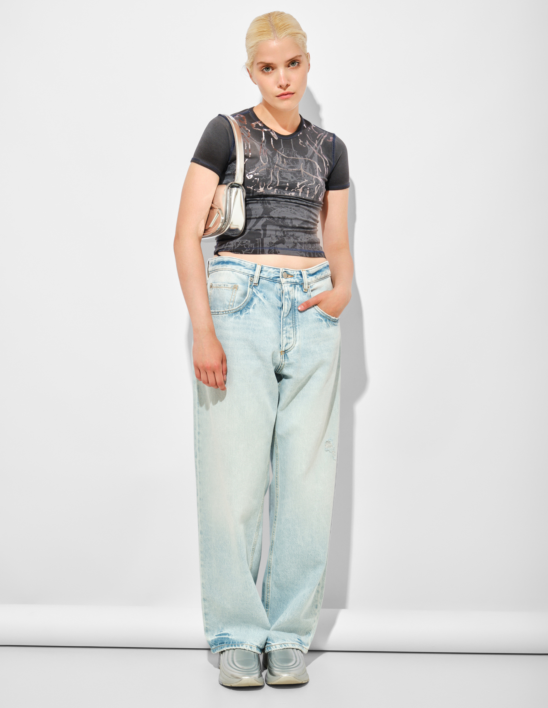 Серая футболка T-Uncuties-Long-R6 с фольгированной отделкой