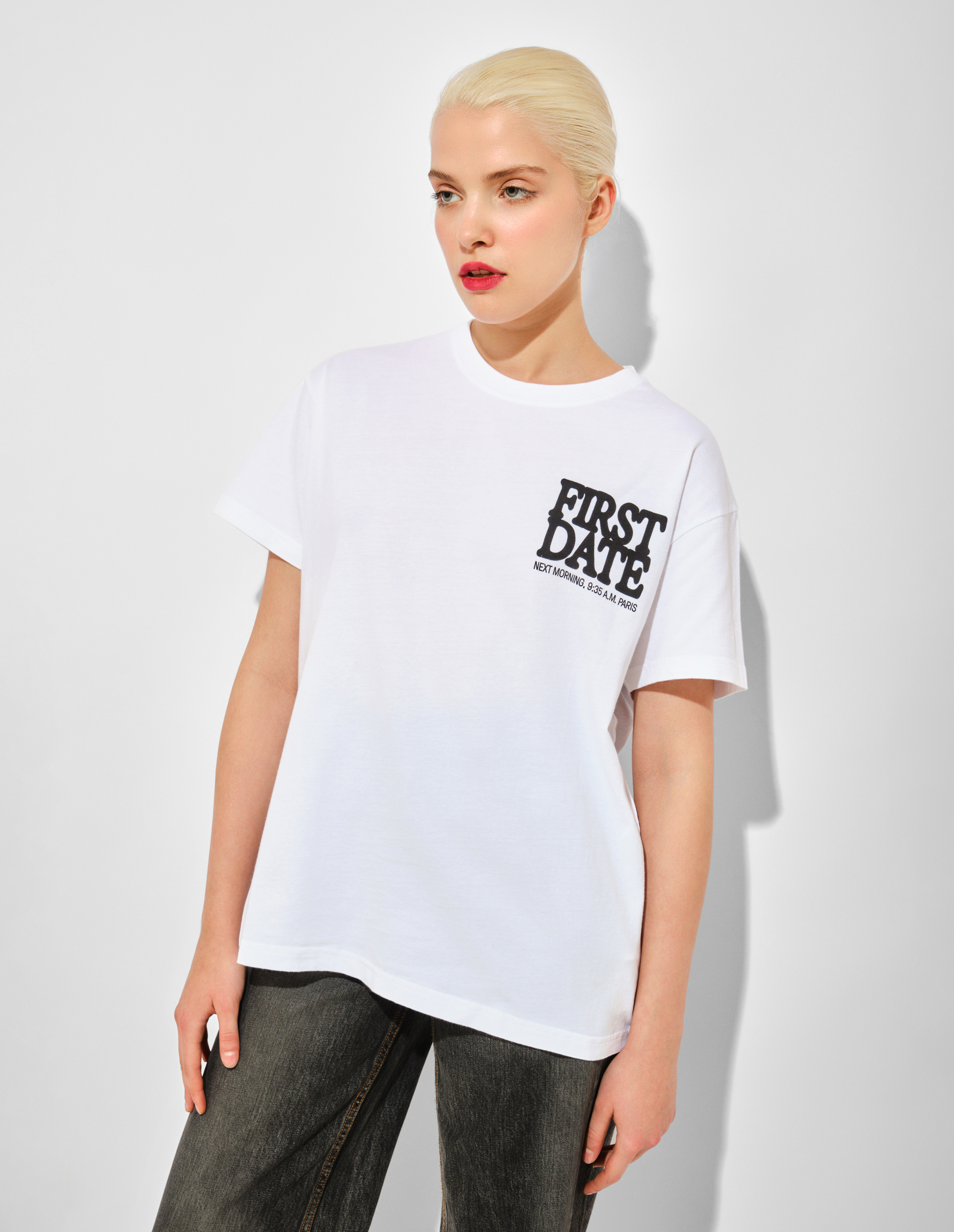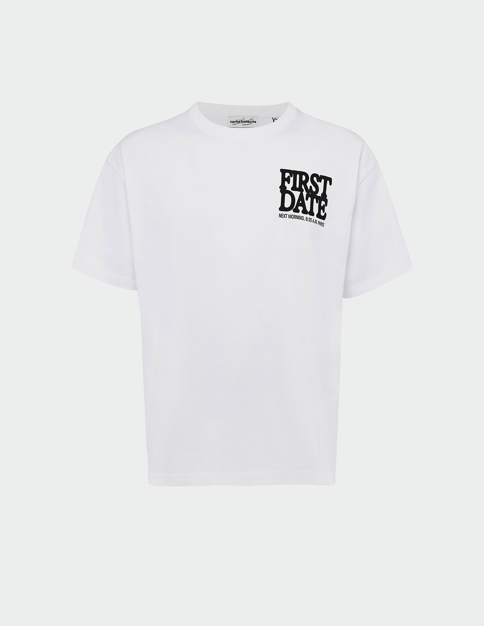 Это не просто футболка. Это носимое сообщение, отпечатанное на вашей груди и спине. Надпись Fisrt Date на груди и визуальное изображение самого первого свидания в принте на спине — это остроумная реплика в диалоге, который ведёт с миром Carne Bollente. Игра слов, где «горячо» отсылает и к названию бренда («Горячая плоть»), и к комплименту, выполнена в фирменном мультяшном стиле. Это фраза-настроение, фраза-приглашение, которую можно заявить миру или оставить как намёк за спиной. Безупречный белый хлопок и идеальная посадка делают дерзкий принт главным героем образа, превращая базовую вещь в маленький протест.