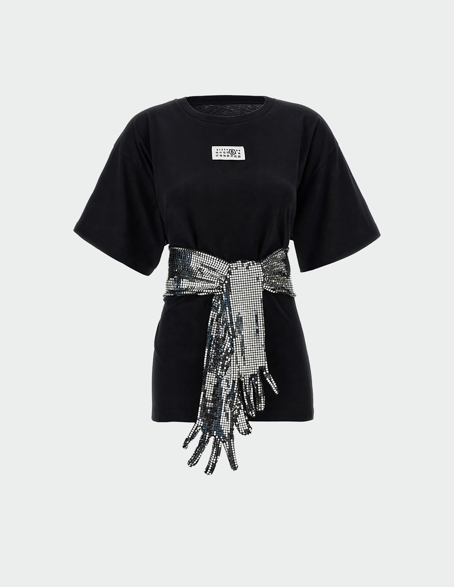 Черная футболка-трансформер с вшитыми блестящими перчатками