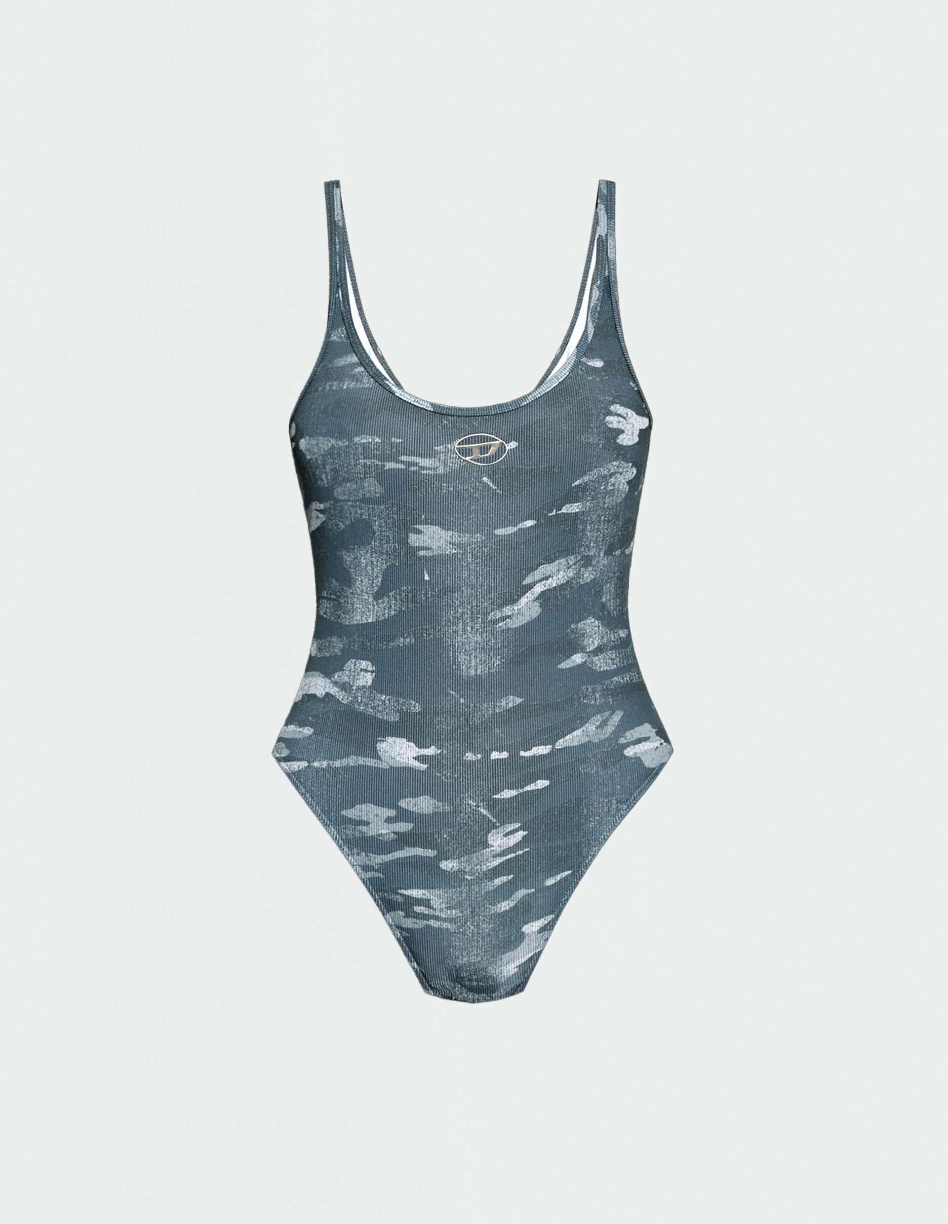 UT-BODY-UTLT — это слитный купальник, выполненный из переработанного эластичного материала с рельефной ребристой текстурой, обеспечивающей идеальную посадку и комфорт. Камуфляжный принт создает утилитарное настроение, а лаконичный вырез формирует спортивную эстетику. Прорезная металлическая пластина Oval D на груди добавляет дерзкий акцент, завершая концепцию функционального, но провокационного монокини.