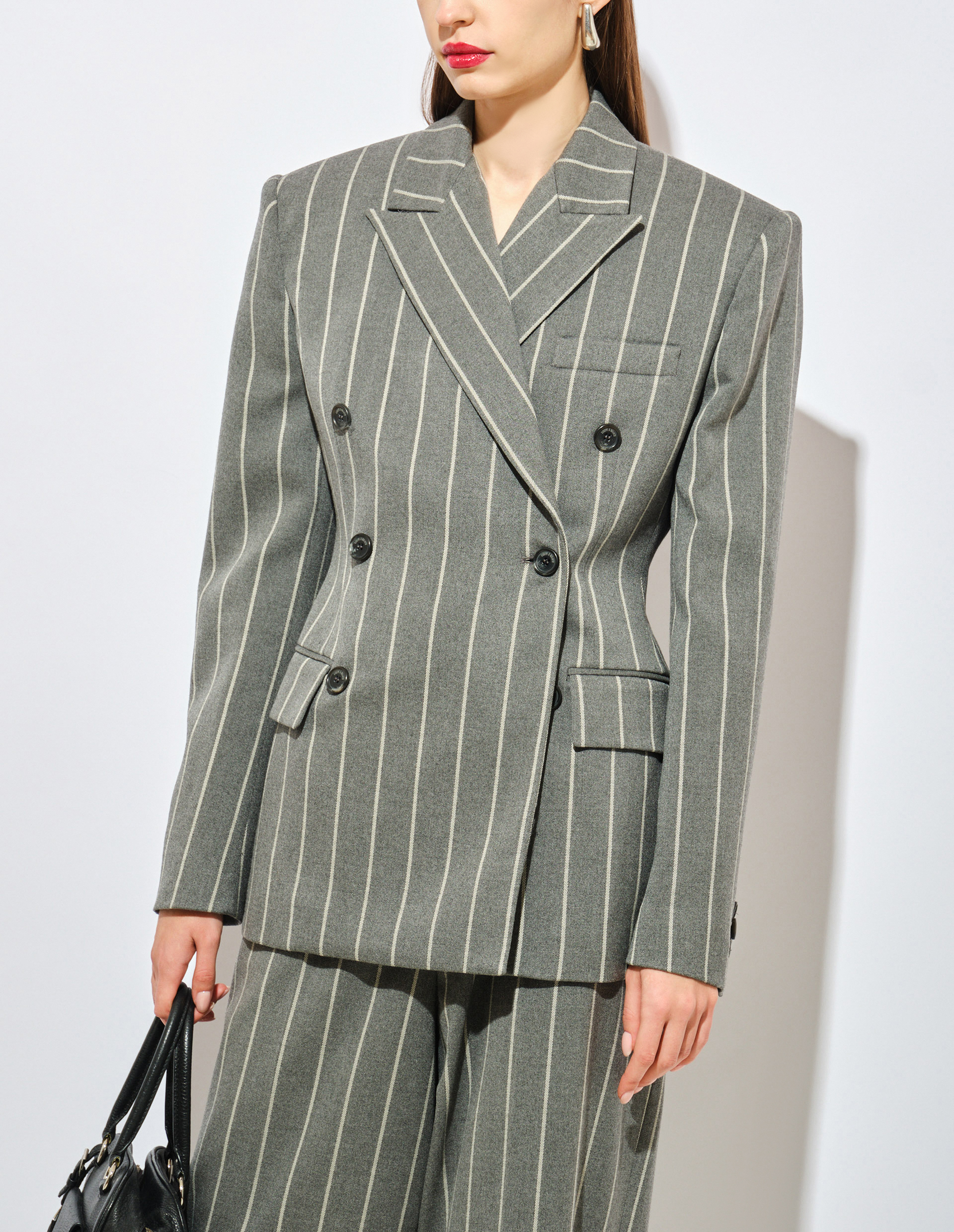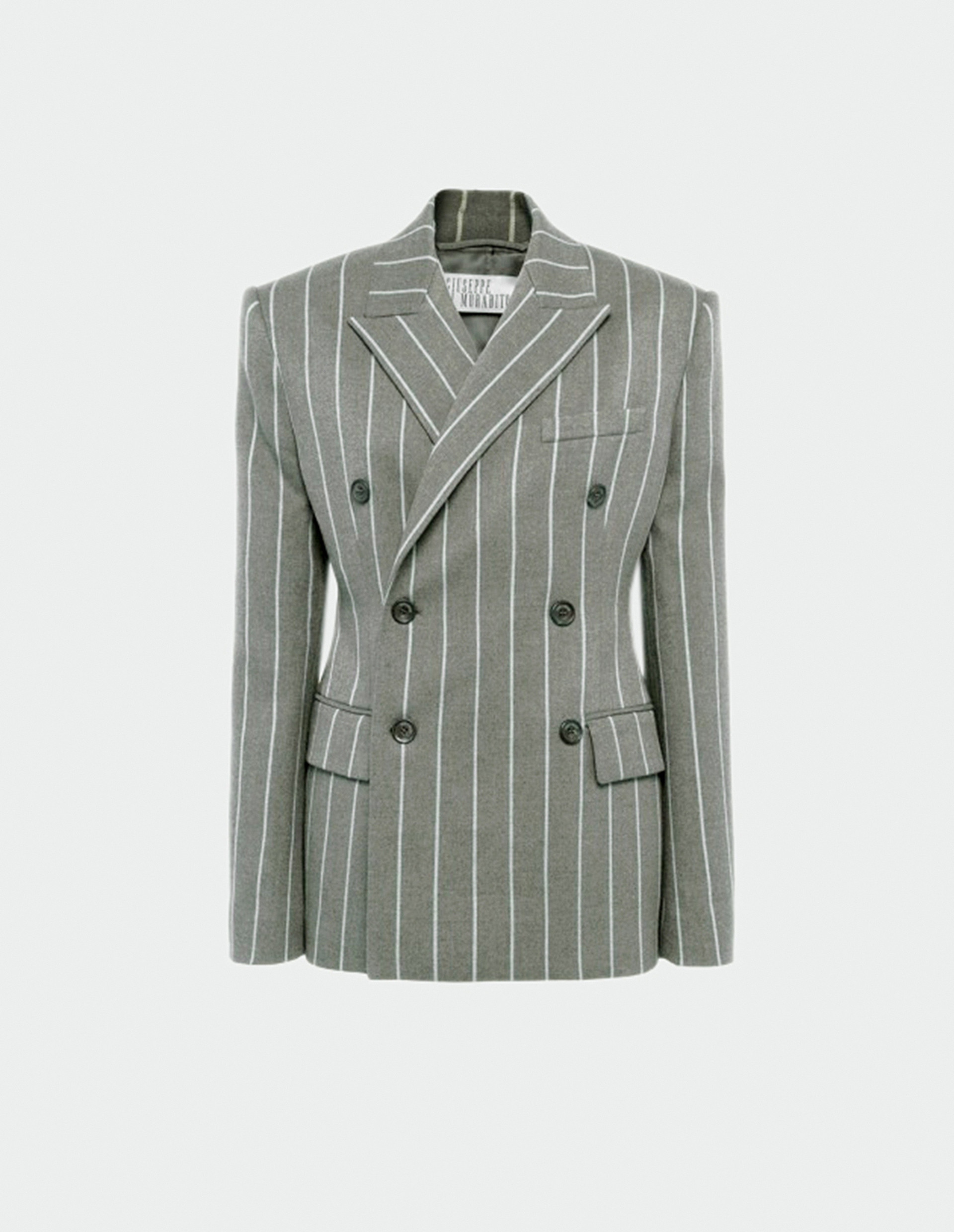 Двубортный серый пиджак в полоску