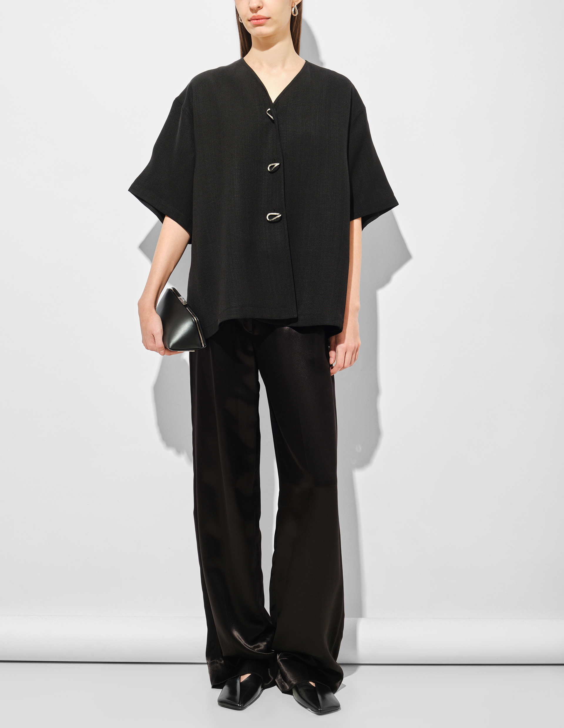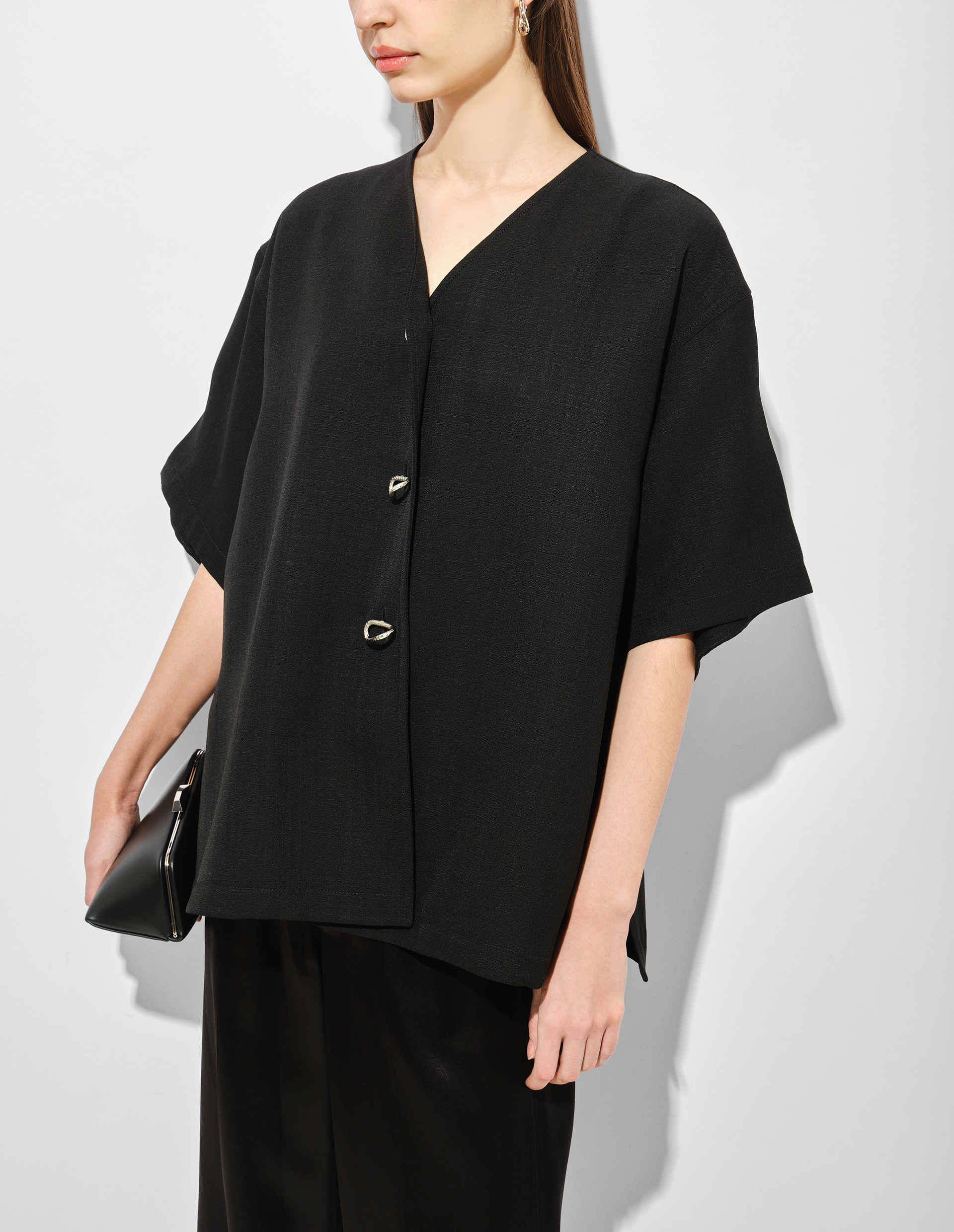 Черный шелковый жакет с пуговицами ручной работы