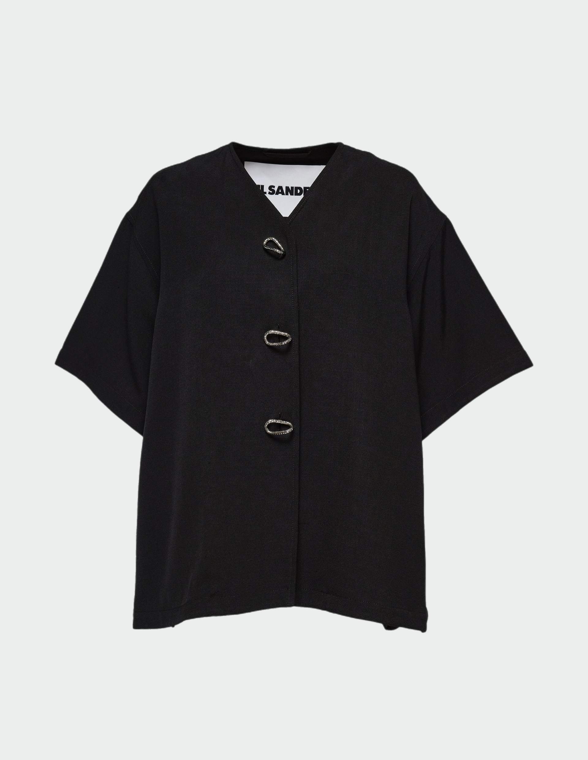Роскошнный жакет Jil Sander, олицетворяющая как мягкость, так и силу городской жизни. Его структурированная форма с чистыми линиями определяет стиль и функциональность. Модель изготовлена в Италии по традициям ремесленного искусства из вискозы и натурального шелка. Этот струящийся материал повысит ваш комфорт и улучшит тактильные ощущения, а также визуально обогатит образ. Свободный силуэт рубашки имеет короткие рукава, V-образный вырез, а также боковые разрезы с регулируемым martingale на застежке-кнопке. Серебристые пуговицы в форме изогнутых овалов выкованы вручную, подтверждая высочайшее мастерство люксового бренда.