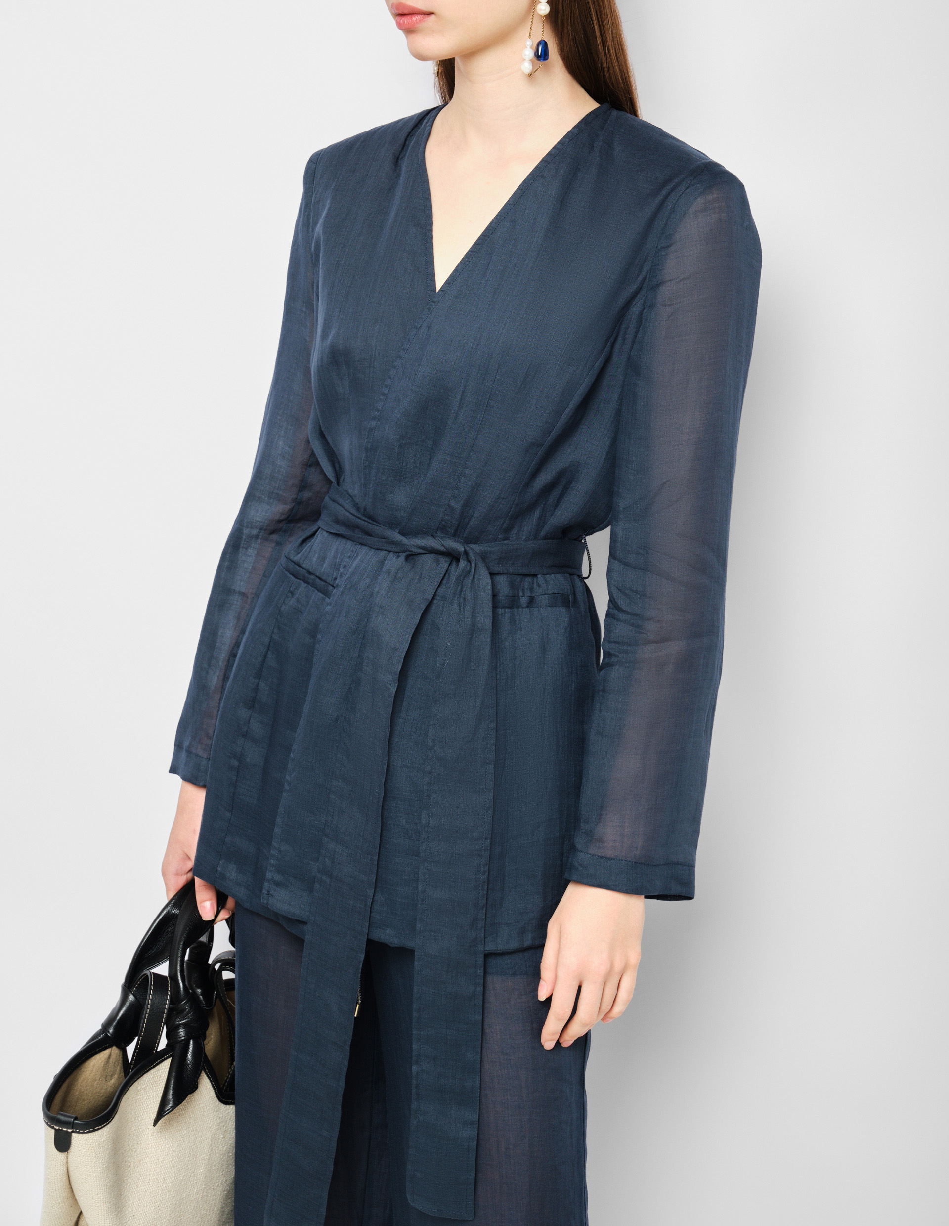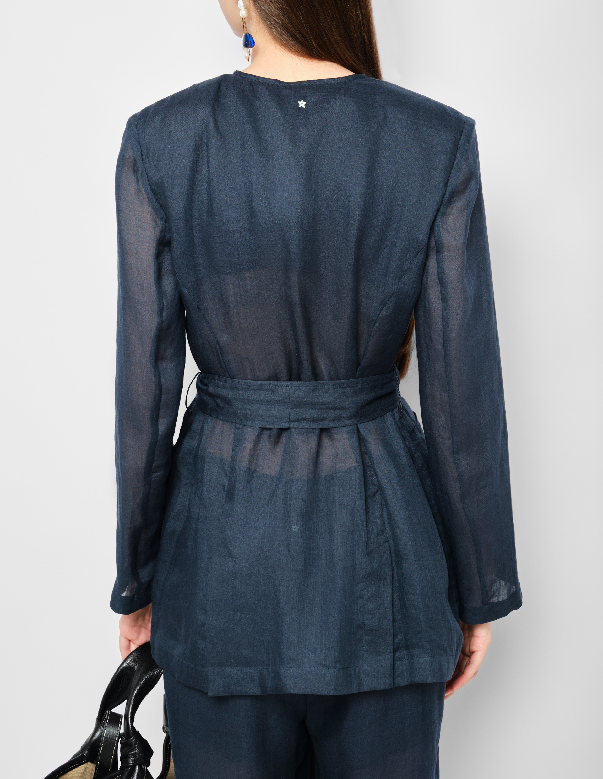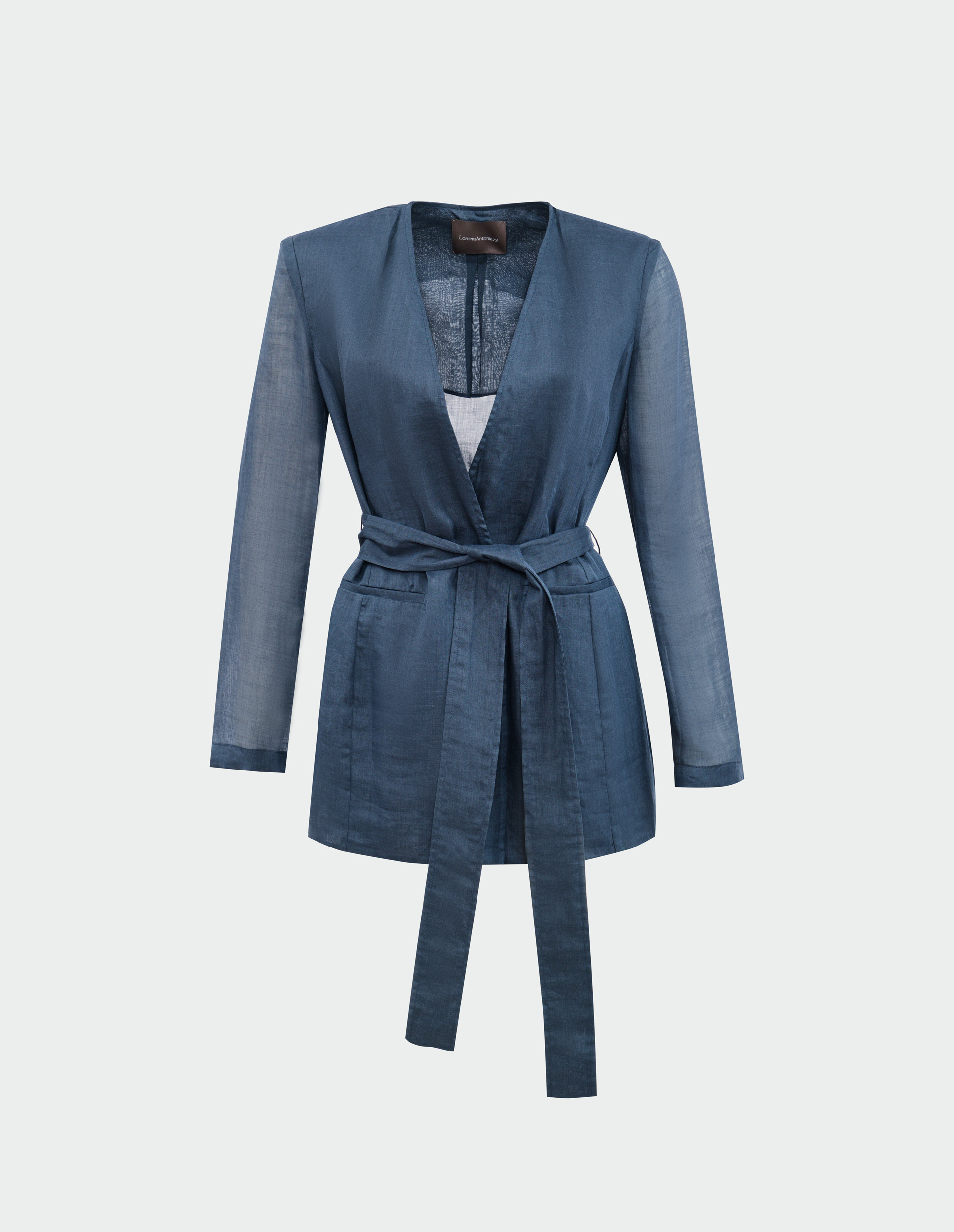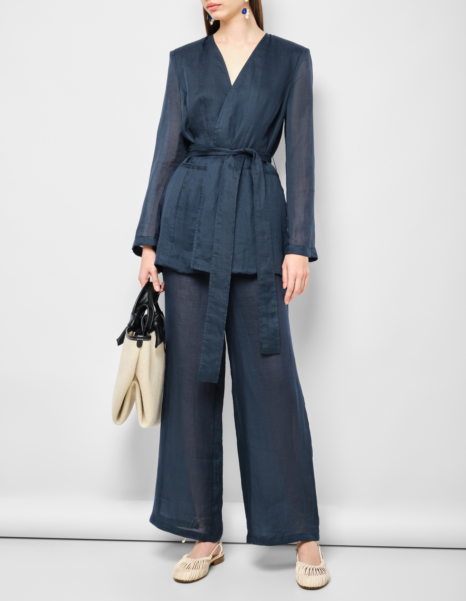 Этот однобортный жакет на запах от Lorena Antoniazzi в глубоком полуночном оттенке воплощает изысканный синтез традиционного мастерства и современных технологий. Созданный из благородного рами - древнего волокна с уникальными свойствами, он сочетает природную прочность с неожиданной легкостью, достигнутой благодаря инновационным методам обработки. Пояс мягко подчеркивает линию талии, добавляя современный акцент классическому силуэту. В каждой детали - от ручной обработки швов до идеально рассчитанного кроя - проявляется философия бренда, где многовековые традиции итальянского портновского искусства переосмыслены через призму актуального дизайна.