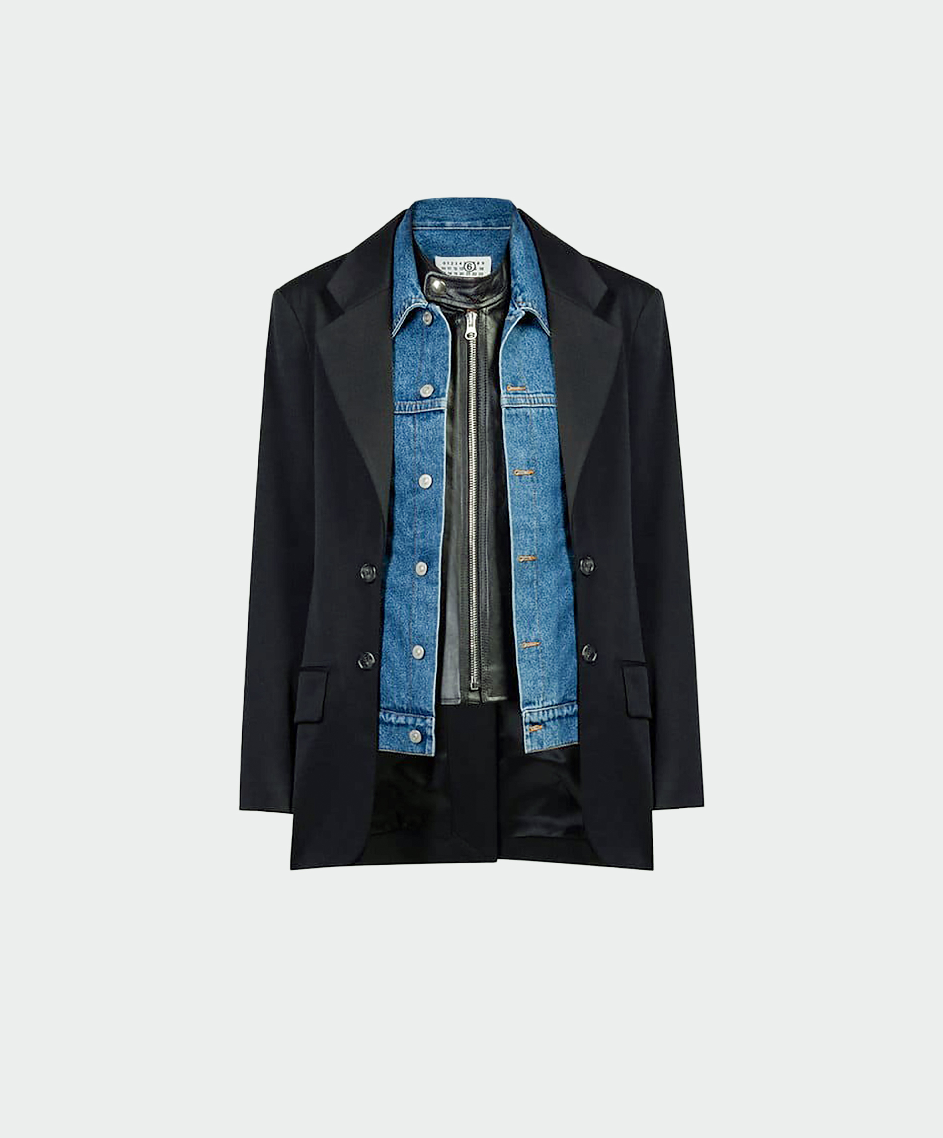 Эта модель стала примером нового минимализма, предложенного MM6 в коллеции FW25. Тайна, сложная визуальная тема со скрытыми гранями, деконструированным силуэтом и инновационным сочетанием материалов. Здесь пропорции меняются, прослеживается тихий подрывной элемент: шерстяной пиджак точного кроя словно надет поверх джинсовки, которая накинута на кожаную косуху. Каждый элемент словно приходит из другого мира, из параллельной реальности, приглашая увидеть скрытую красоту и текучесть моды, которая не ограничивается наблюдением, а становится диалогом между телом, пространством и душой.
