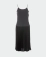 Темно-серое платье-миди можно назвать внесезонной моделью, так как оно органично как самостоятельный элемент в теплый сезон, так и в многослойном образе с рубашкой или гольфом для холодного периода. Платье-миди будто собрано из двух разных изделий: плиссированной темной юбки, которая не покидает лидирующих позиций по трендовости в этом сезоне, и серого топа на тонких бретелях, выигрышно демонстрирующие ключицы. Уникальное изделие скромно украшено знаковым цифровым рядом линейки MM6 модного дома Maison Margiela в тон платья.