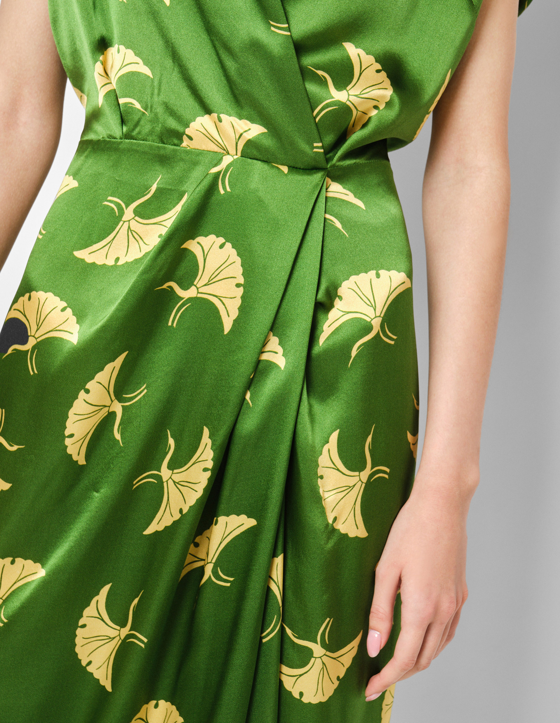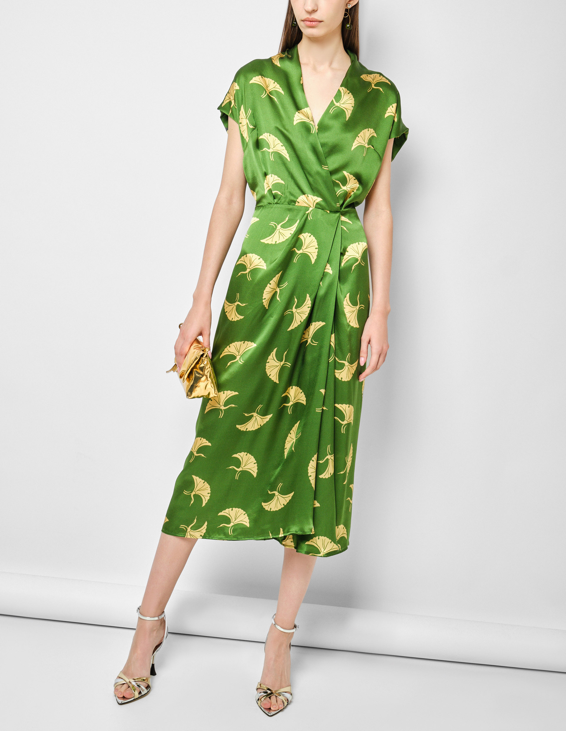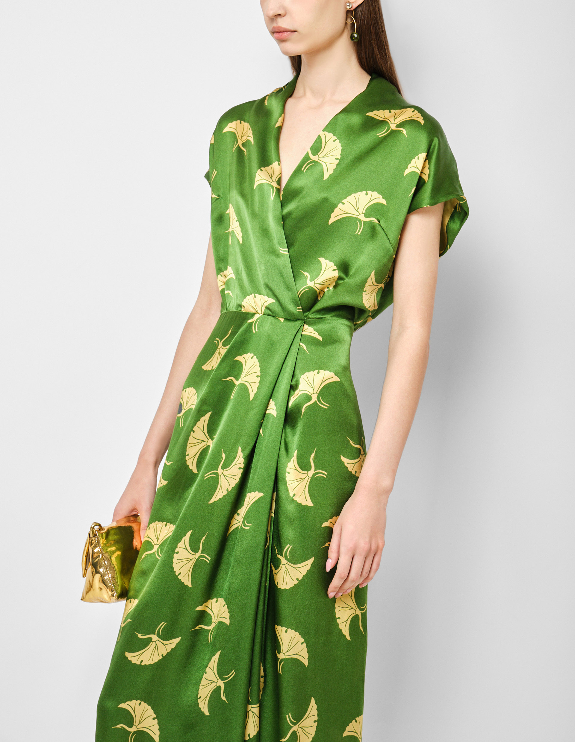Зеленое шелковое платье DILIAN с золотым рисунком