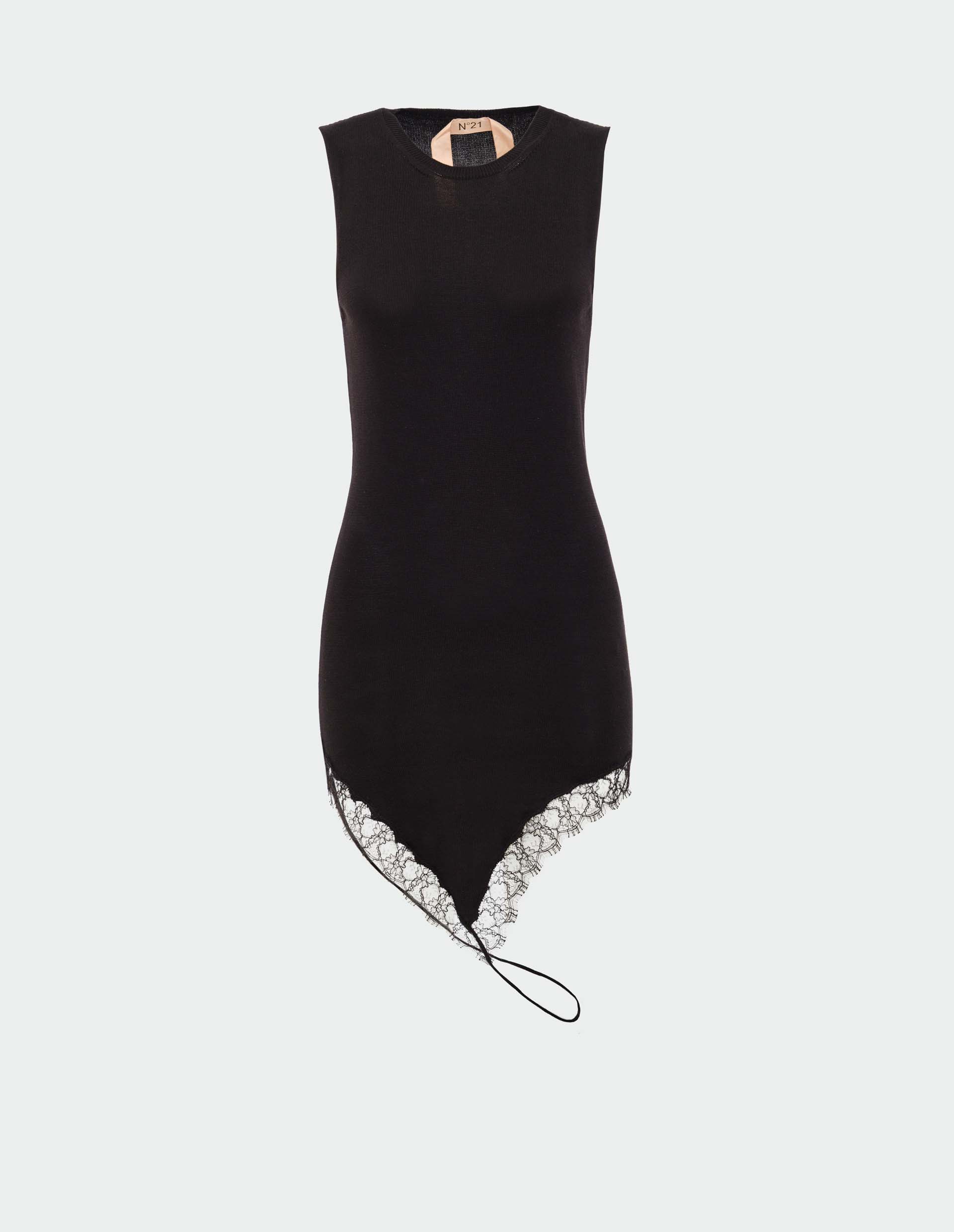 Стремясь к мягким контрастам, Alessandro Dell'Acqua умело создает эксклюзивные вещи, которые привлекают внимание современных женщин. Например, короткое платье, асимметричный низ которого отделан кружевом и дополнен тонкой петлей, обхватывающей бедро. Так появляется некая эксцентричность в лаконичной, на первый взгляд, модели. В этом платье вы можете выглядеть сексуально, круто и независимо. Как говорит сам дизайнер: "Сегодня это подвиг, но бренд № 21 доказывает, что это все еще возможно."