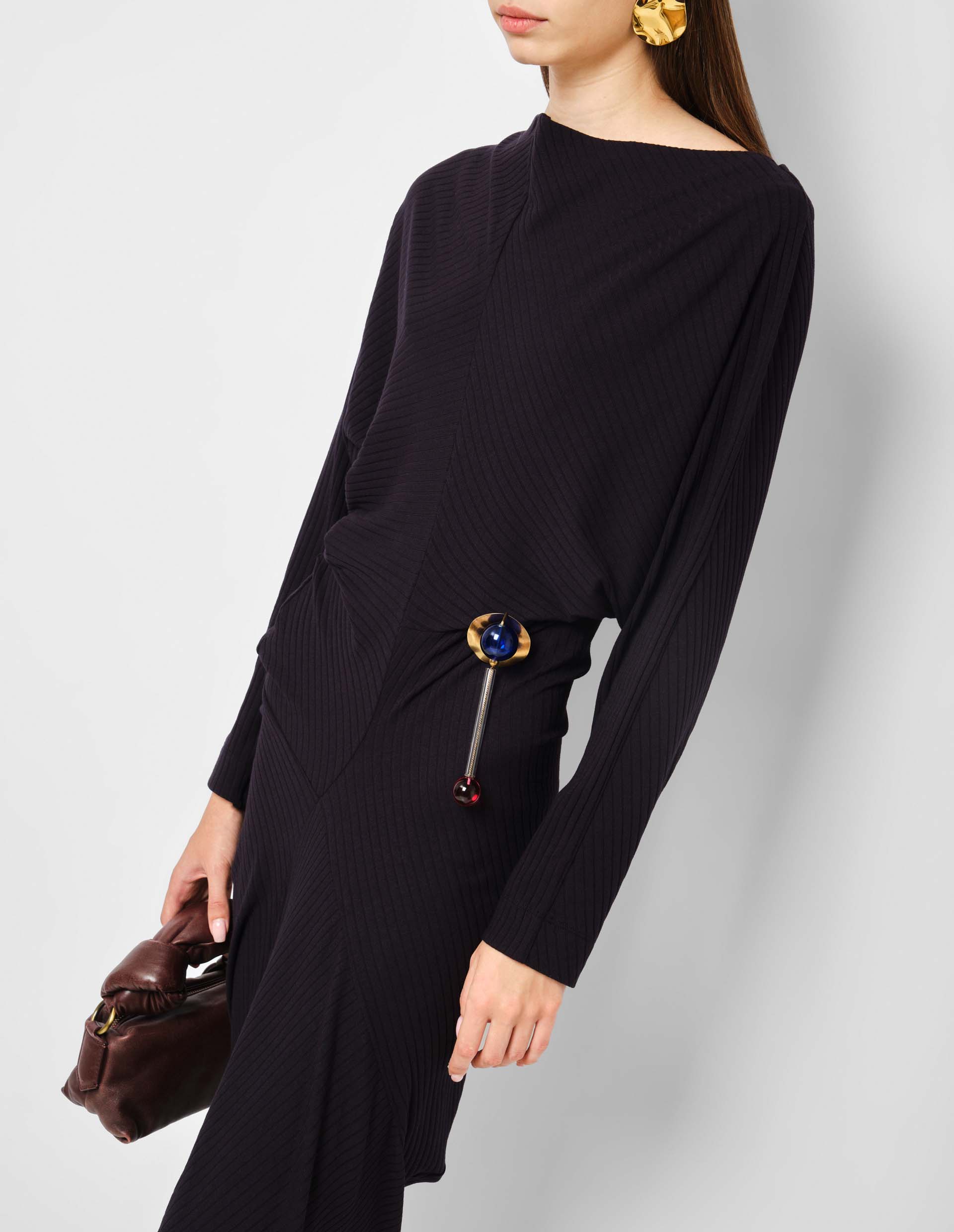 Воплощением современной элегантности стало платье Ribbed Asymmetrical Dress, созданное одним из самых влиятельных дизайнеров мира Dries Van Noten. Эта изысканная модель в благородном темно-синем цвете является свидетельством утонченного стиля и непревзойденного мастерства. Асимметричный крой, дополненный сложными деталями в виде драпировки, тонких швов, формирует шикарный, современный силуэт. Изготовленное из ребристого материала, платье отличается мягкой и эластичной текстурой, обеспечивающей безупречную посадку и исключительный комфорт. Гармонично сочетая в себе элегантность и очарование, оно идеально подойдет для самых разнообразных событий.