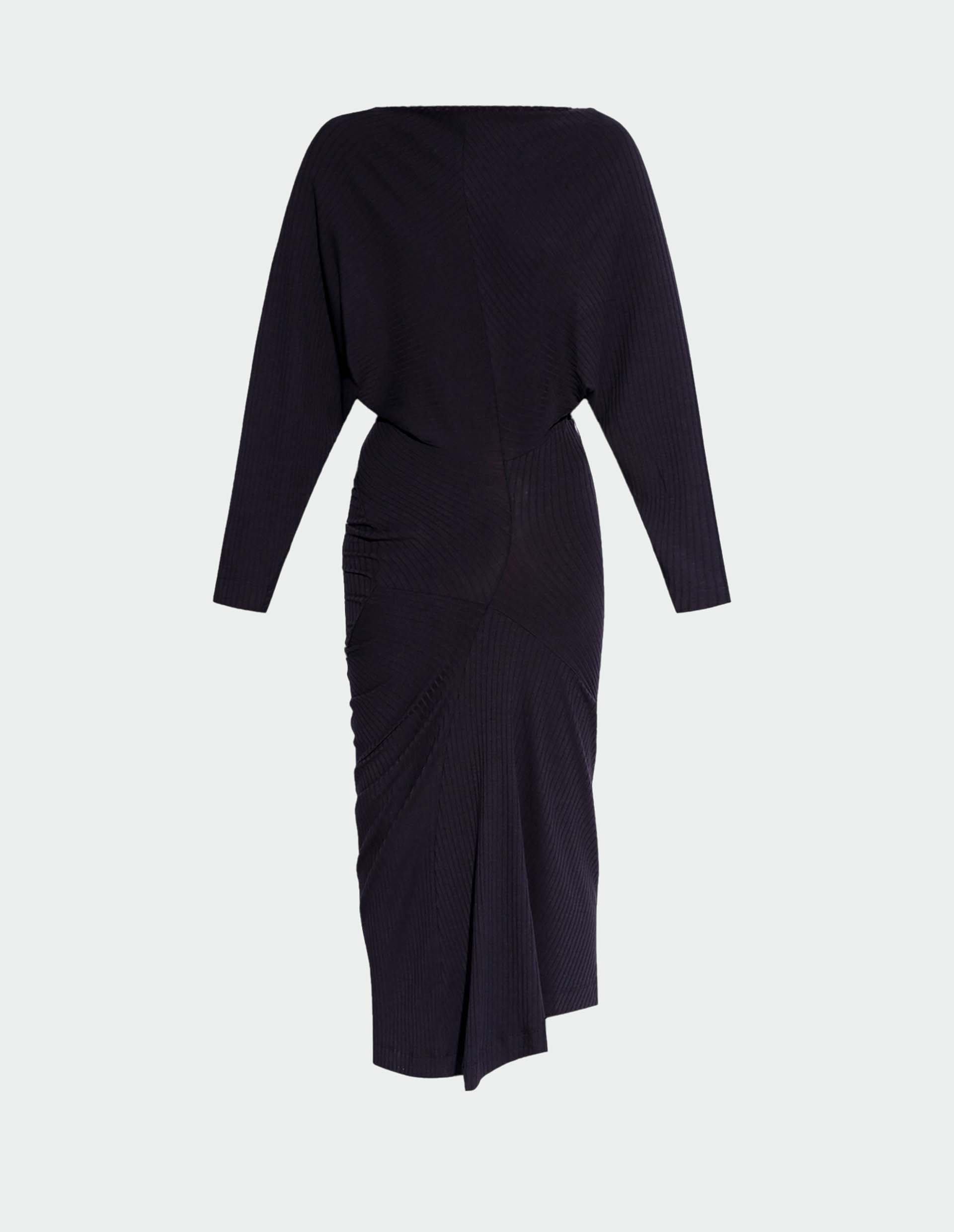 Темно-синее асимметричное платье с драпировкой