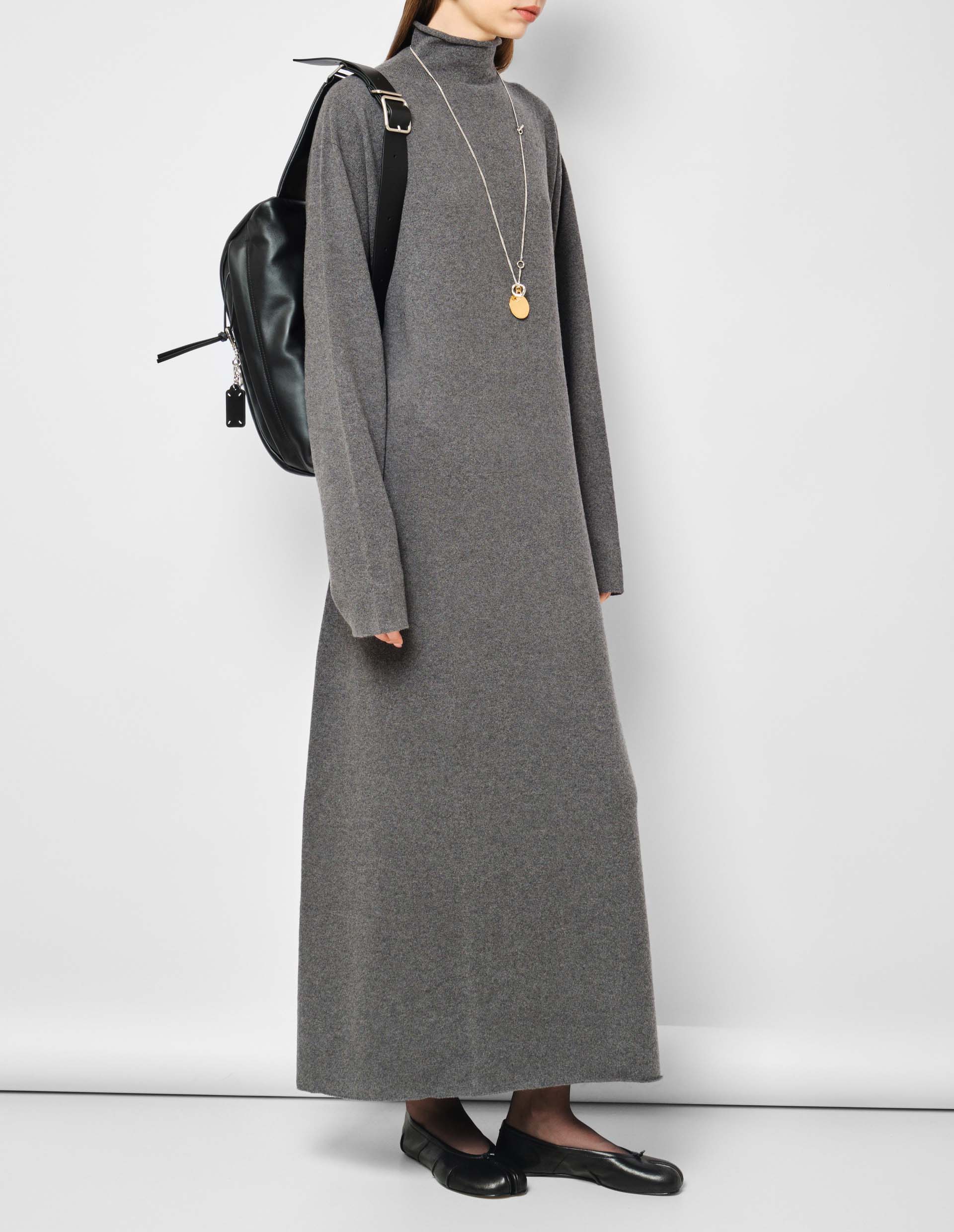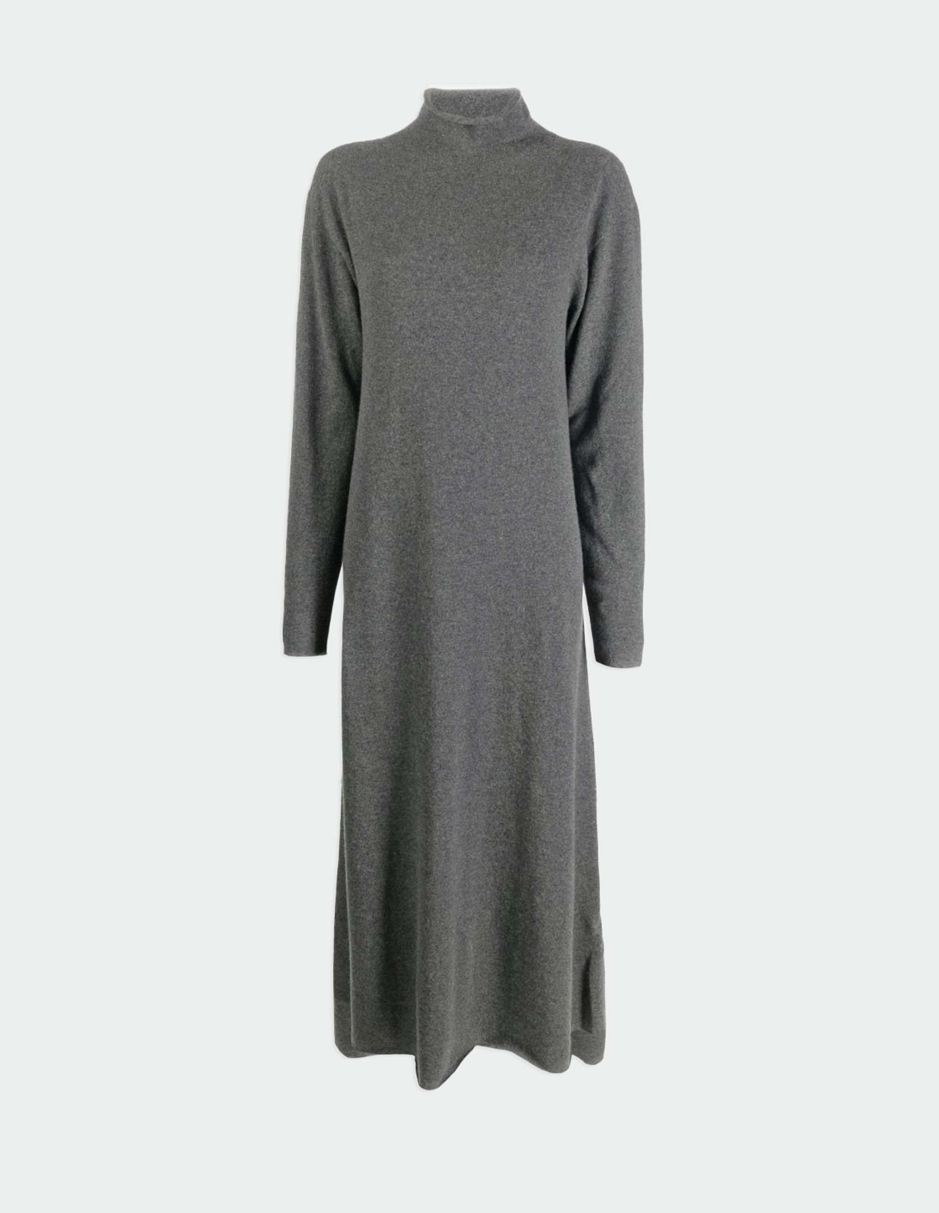 Серое кашемировое платье макси с высоким воротником