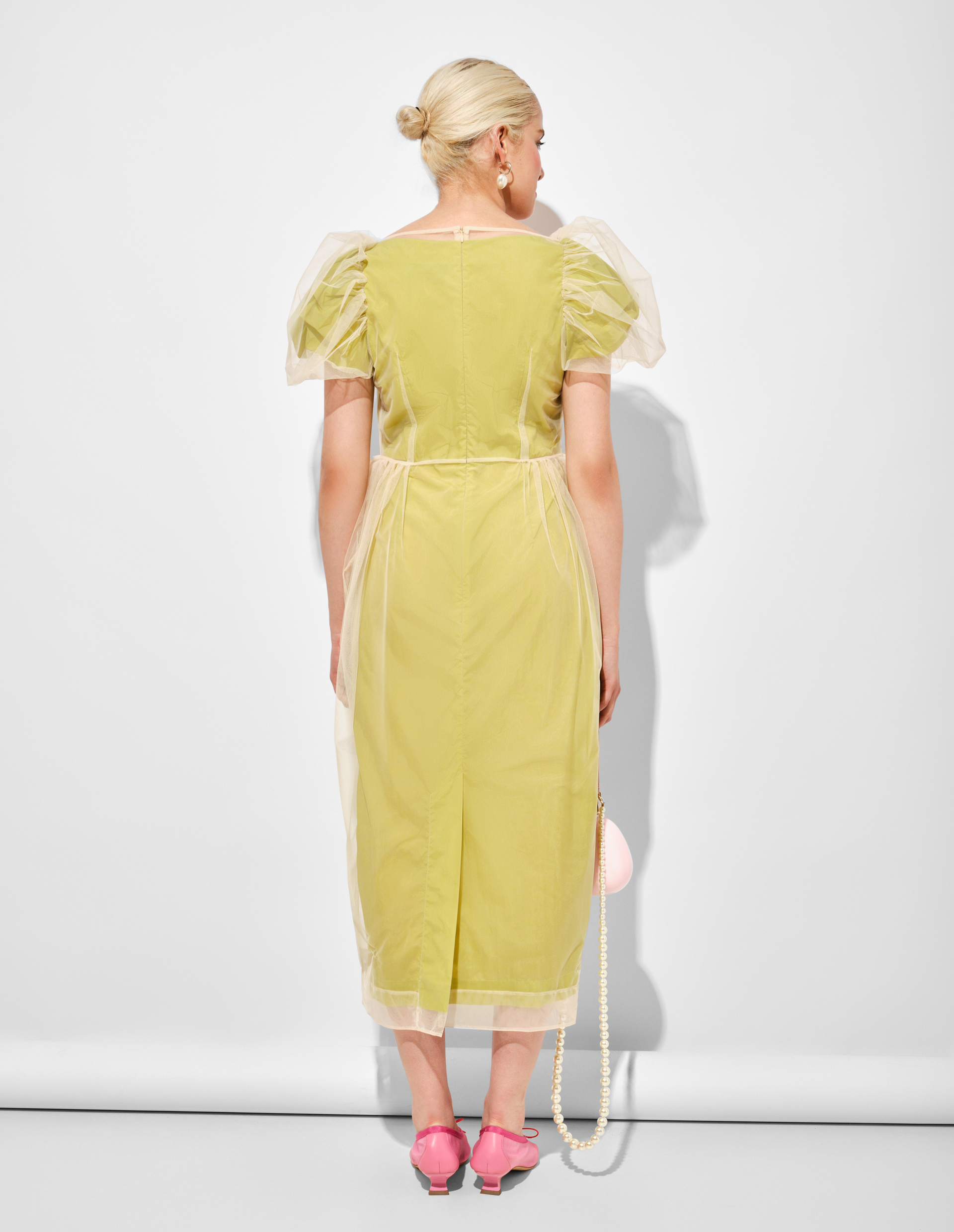Застежка-молния на спине добавляет практичности, а встроенный слой тюля подчеркивает многослойность замысла — как и в спектаклях Бауш, здесь все продумано до мелочей.