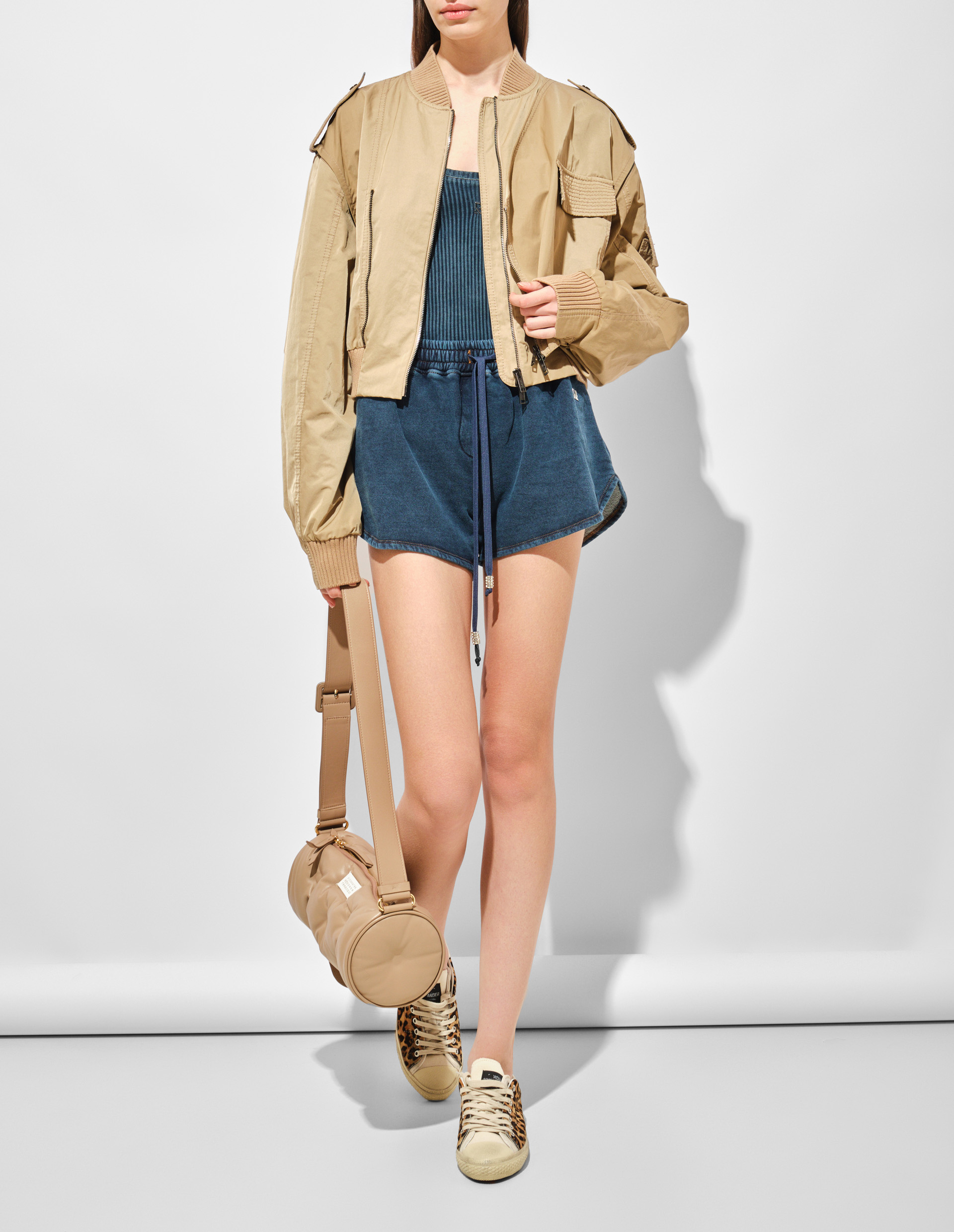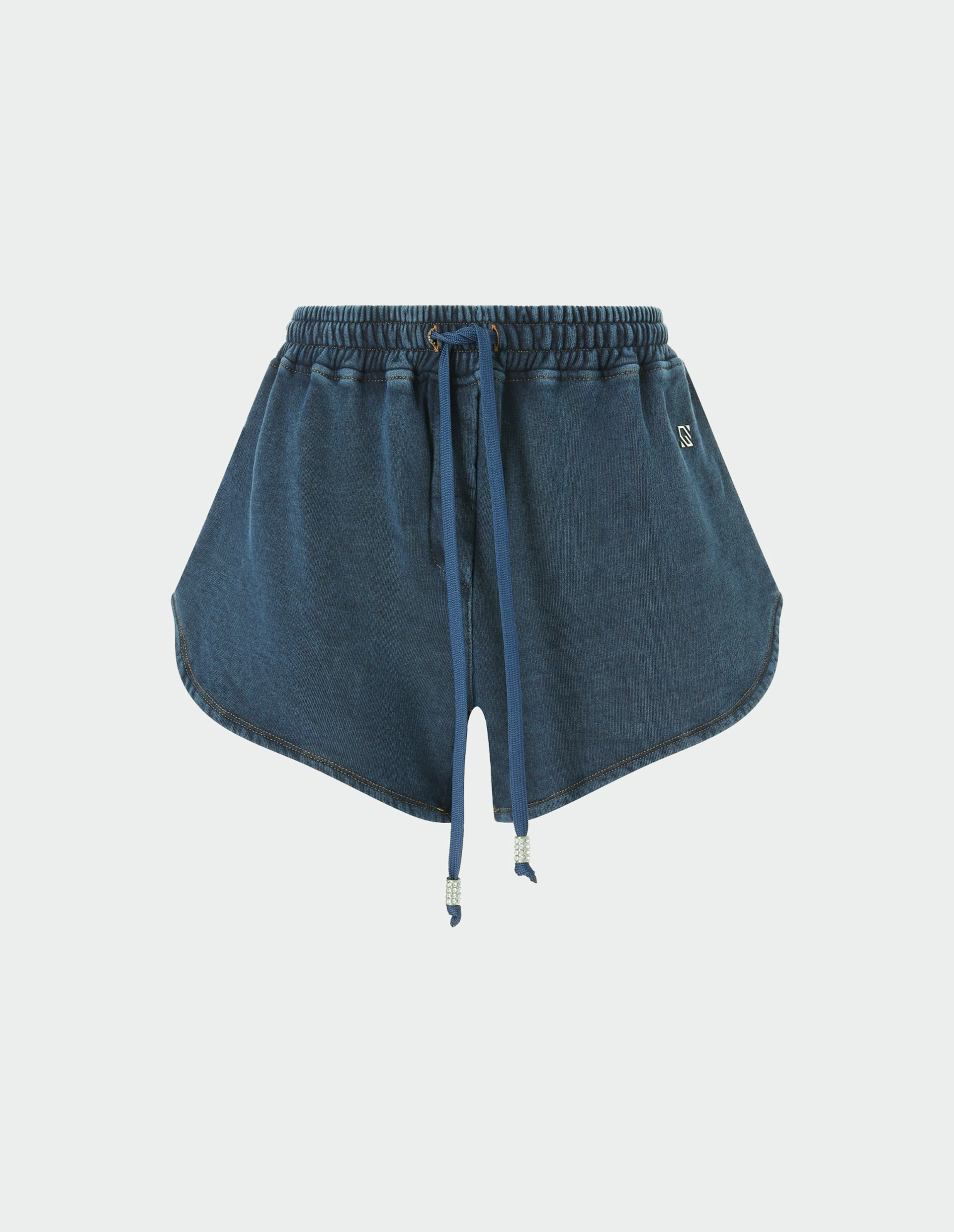 Мини-шорты Giuseppe Di Morabito — удобная модель из эластичной ткани с мягким поясом на завязках. По бокам — стильные закругленные вырезы, добавляющие динамики силуэту и подчеркивающие спортивную эстетику. Особый шик вносят эглеты со стразами, деликатно сверкающие при движении. Глубокий синий цвет сохраняет универсальность, а продуманные детали напоминают о принадлежности к итальянскому бренду.