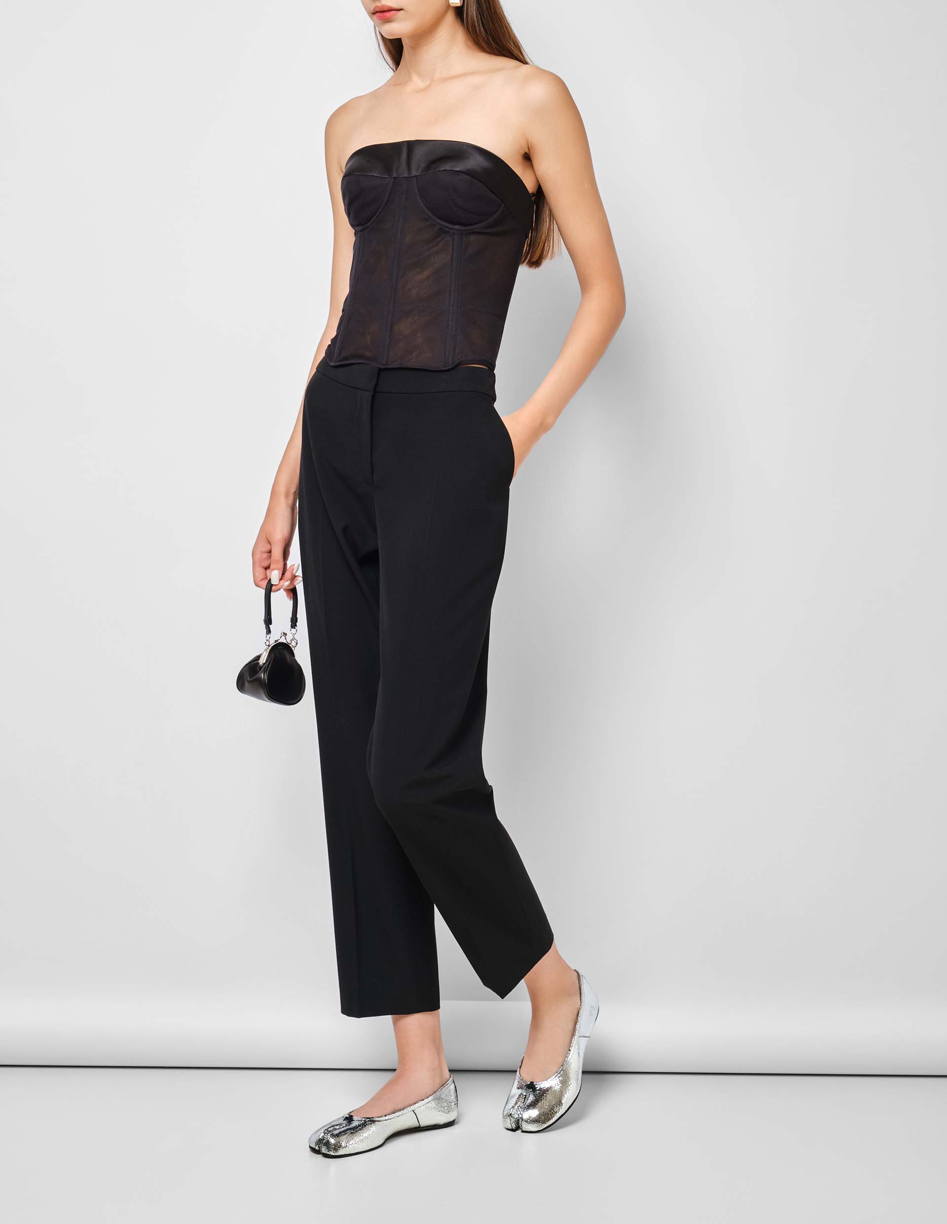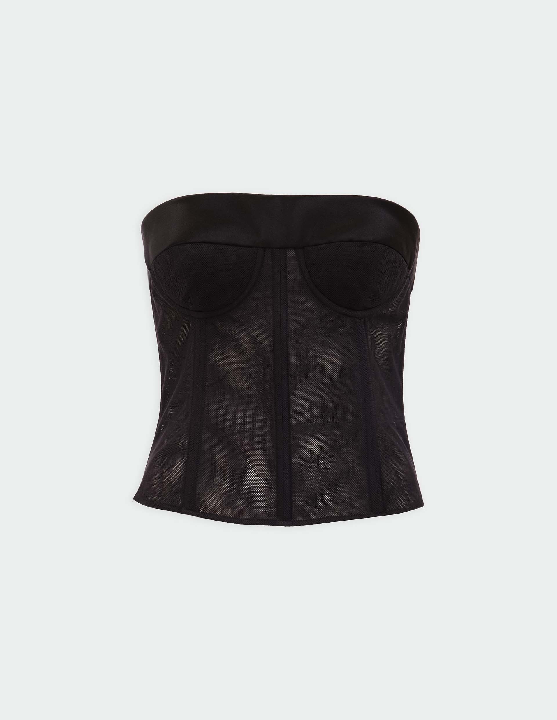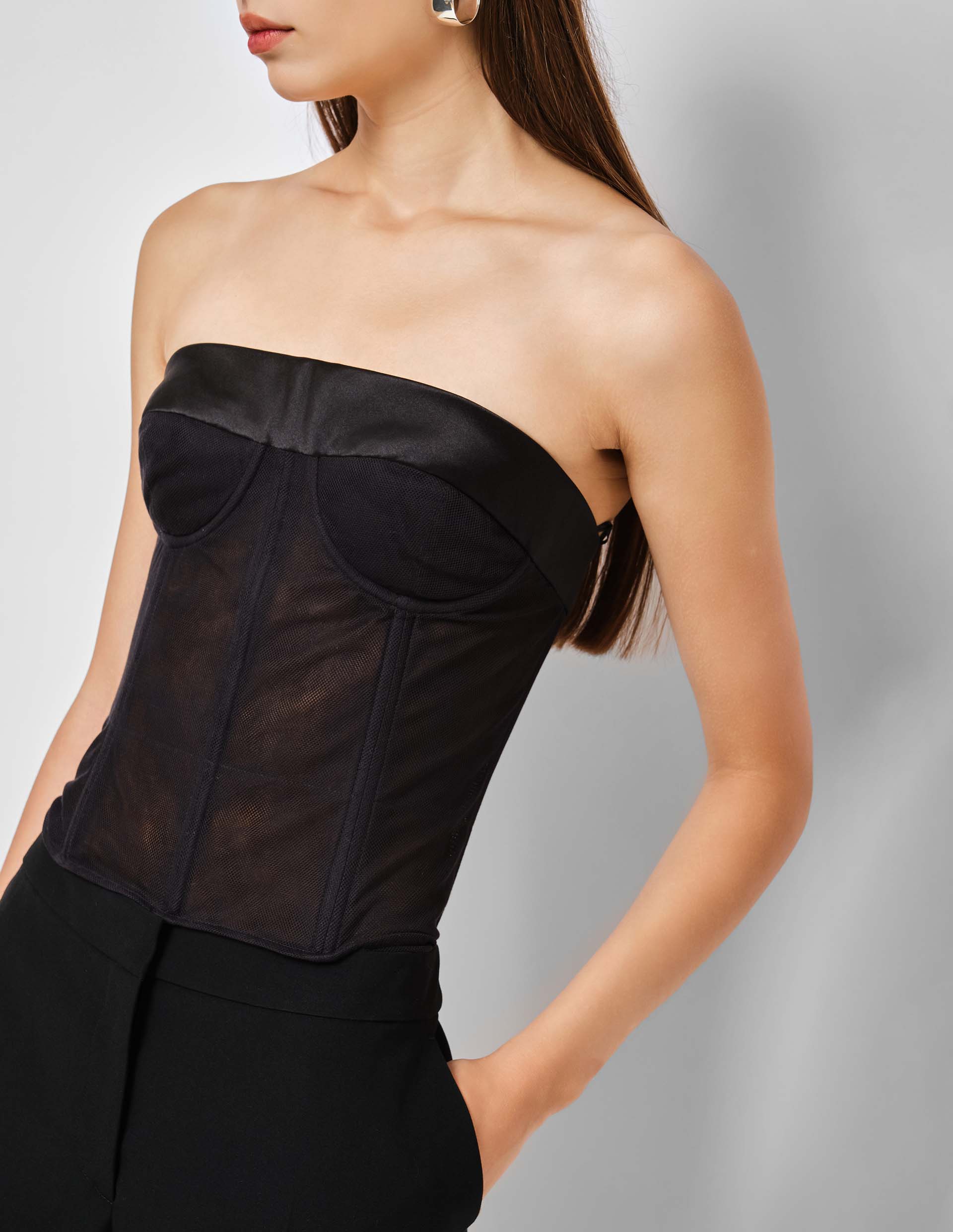 Черный топ-корсет подиумной коллекции с сетчатой вставкой