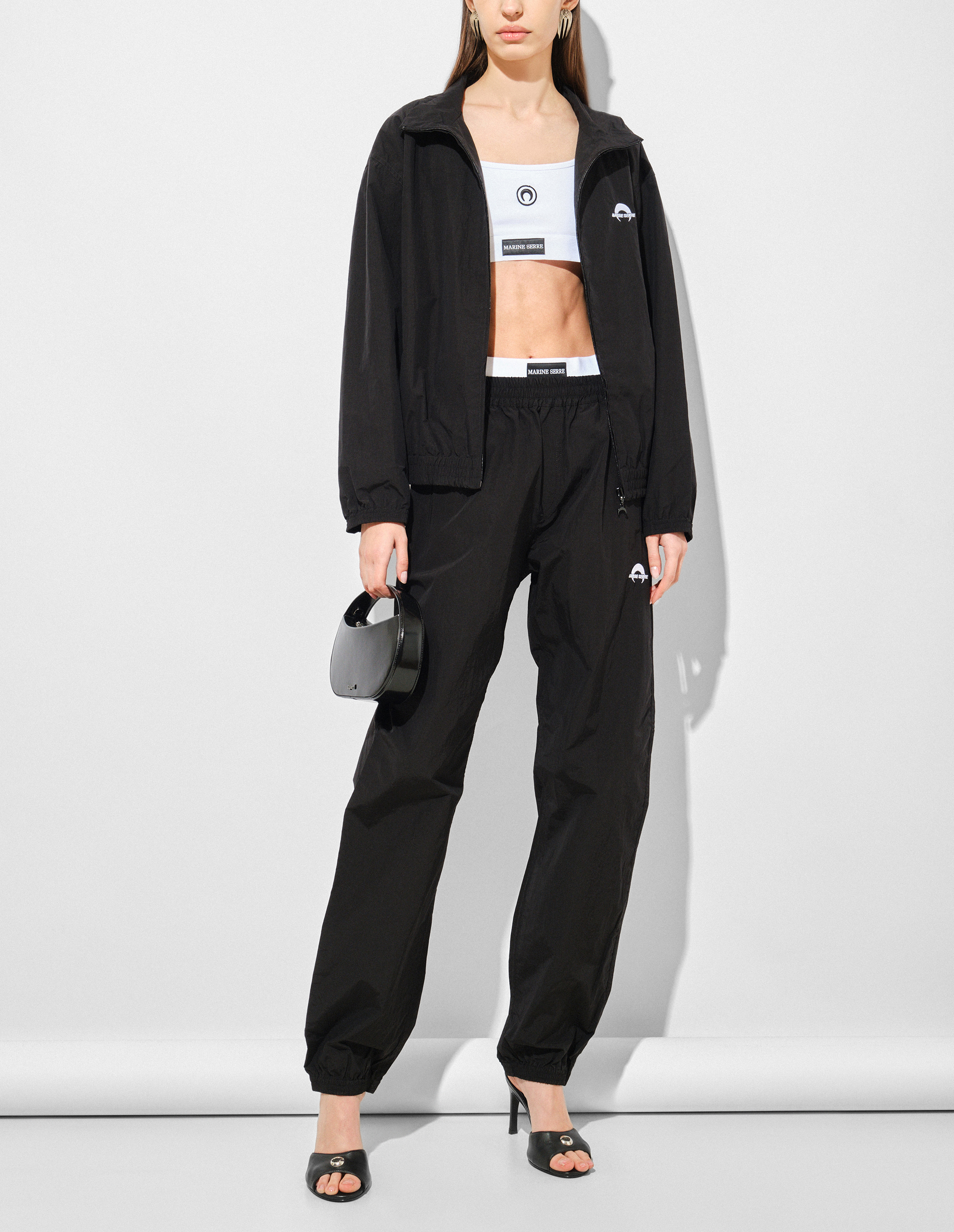 Главный мотив Marine Serre — лунный принт, покрывающий легендарные леггинсы, комбинезоны, топы и водолазки, создающие эффект second skin. Дизайнер восхищается химеризмом спутника Земли и тем, как он представлен — от лунных фаз до древних богинь, исламской иконографии и культового аниме "Sailor Moon". Полумесяц — это вечный узор, глубоко духовный символ, означающий женственность, текучесть, возрождение.