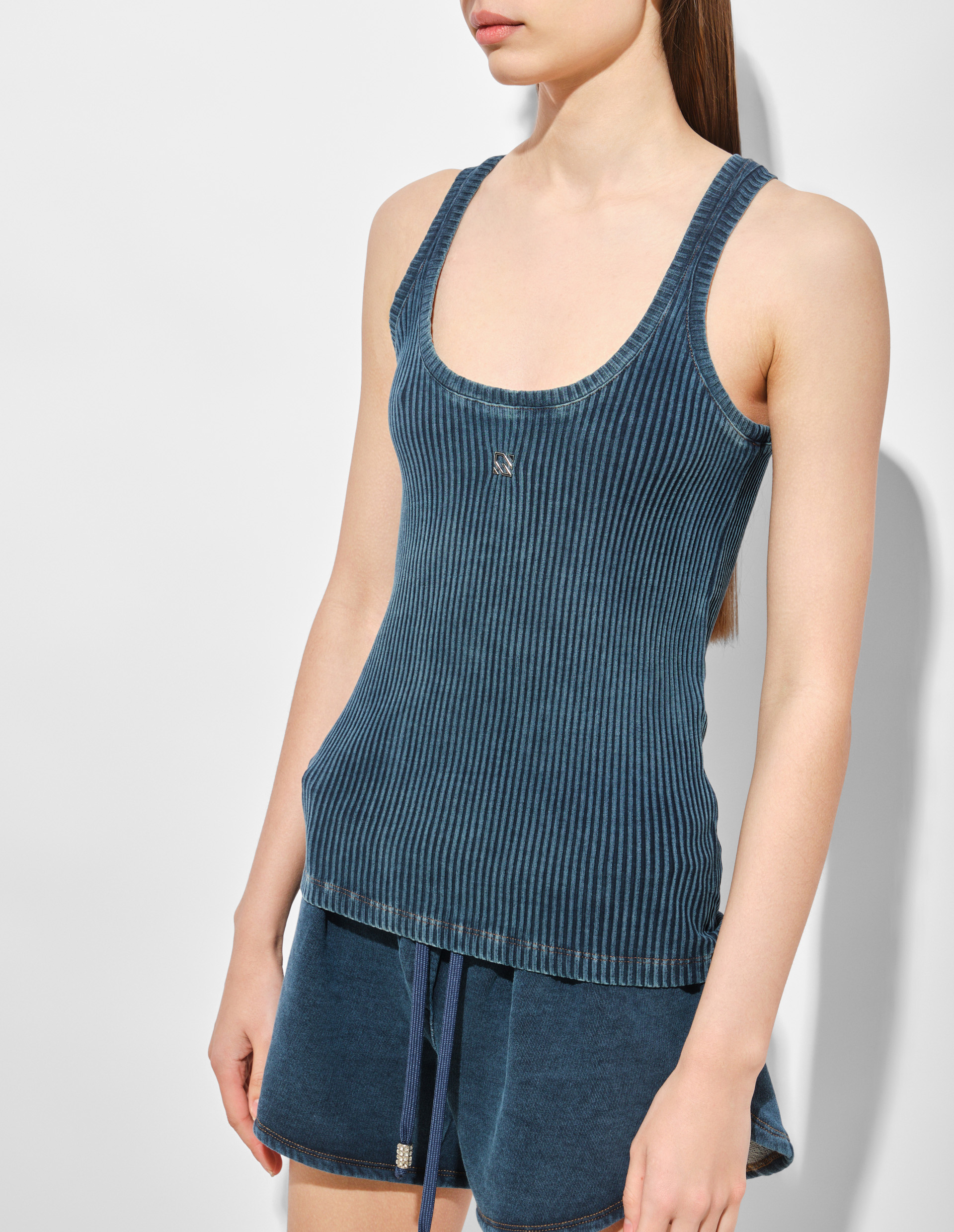 Синий tank топ в рубчик
