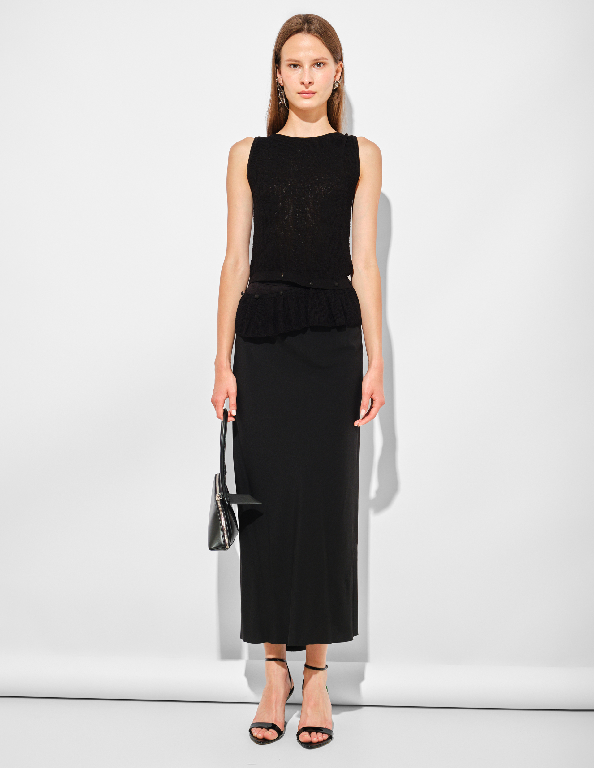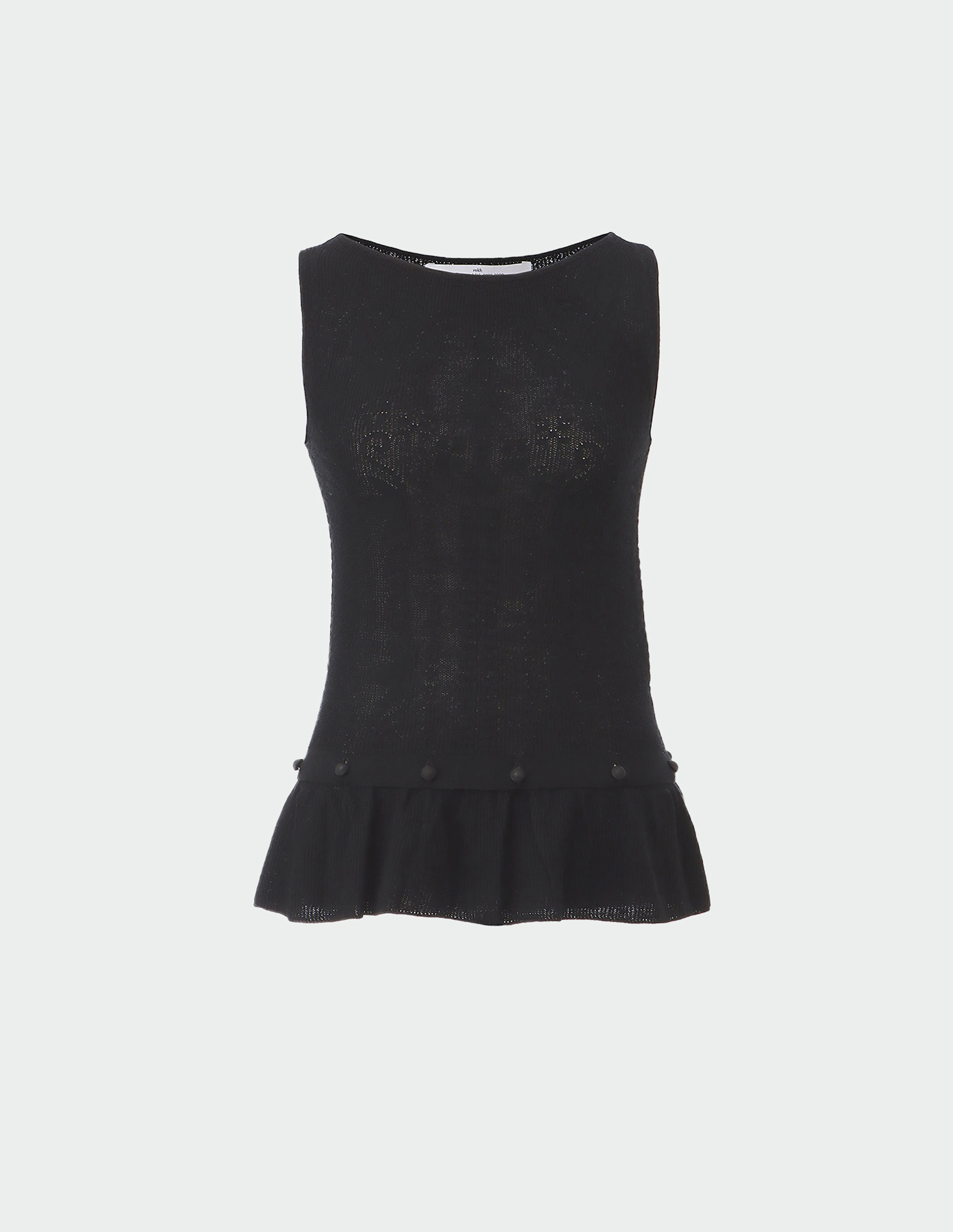 Черный топ без рукавов со съемной баской¶Flower Punching Sleeveless Top