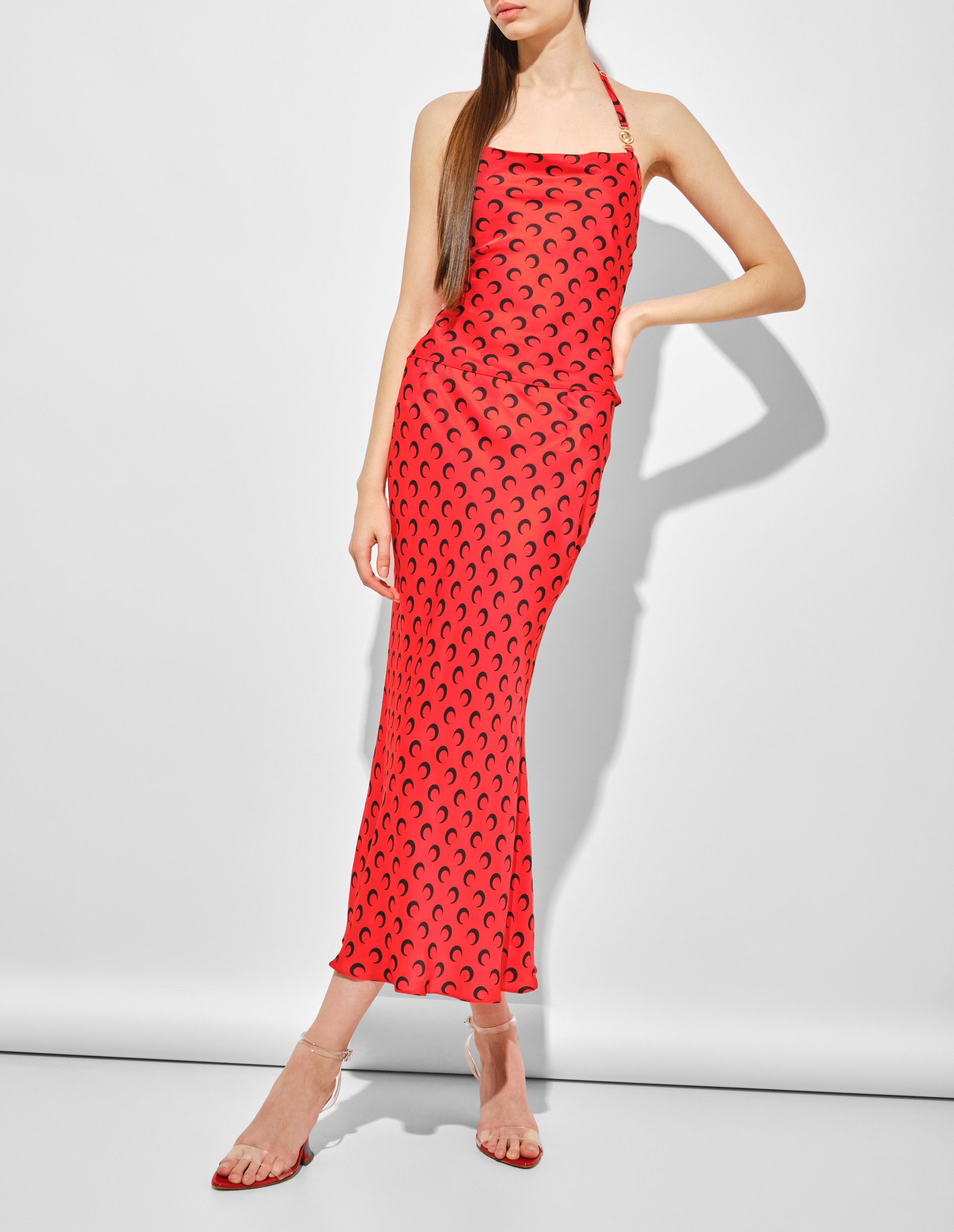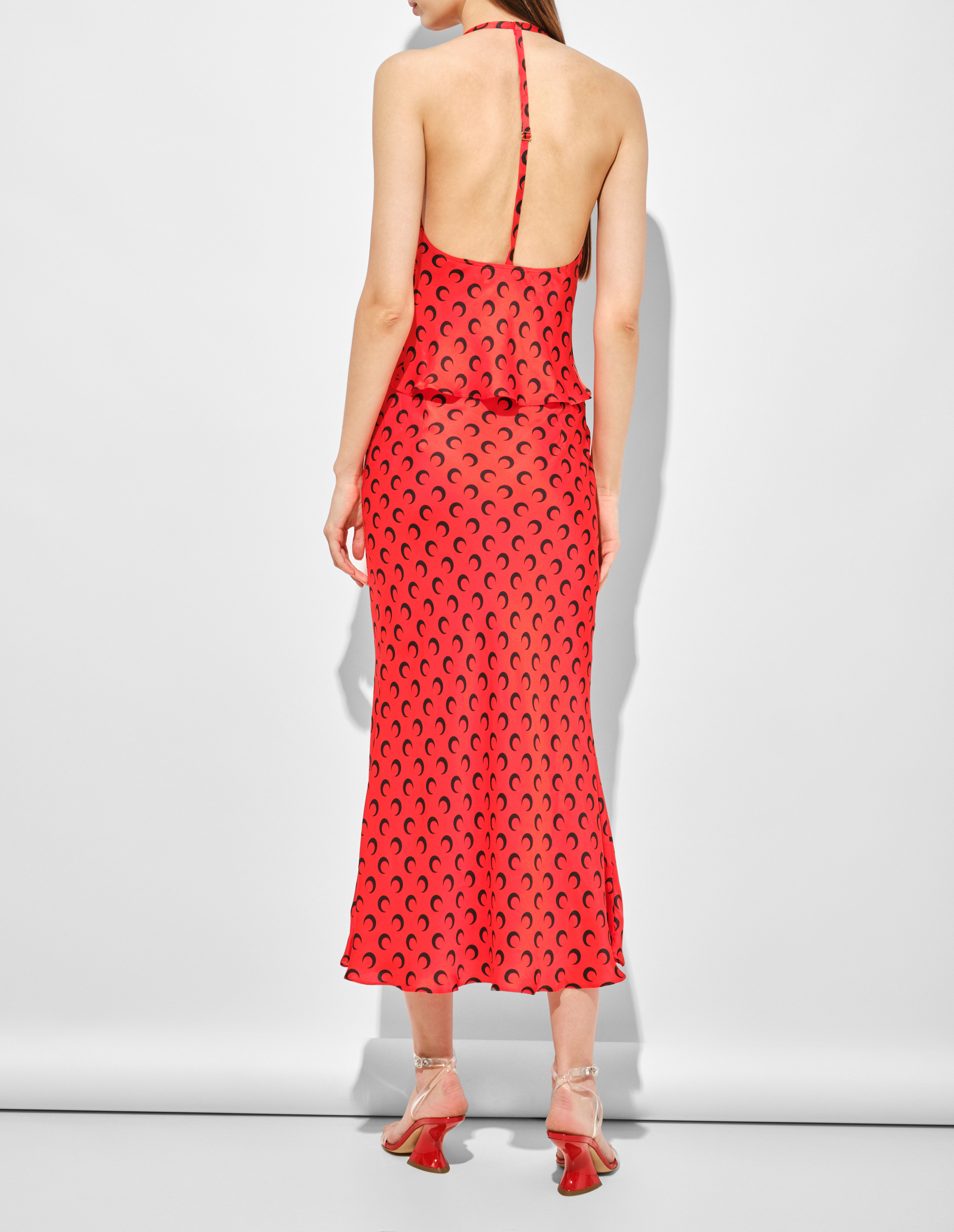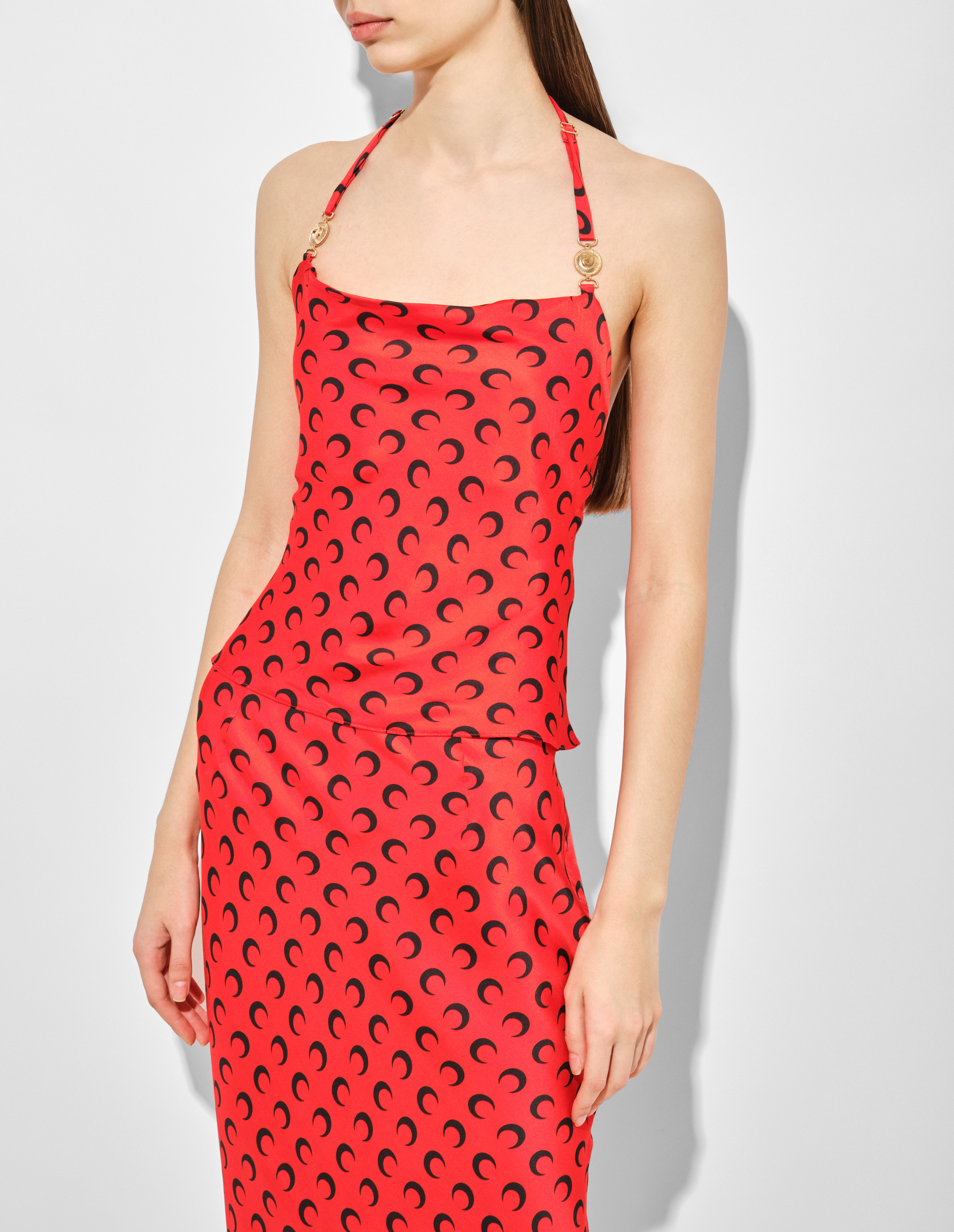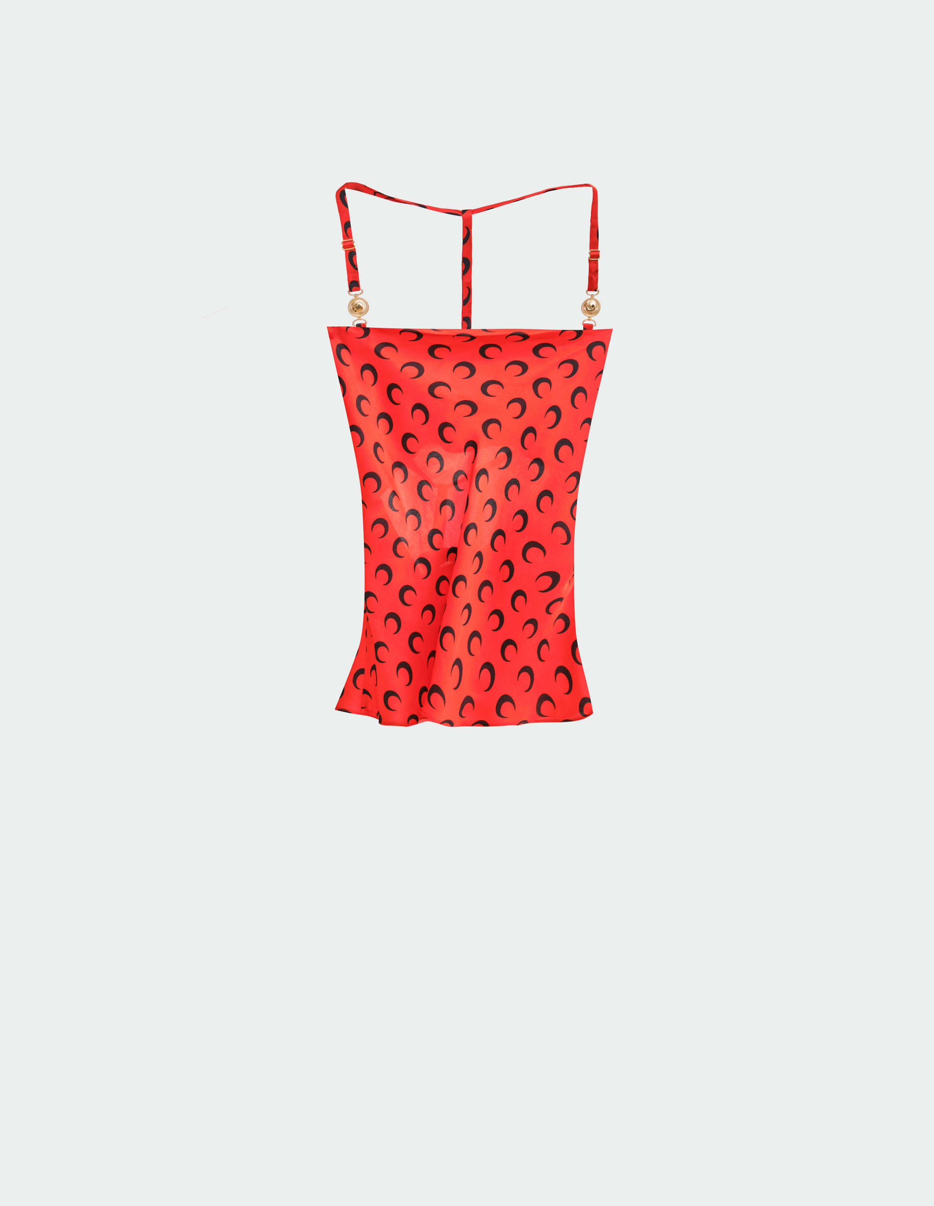 Красный сатиновый топ на бретелях с принтом All Over Moon MOON SATIN STRAP TOP