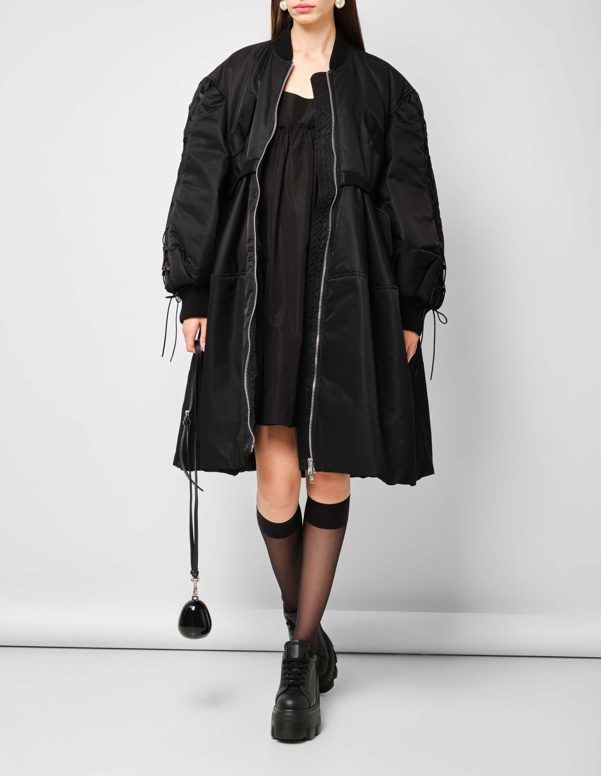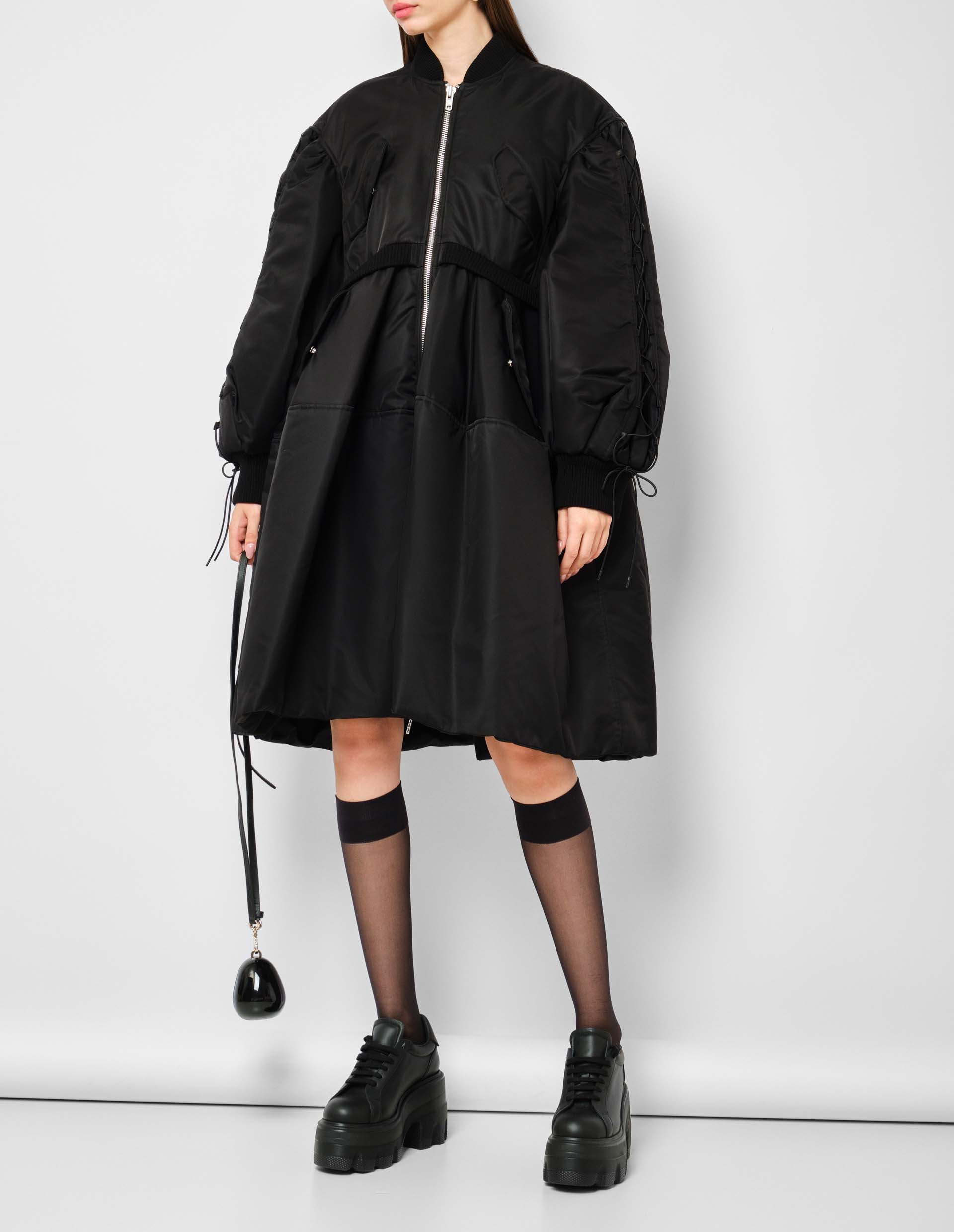 Черный удлиненный бомбер с декоративной шнуровкой подиумной коллекции